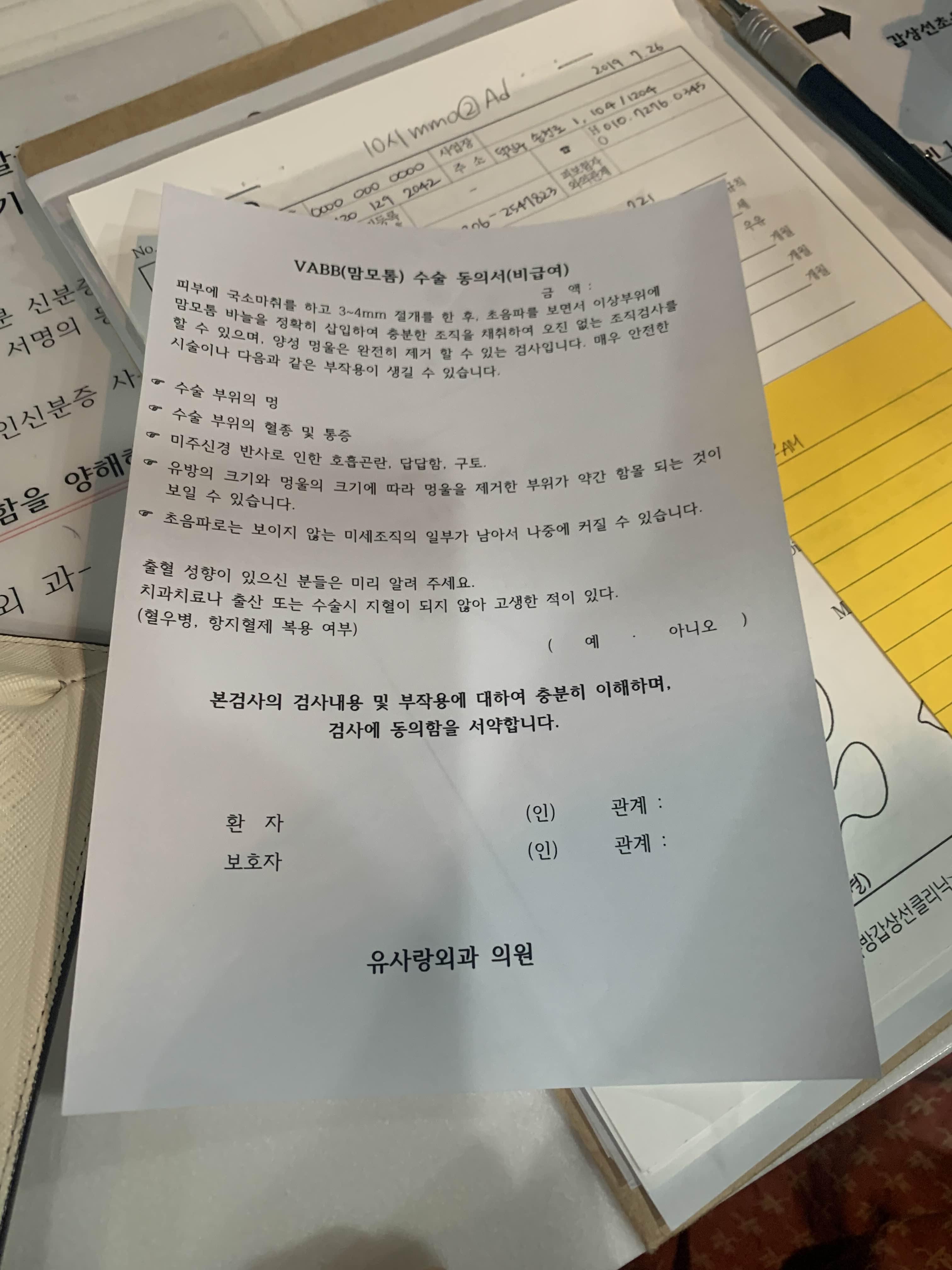 그래서 예전에 방문하였던.... 전문병원에서 검진 후 맘모톰 수술이 결정!