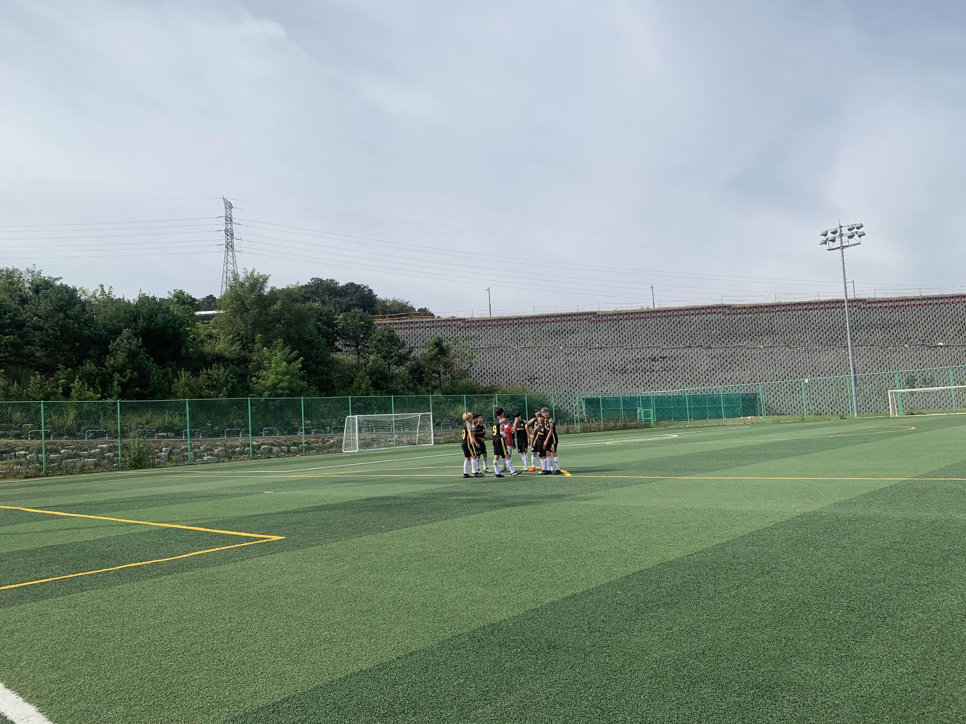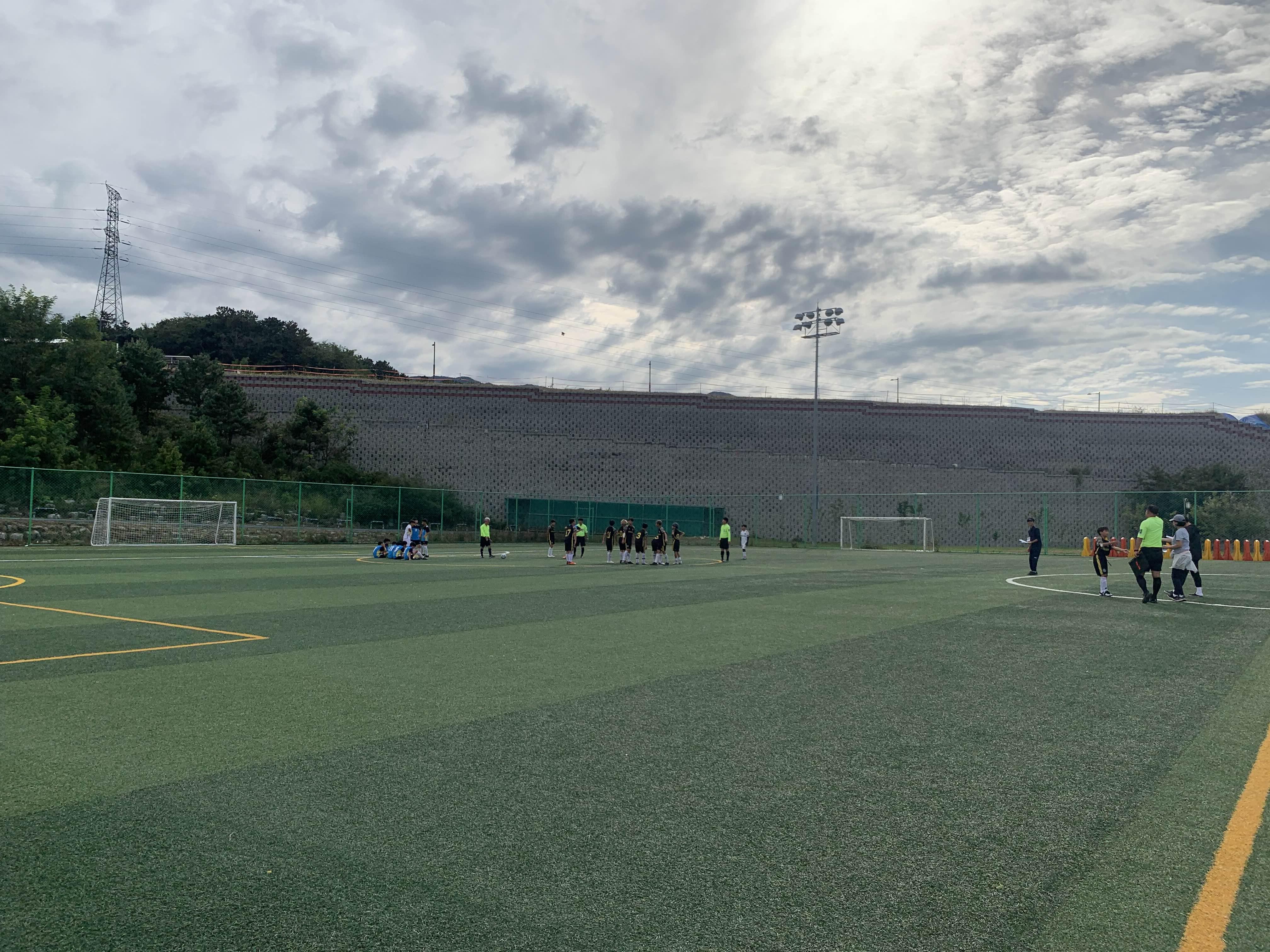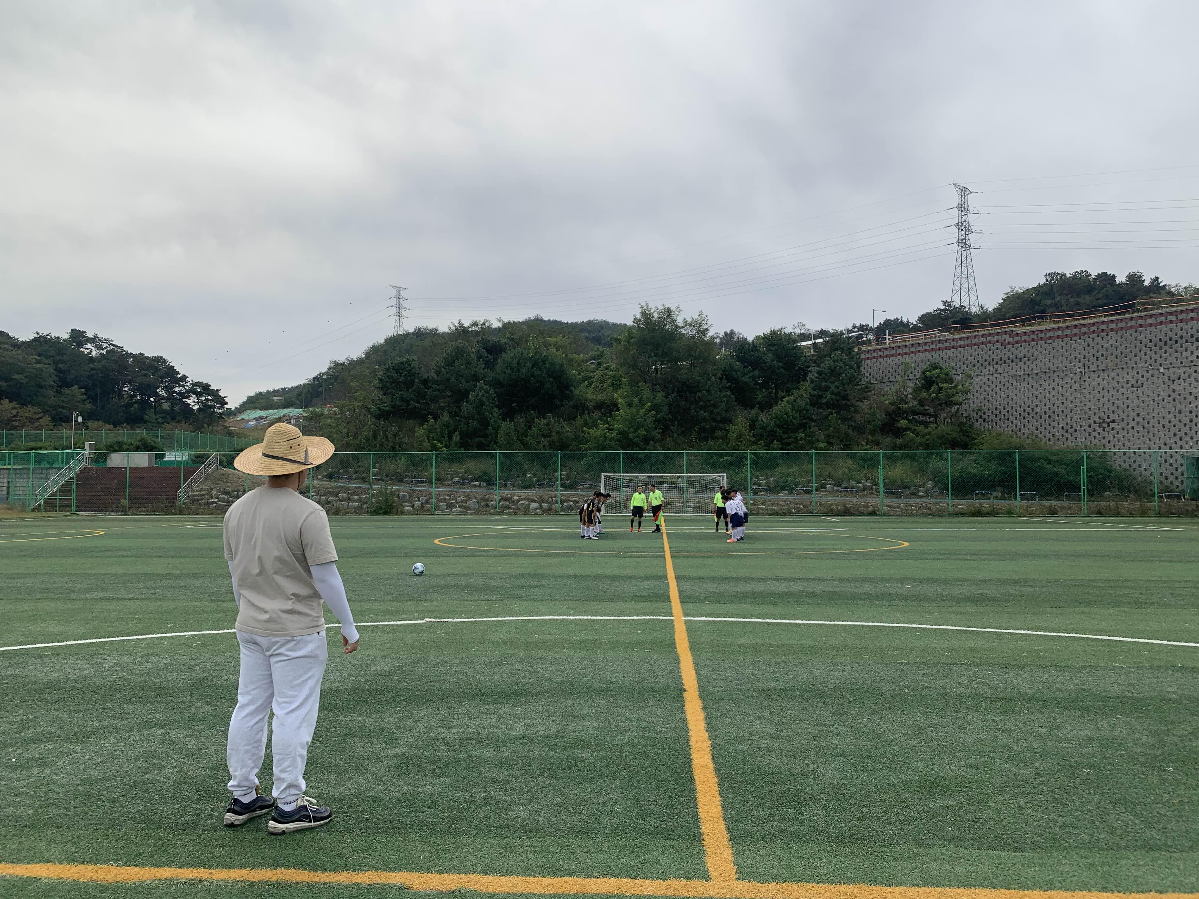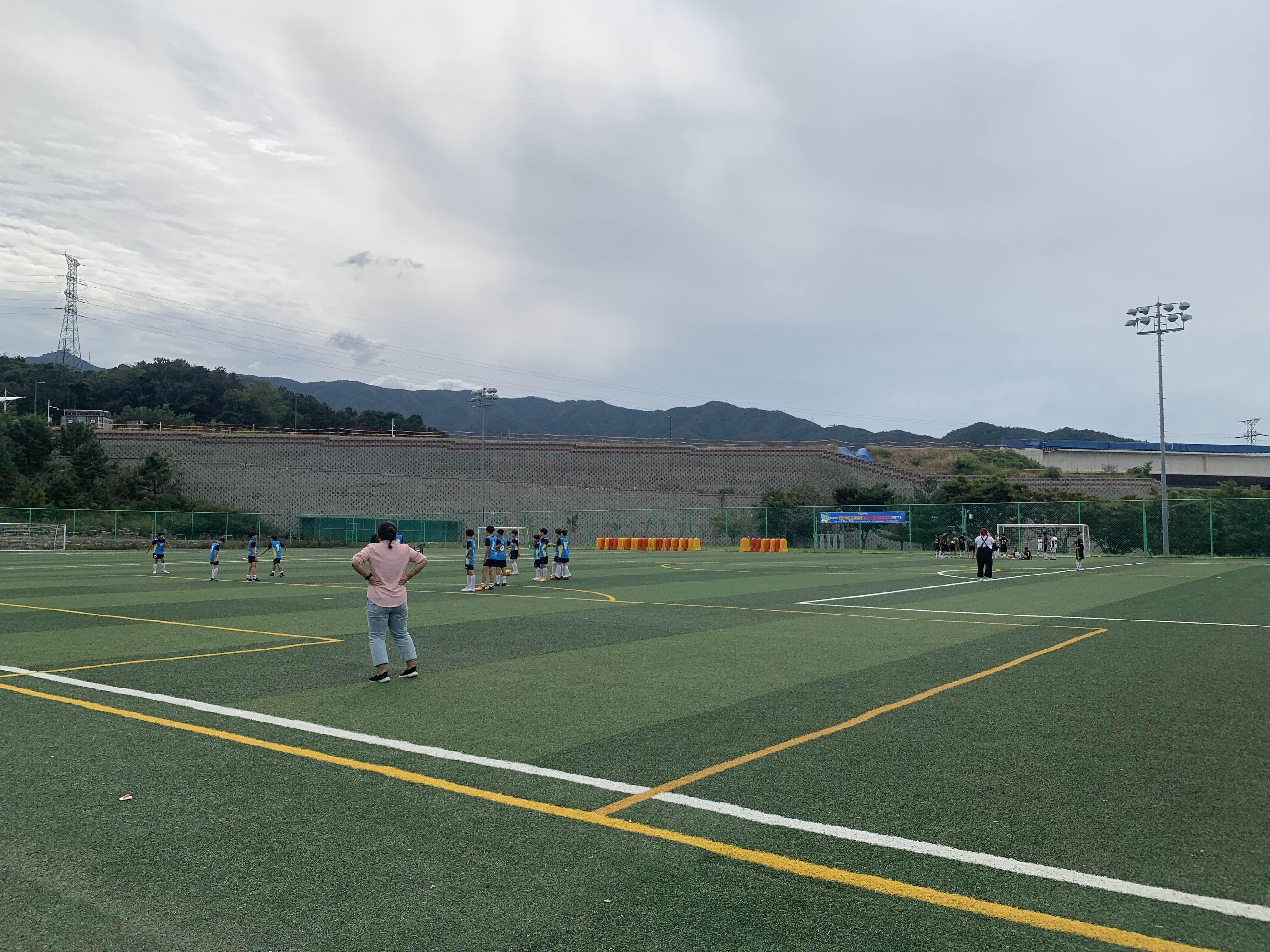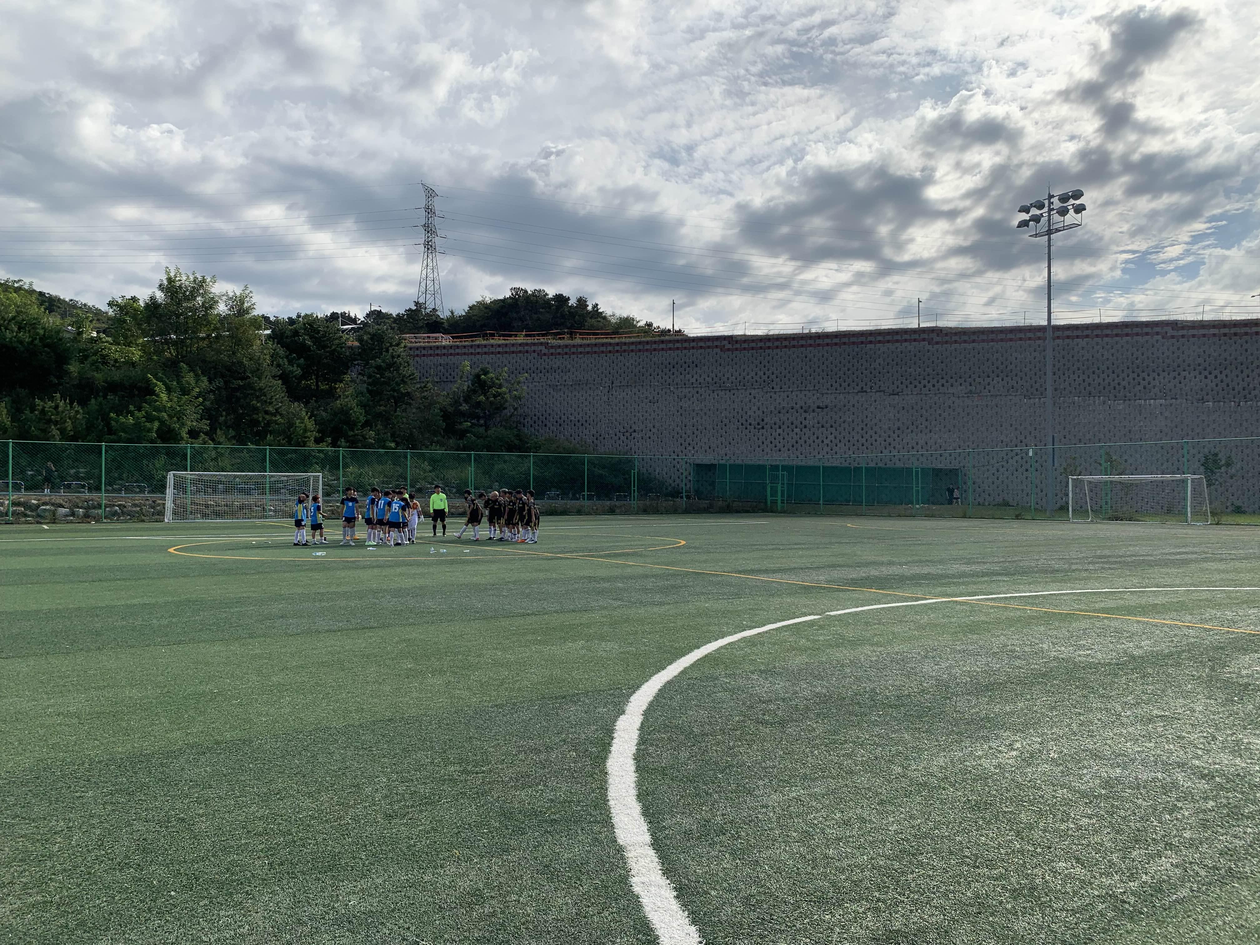 초등학교 경기라... 축구장은 전체가 아닌! 반절 정도의 경기장을 이용하여 경기를 진행합니다.