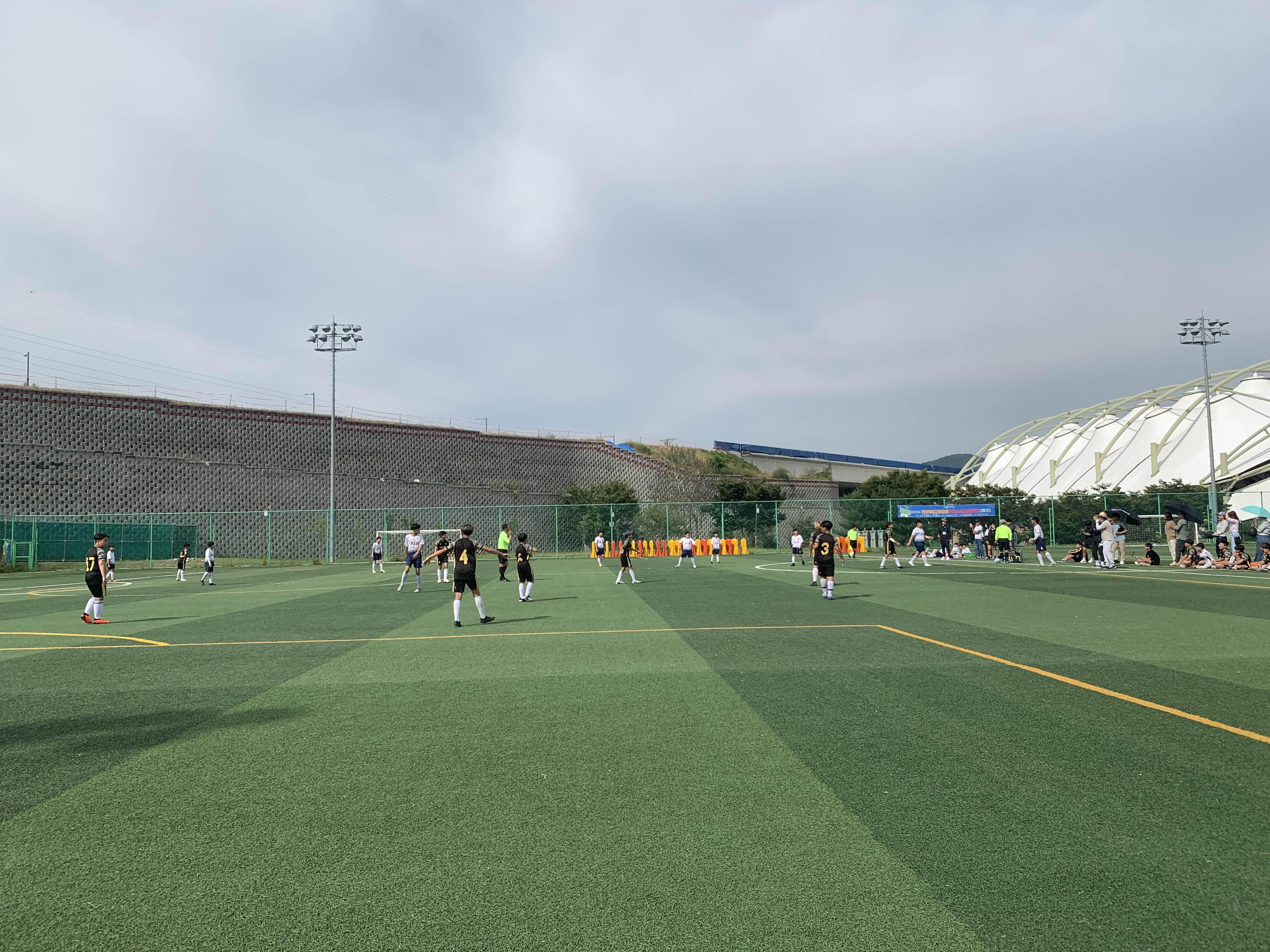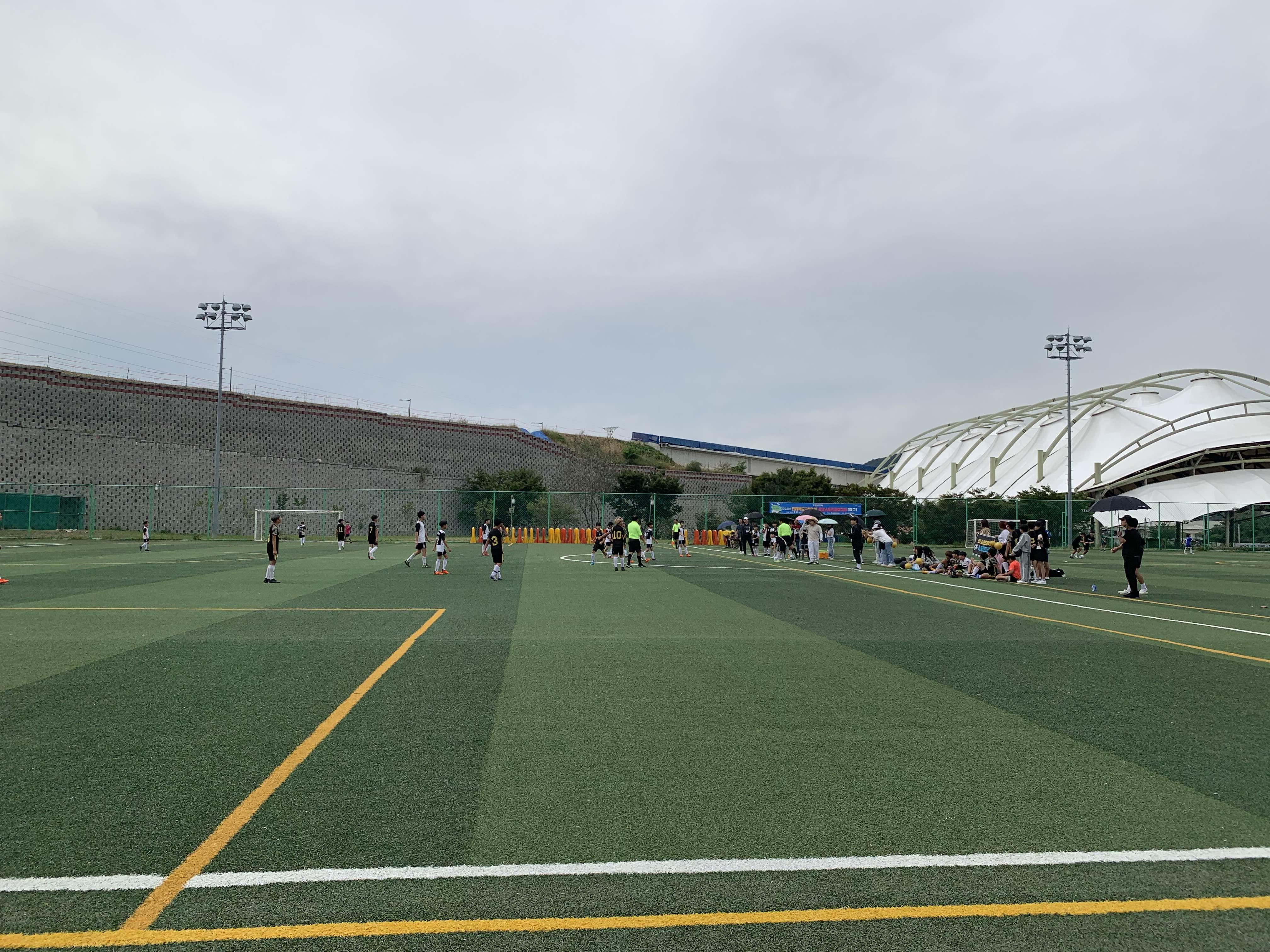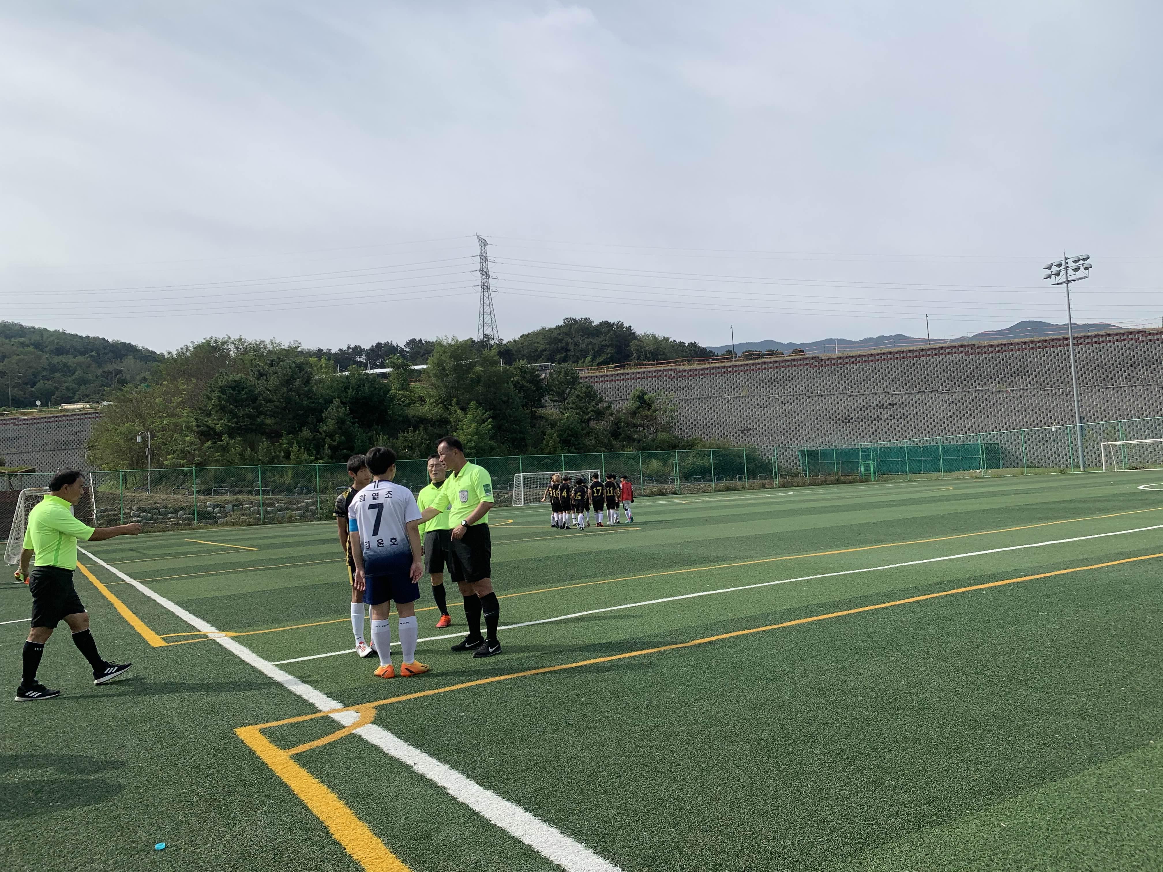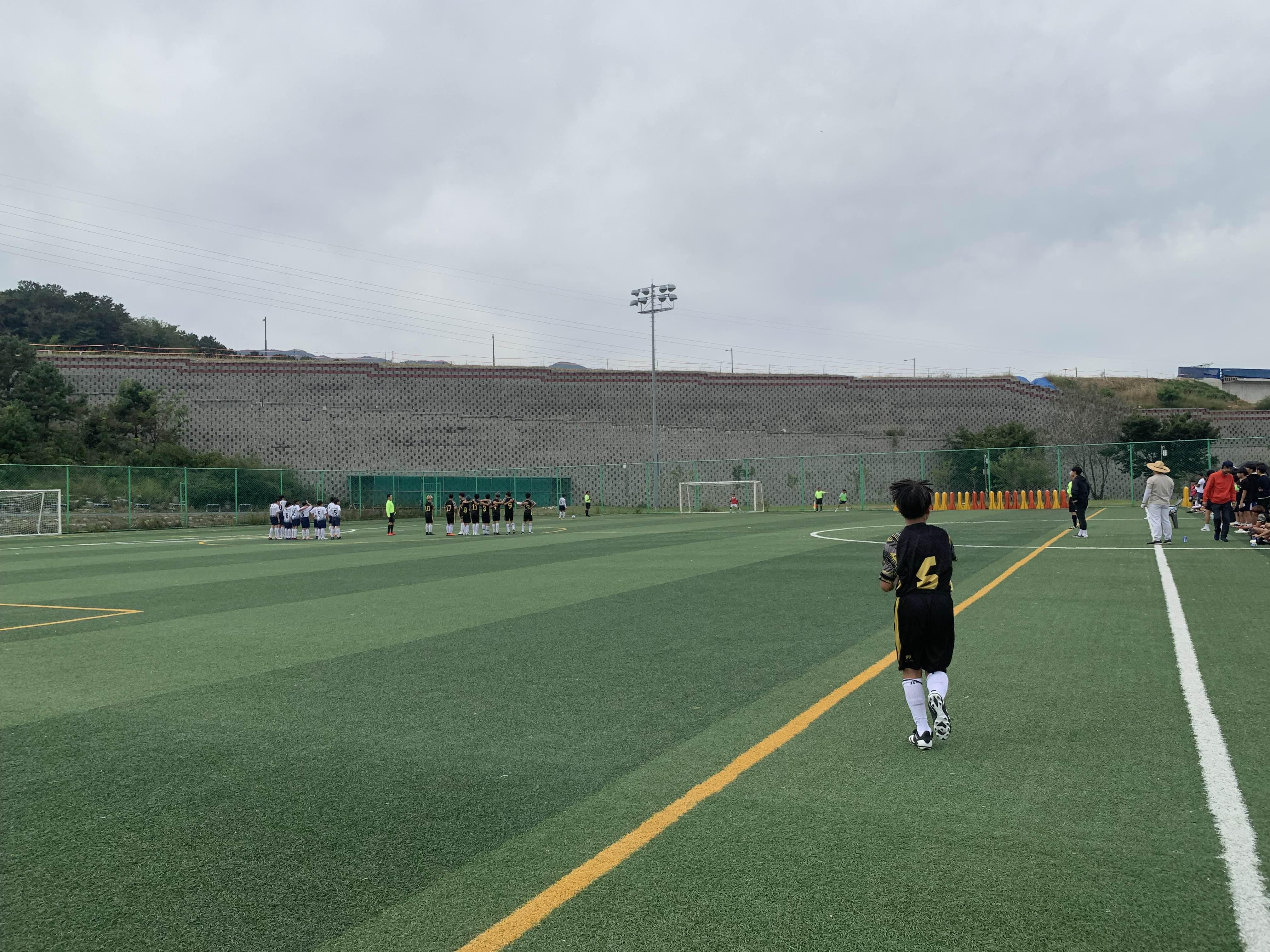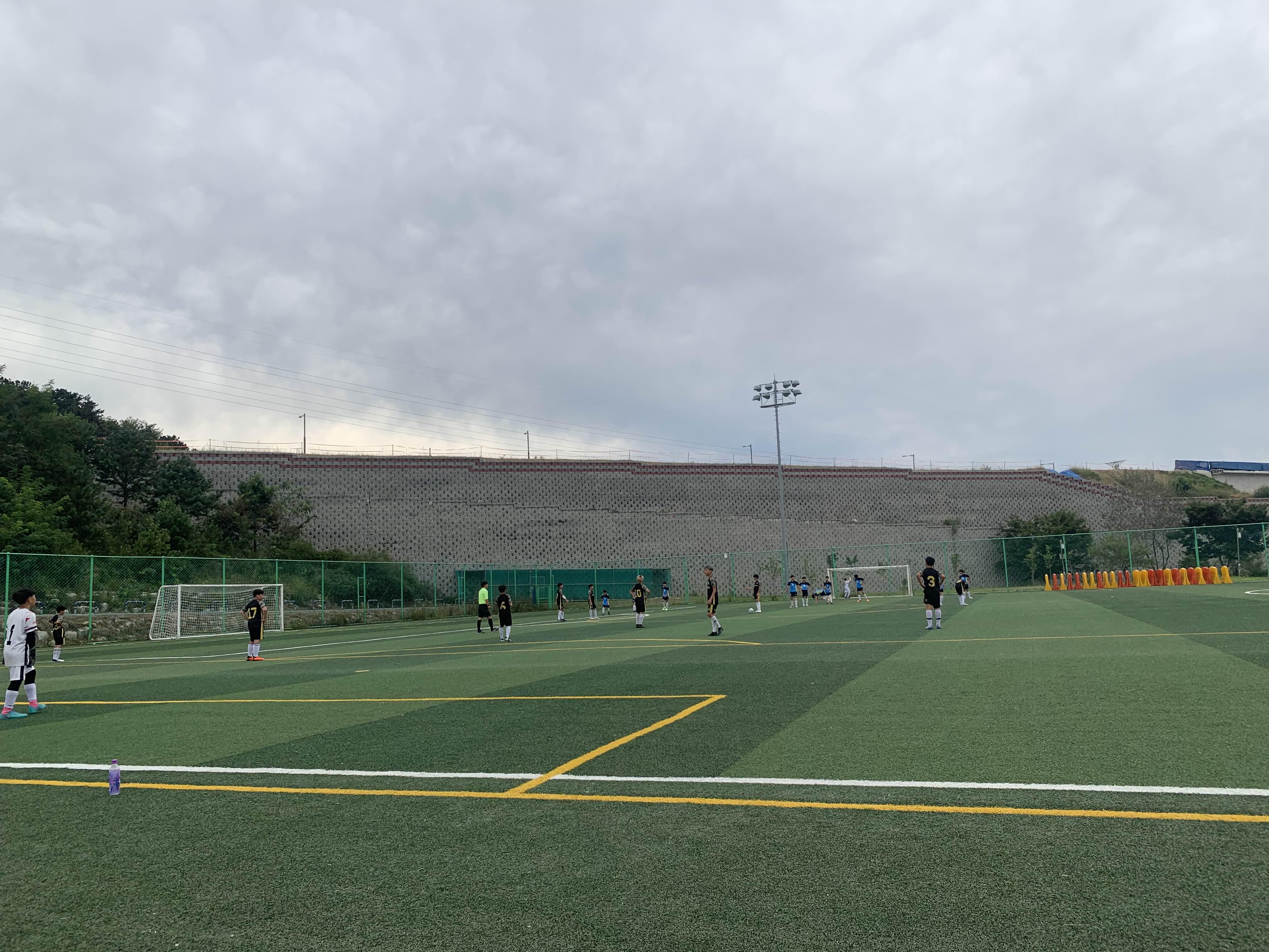 초등학교 경기라... 축구장은 전체가 아닌! 반절 정도의 경기장을 이용하여 경기를 진행합니다.