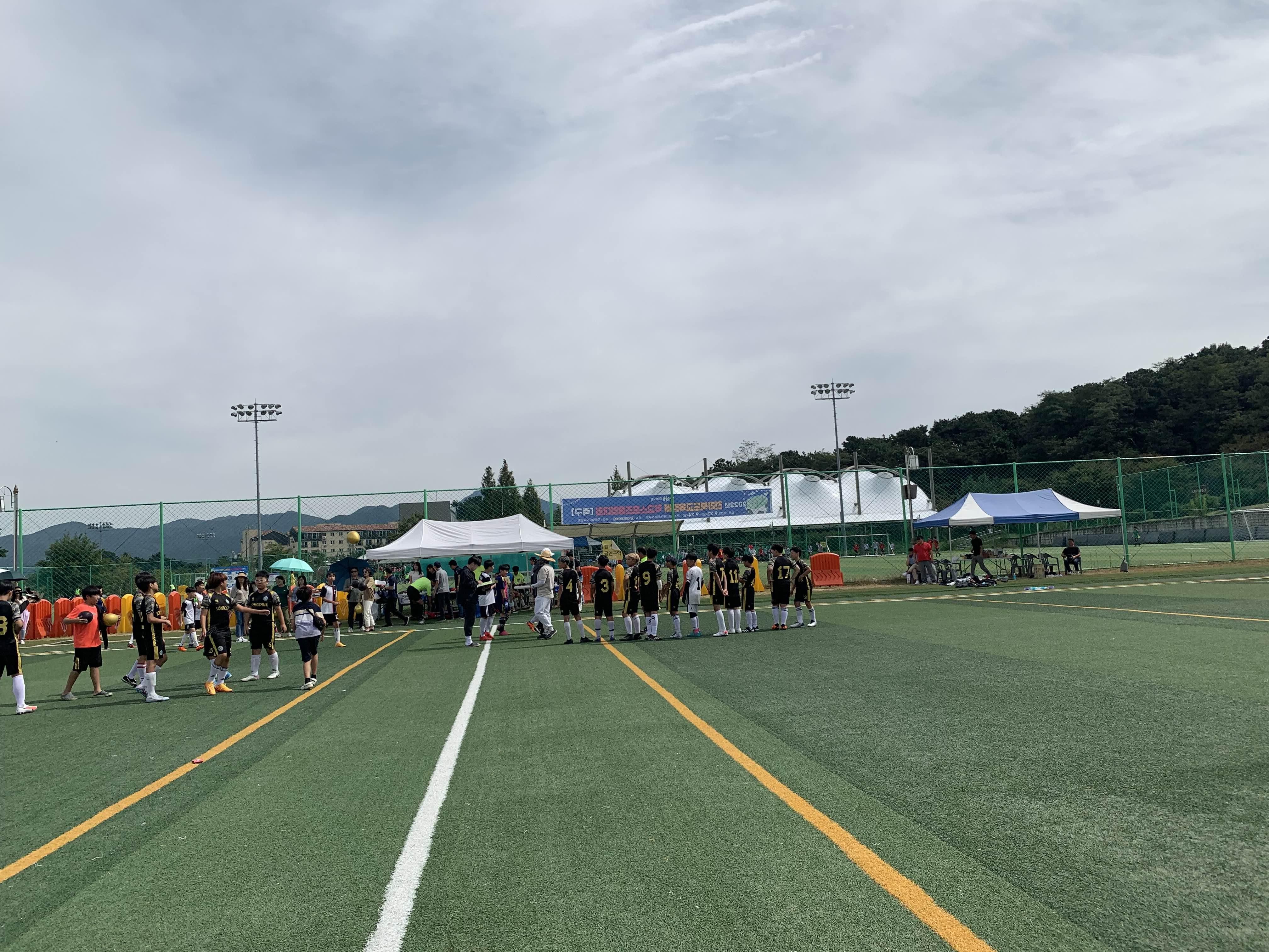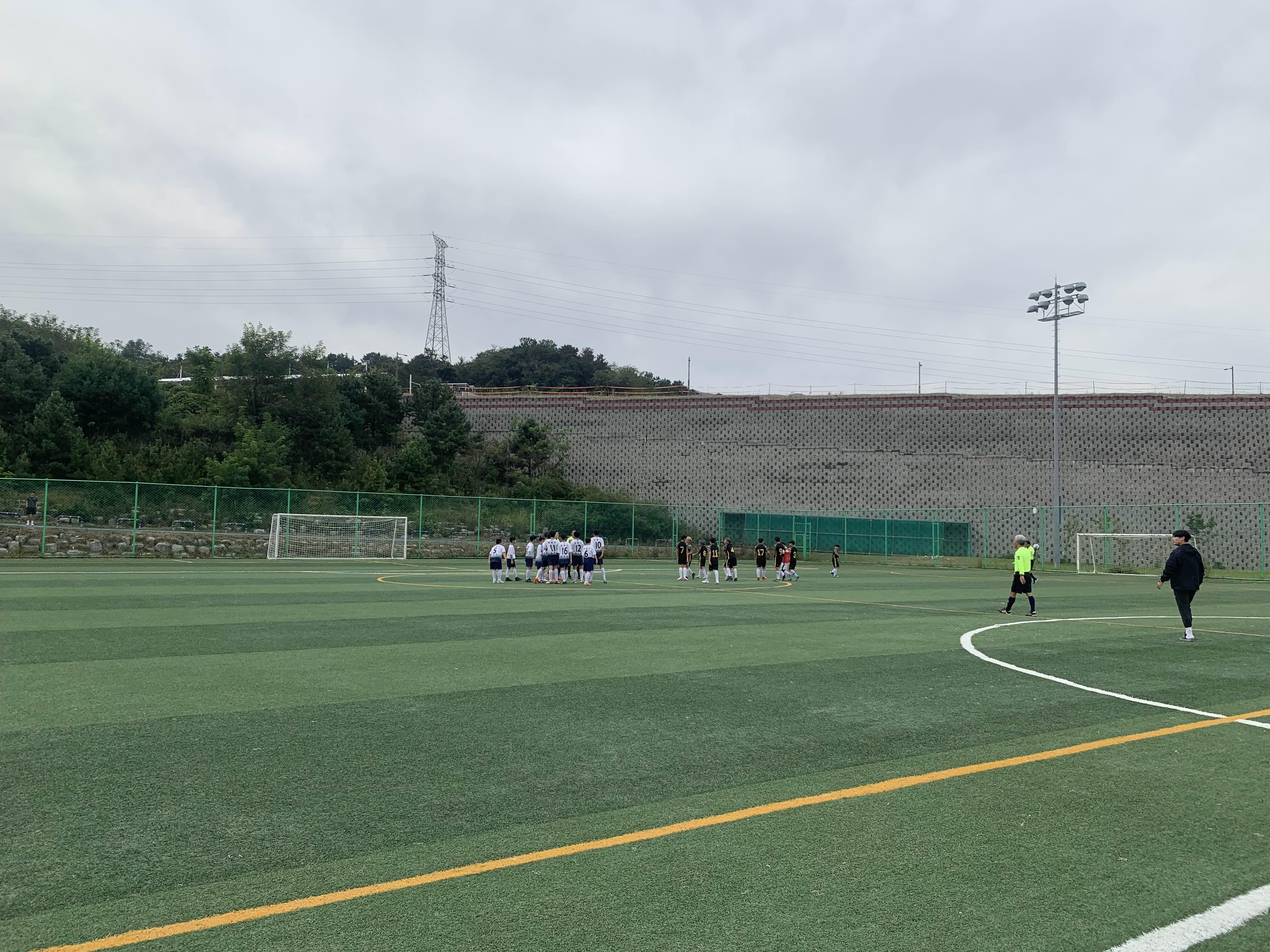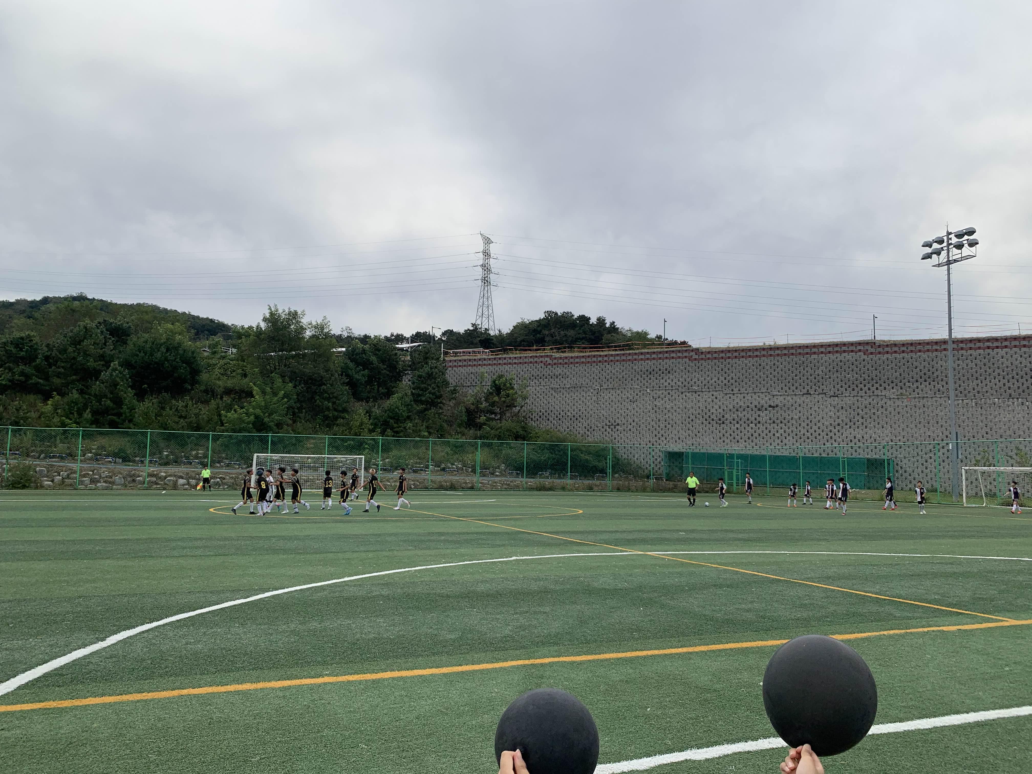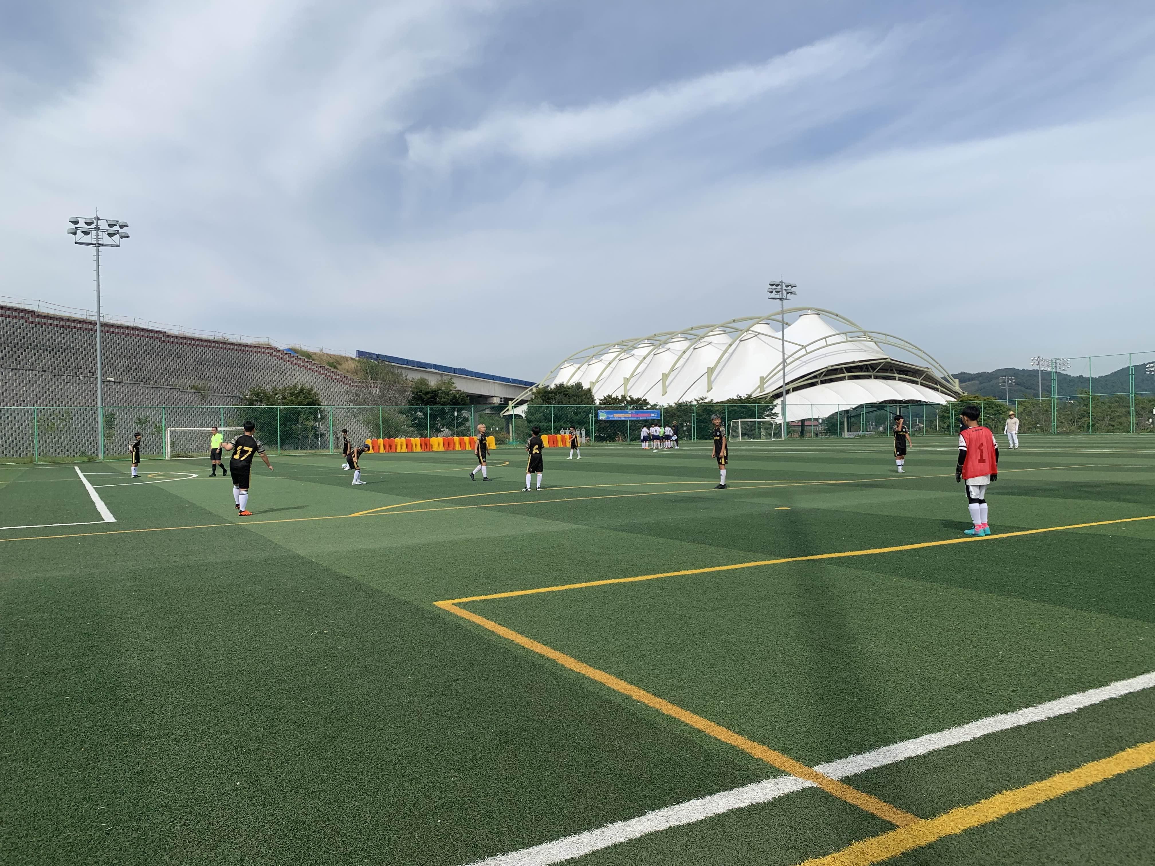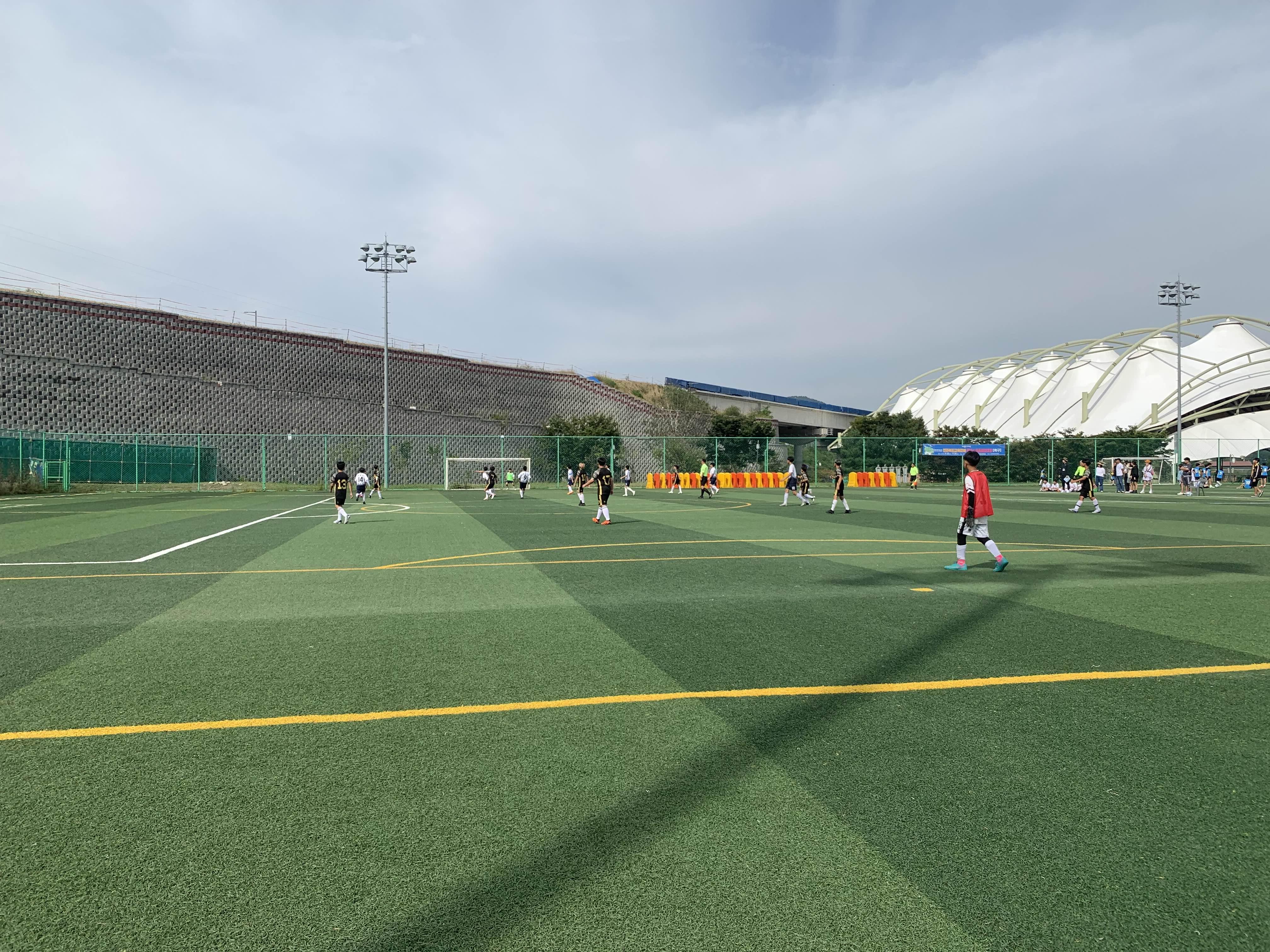 초등학교 경기라... 축구장은 전체가 아닌! 반절 정도의 경기장을 이용하여 경기를 진행합니다.