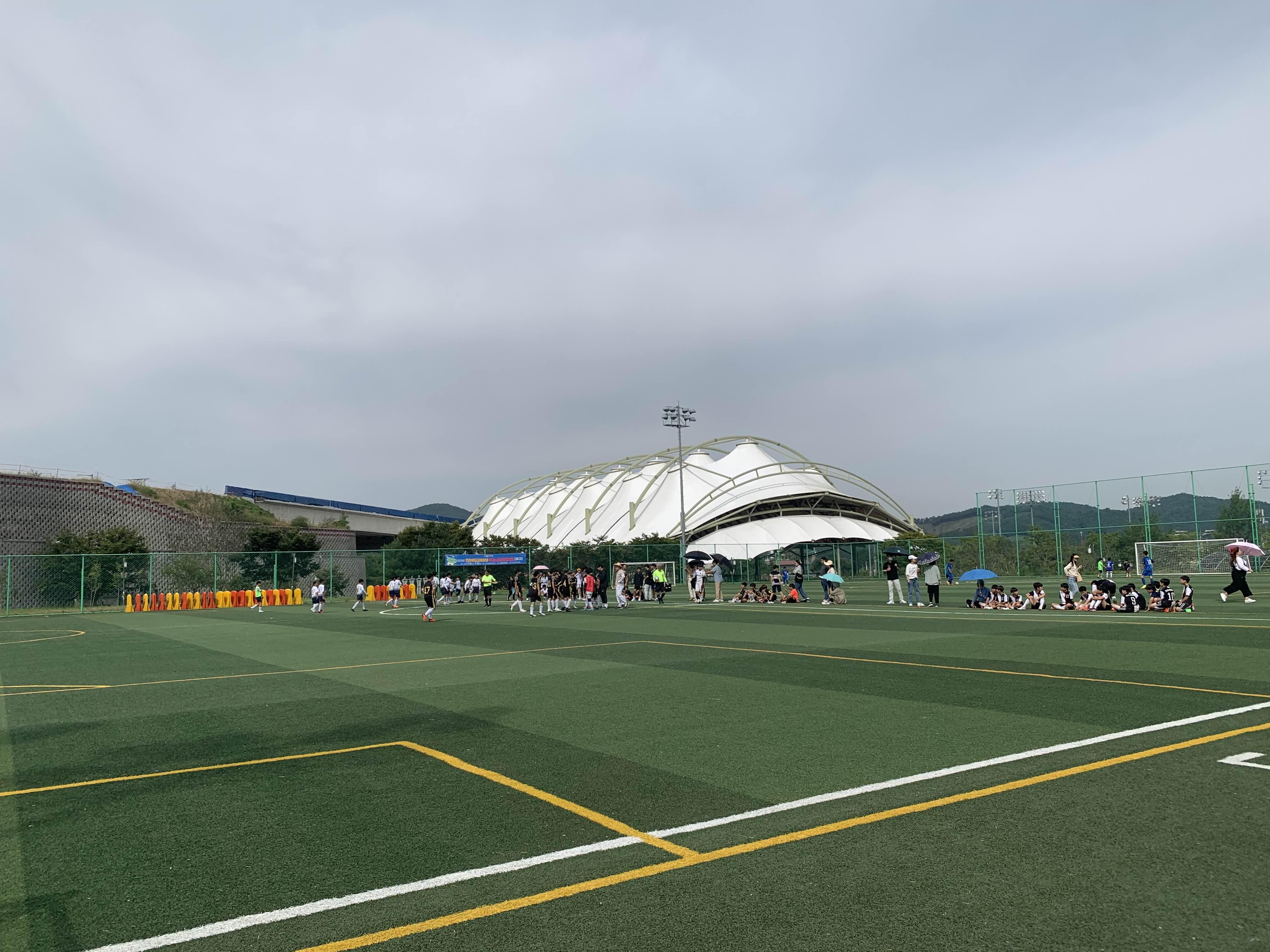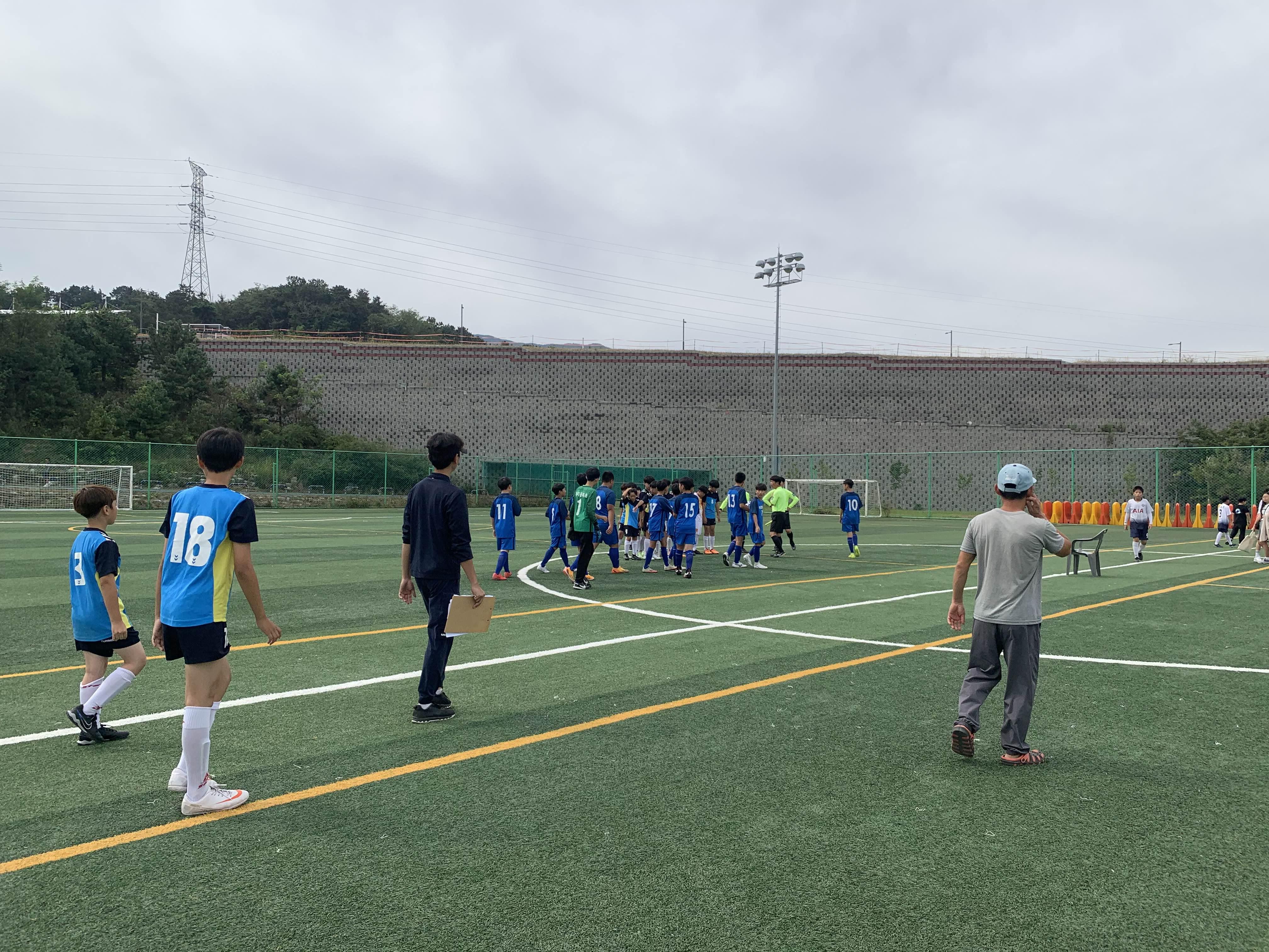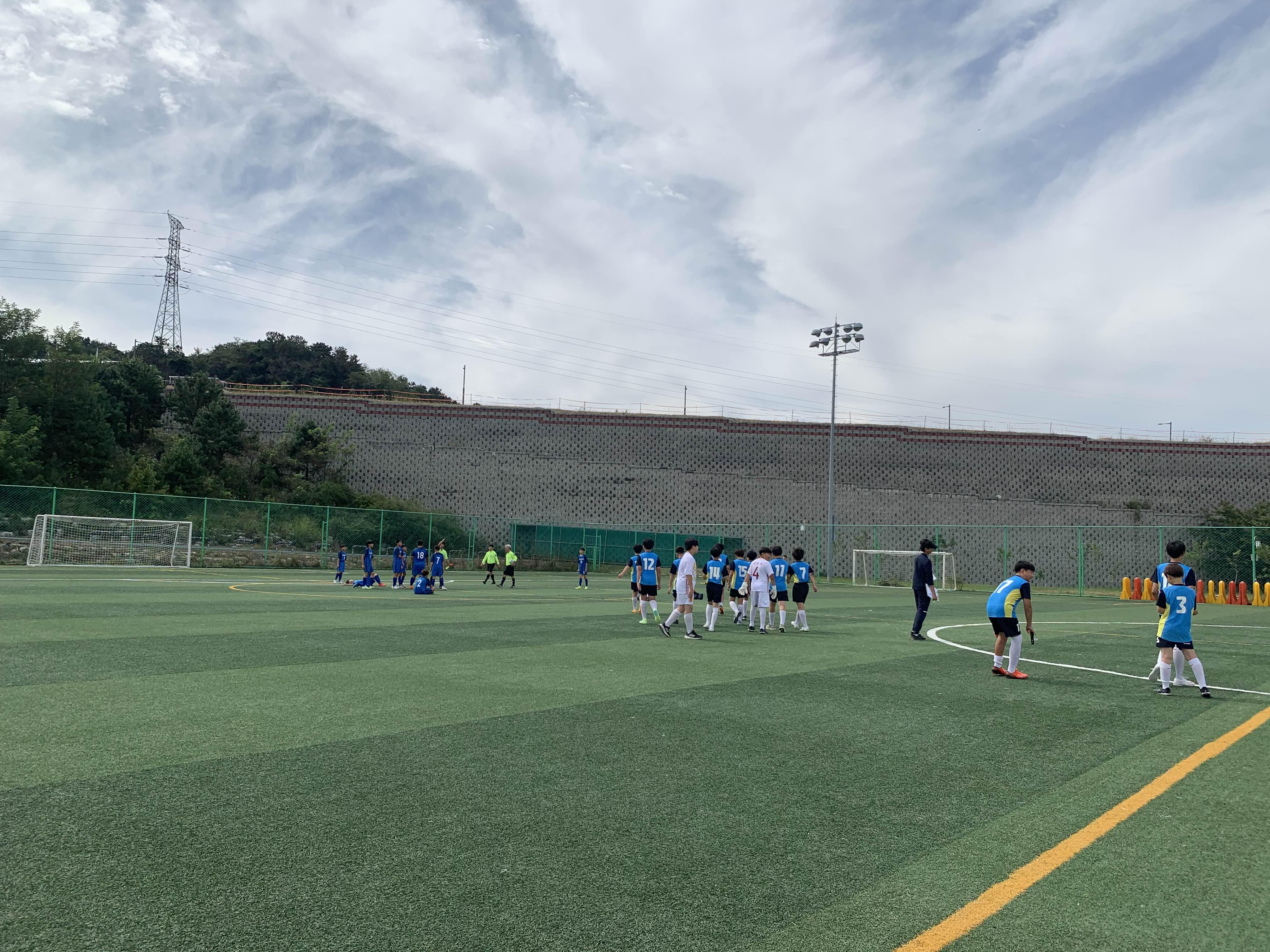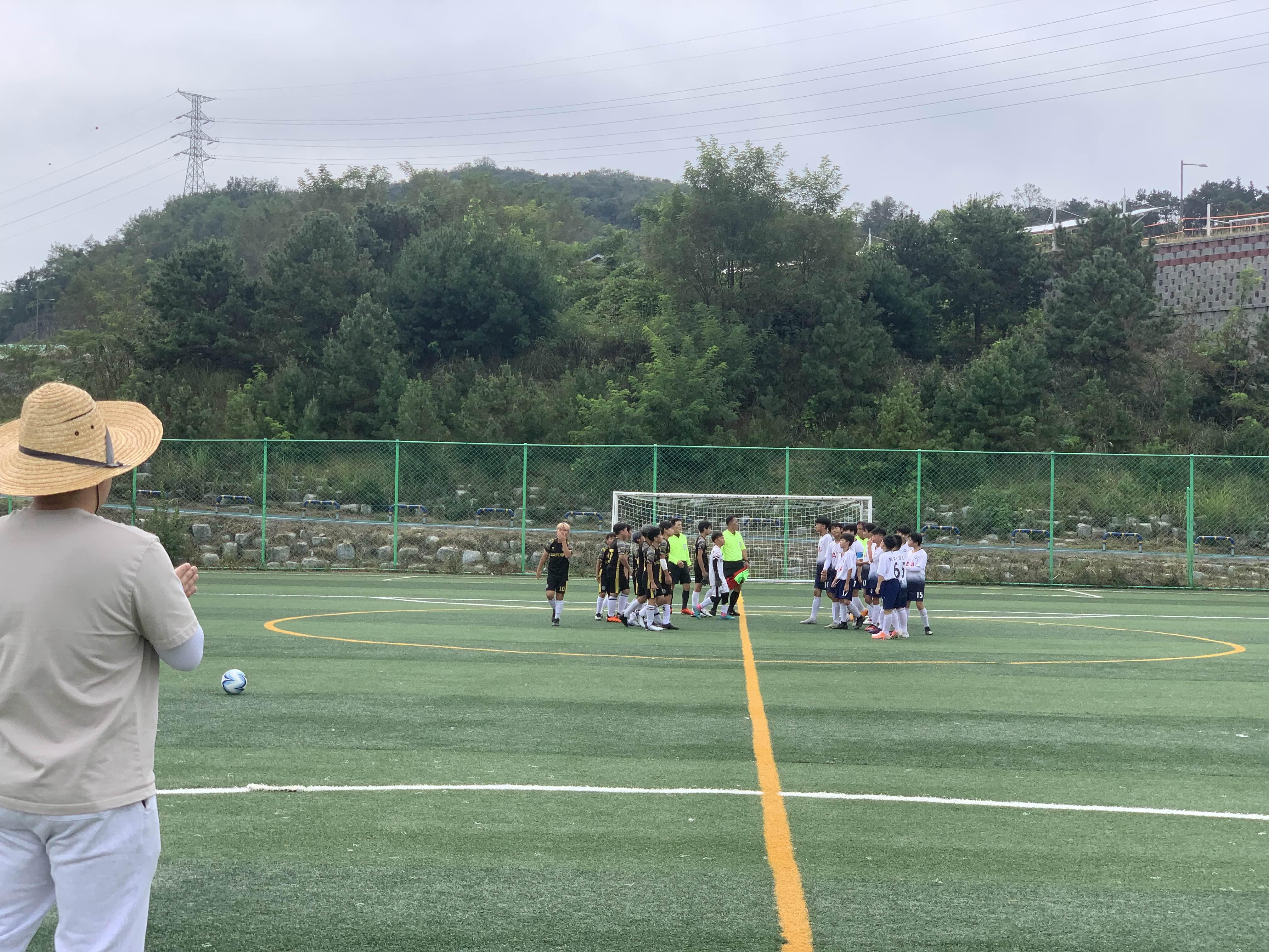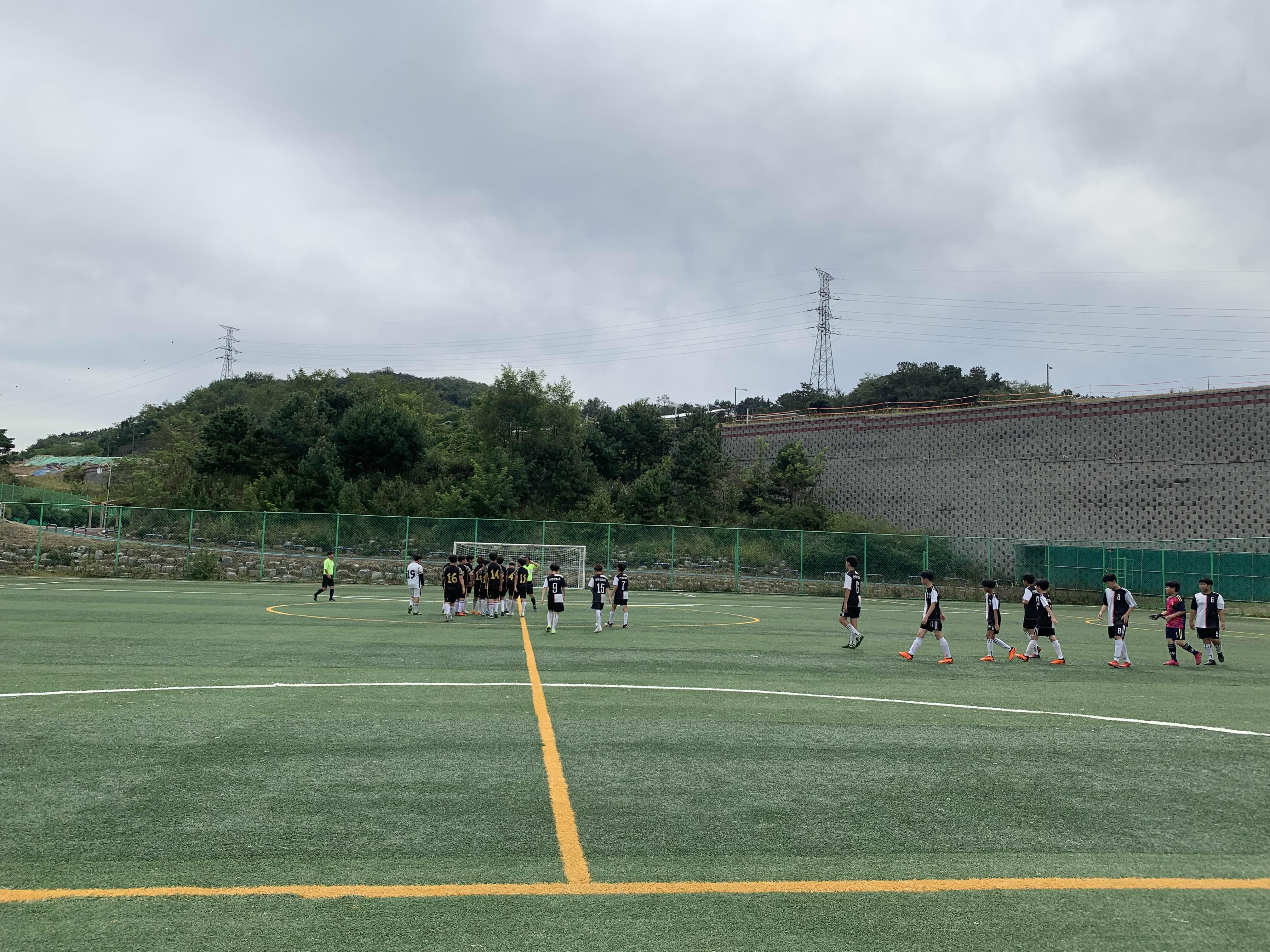 초등학교 경기라... 축구장은 전체가 아닌! 반절 정도의 경기장을 이용하여 경기를 진행합니다.