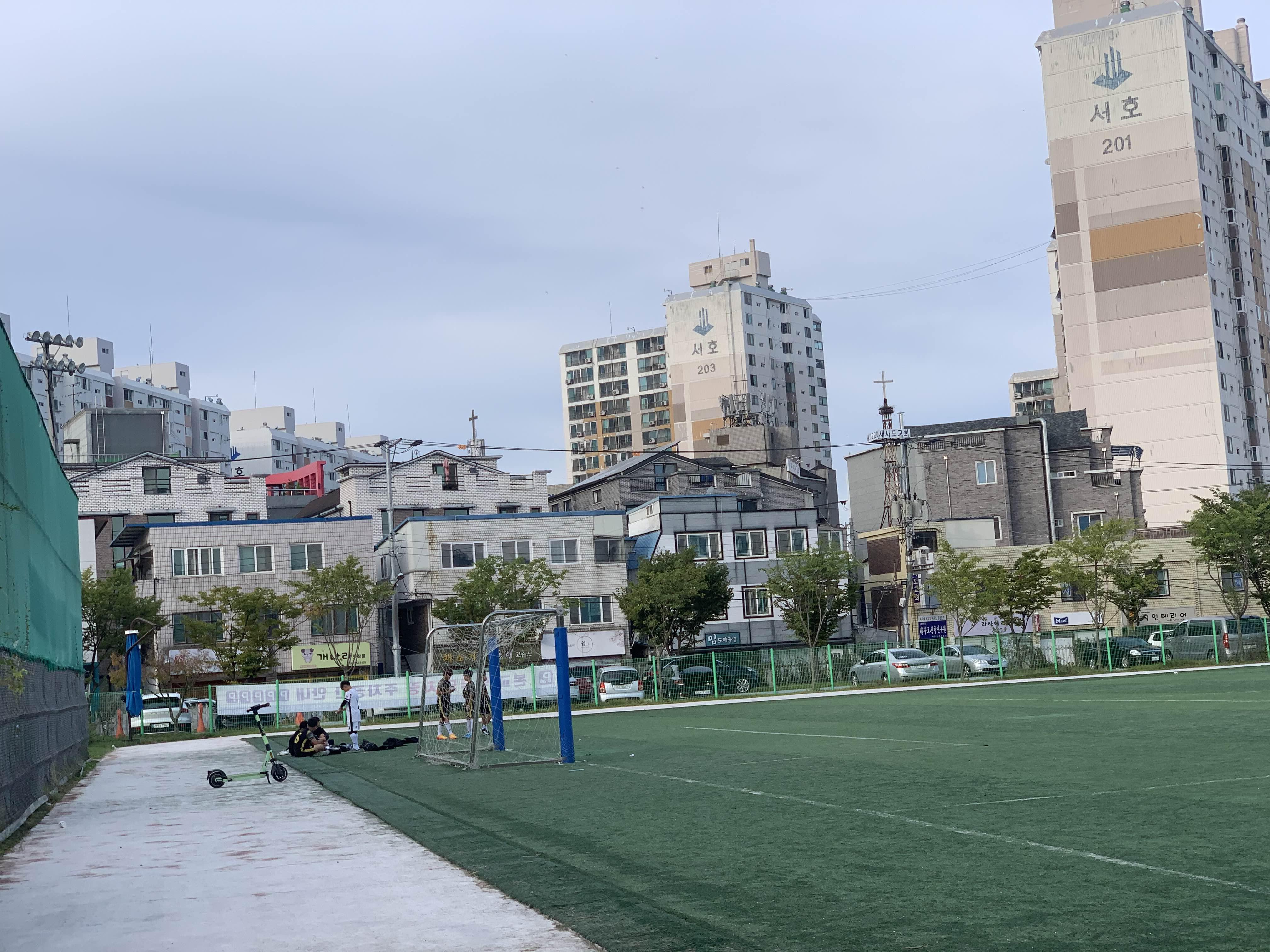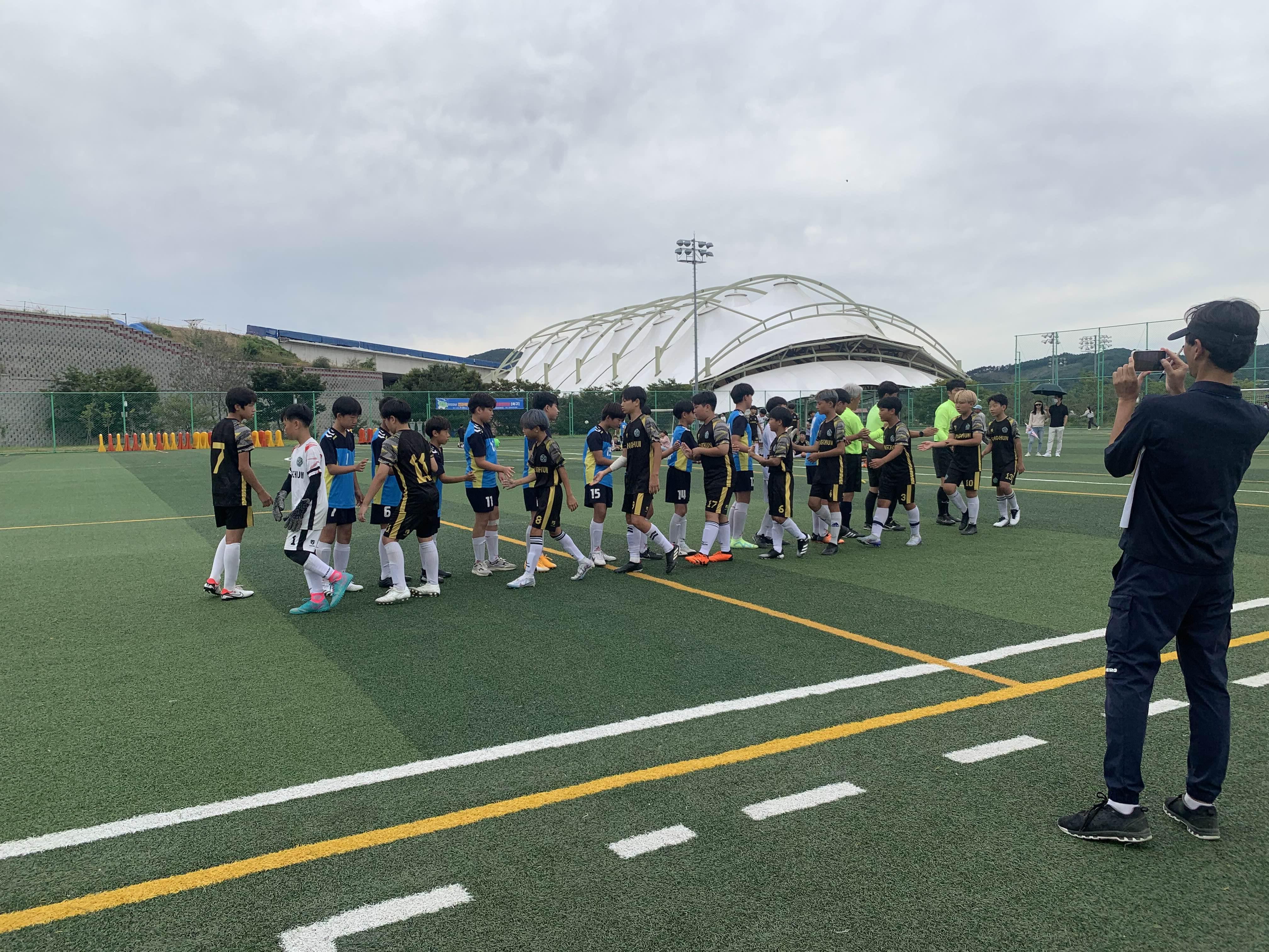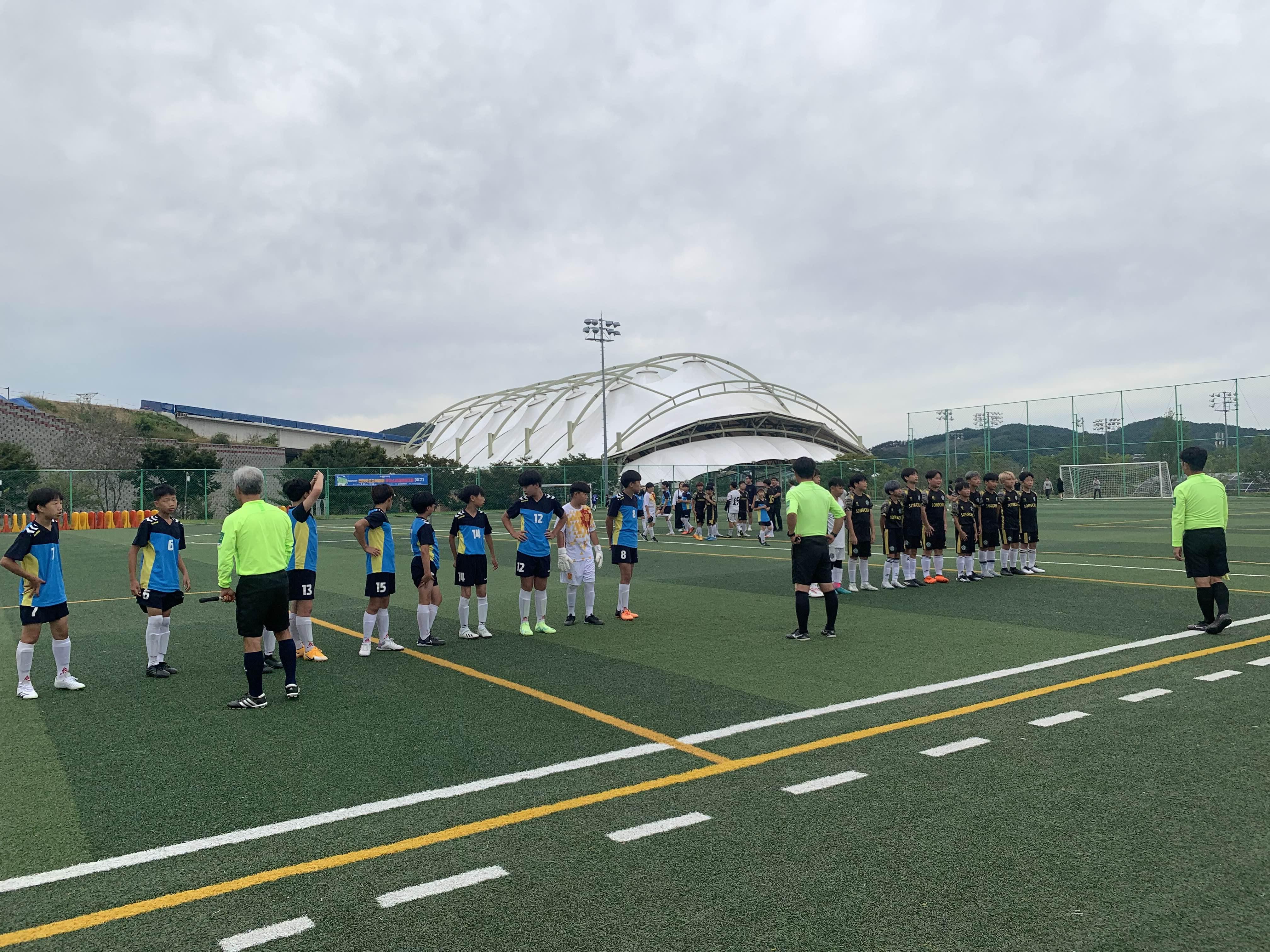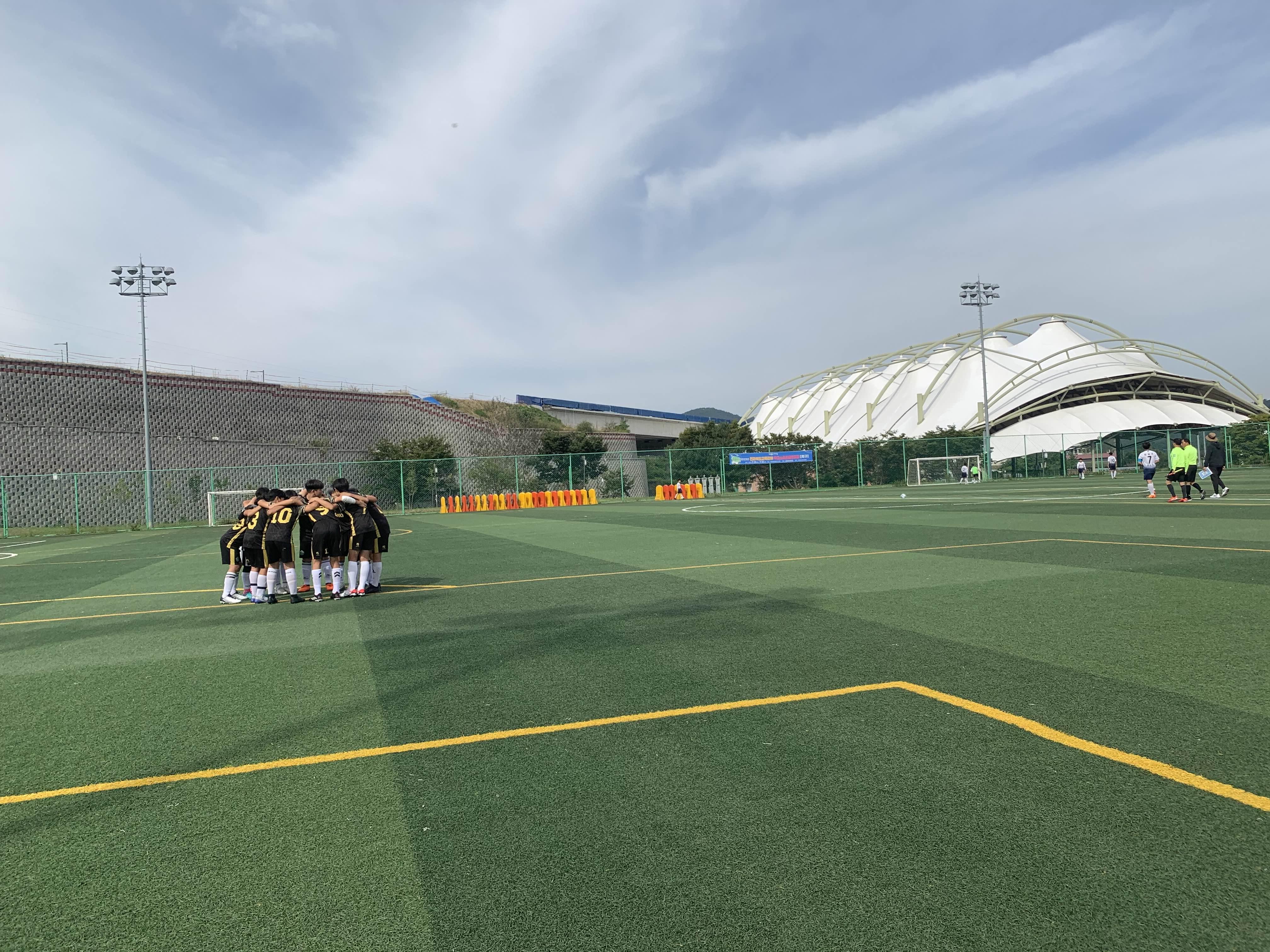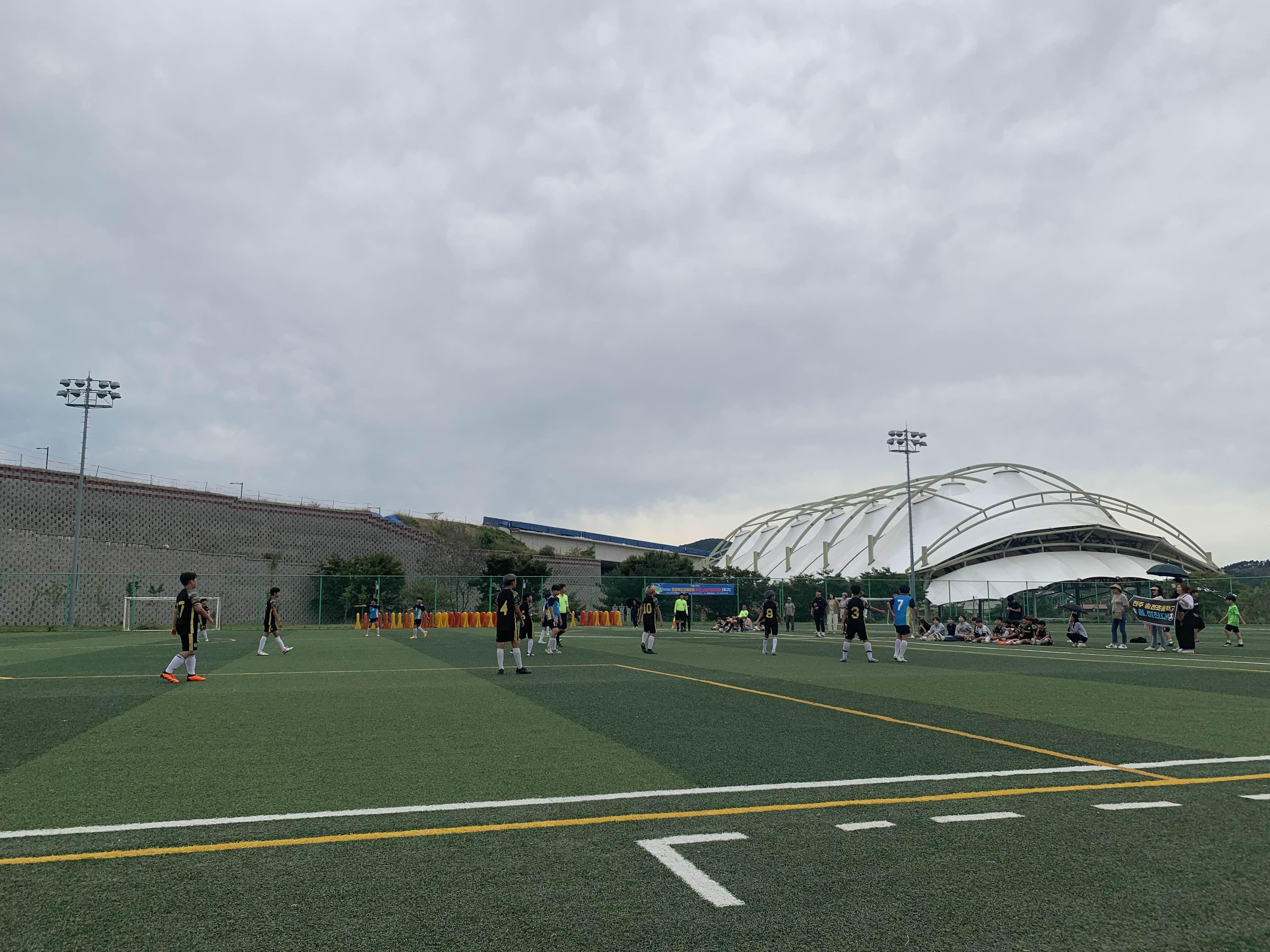 초등학교 경기라... 축구장은 전체가 아닌! 반절 정도의 경기장을 이용하여 경기를 진행합니다.
