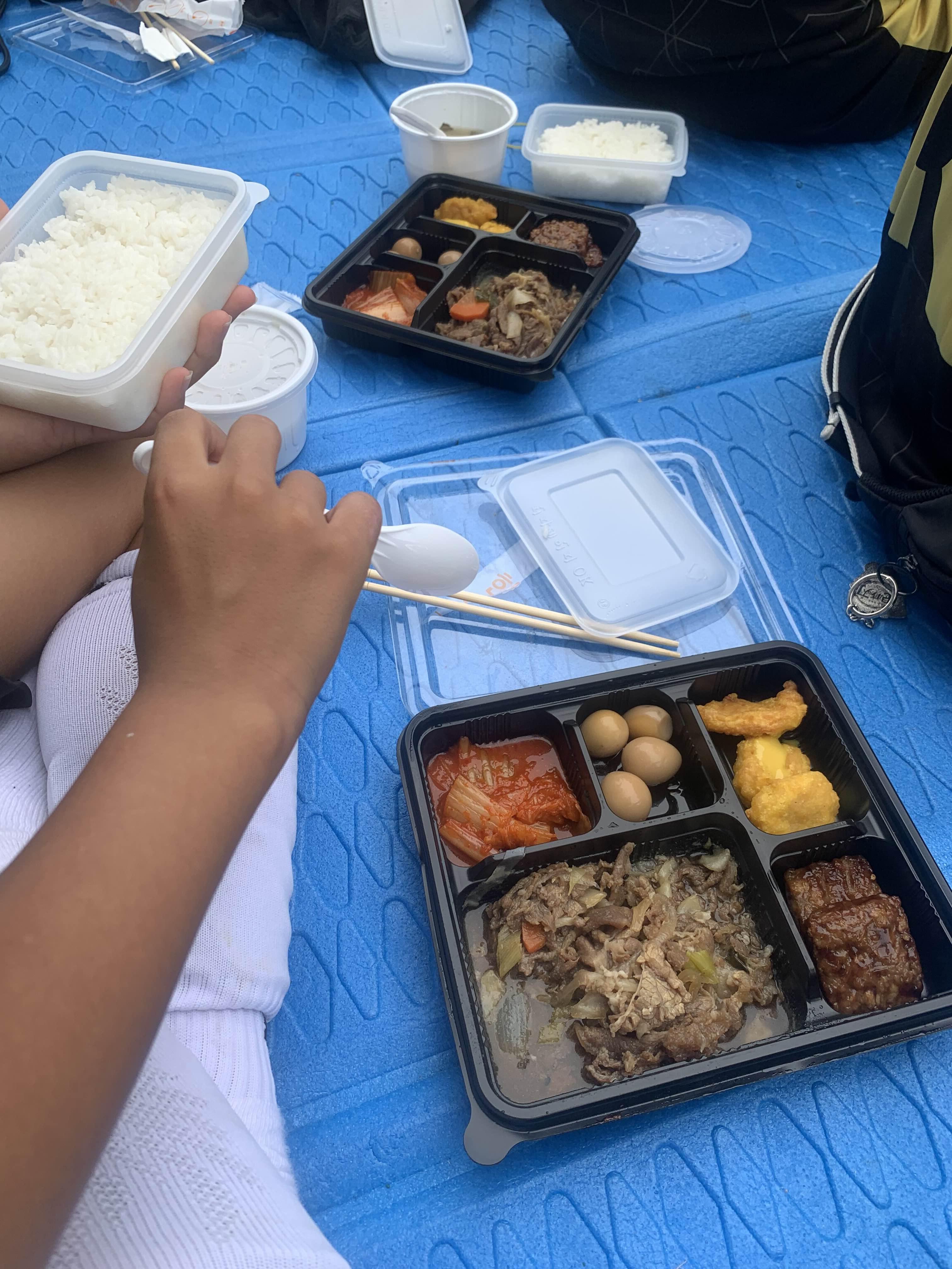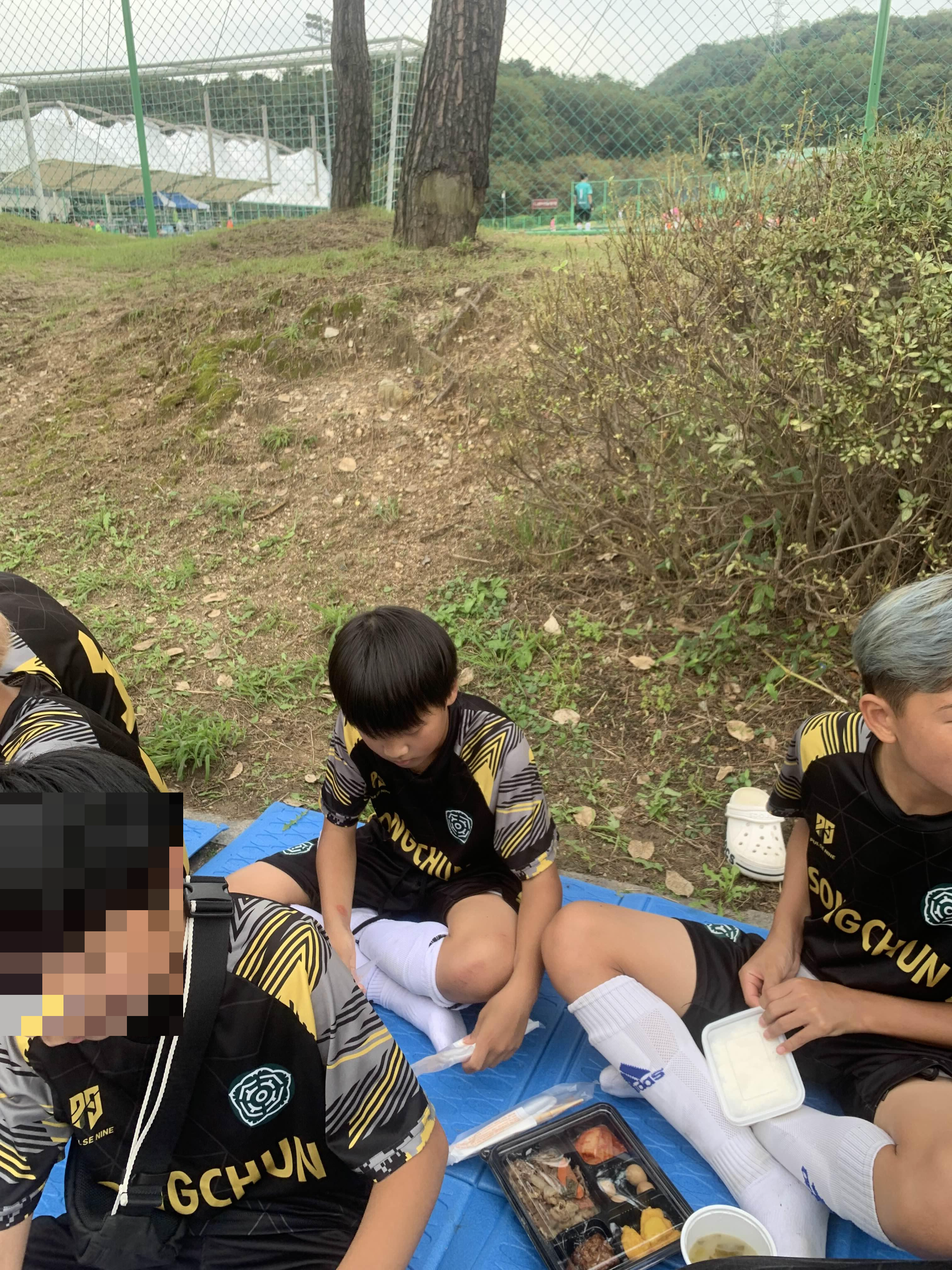 점심이 도시락인데... 상당히 맛나 보인다. 2경기 80분 경기를 마친 아이들은 정말 맛나게 먹는다!