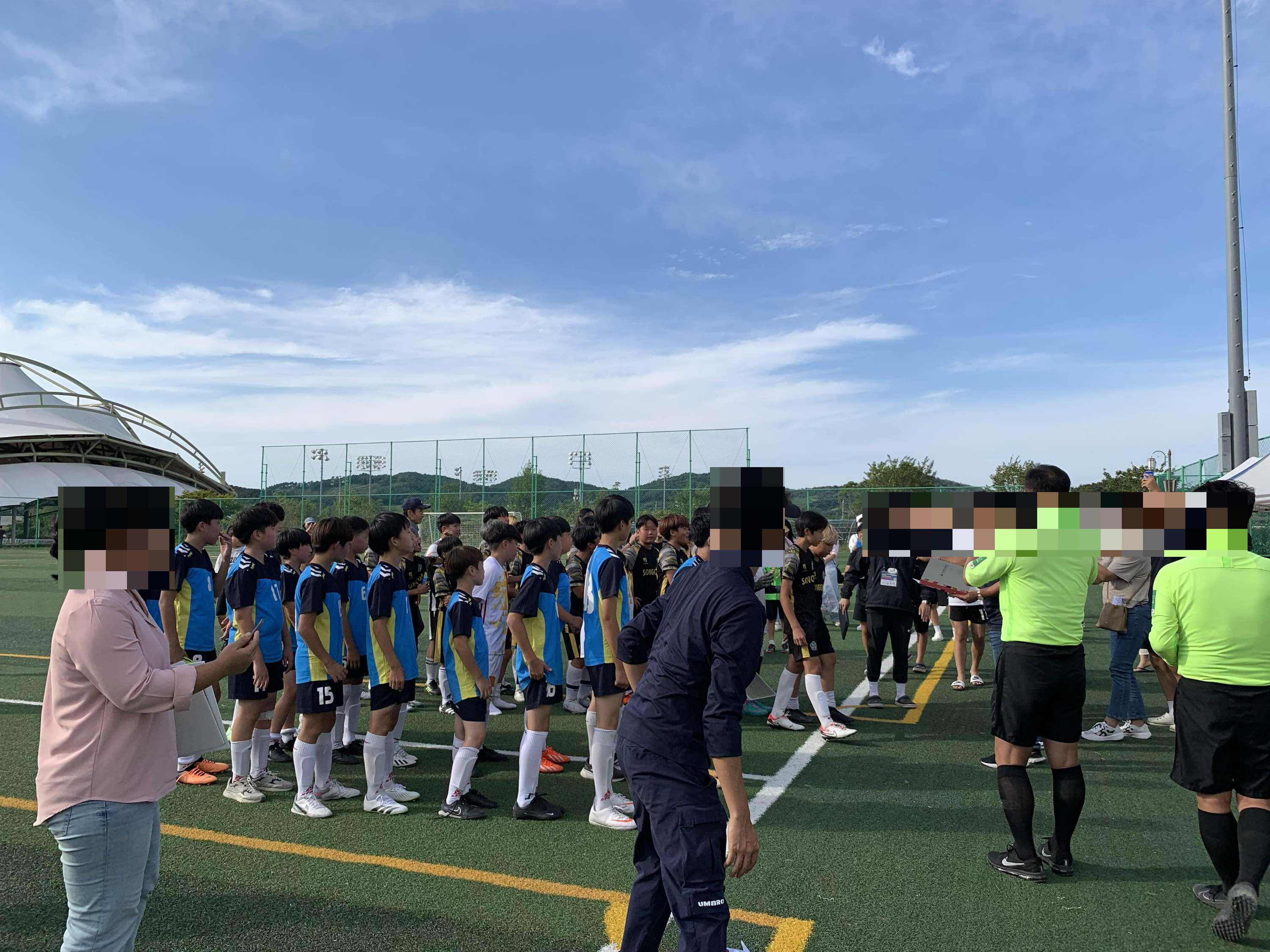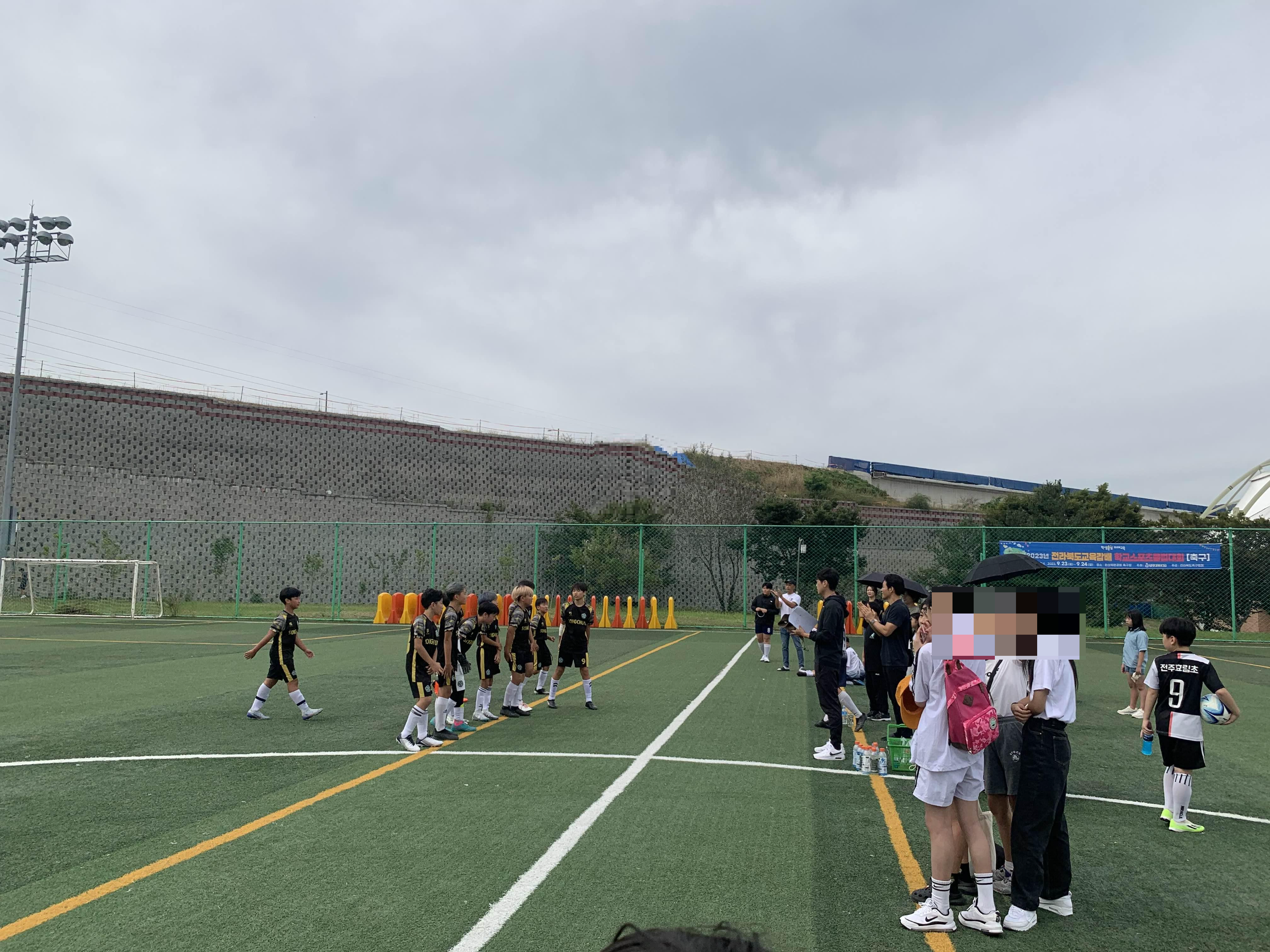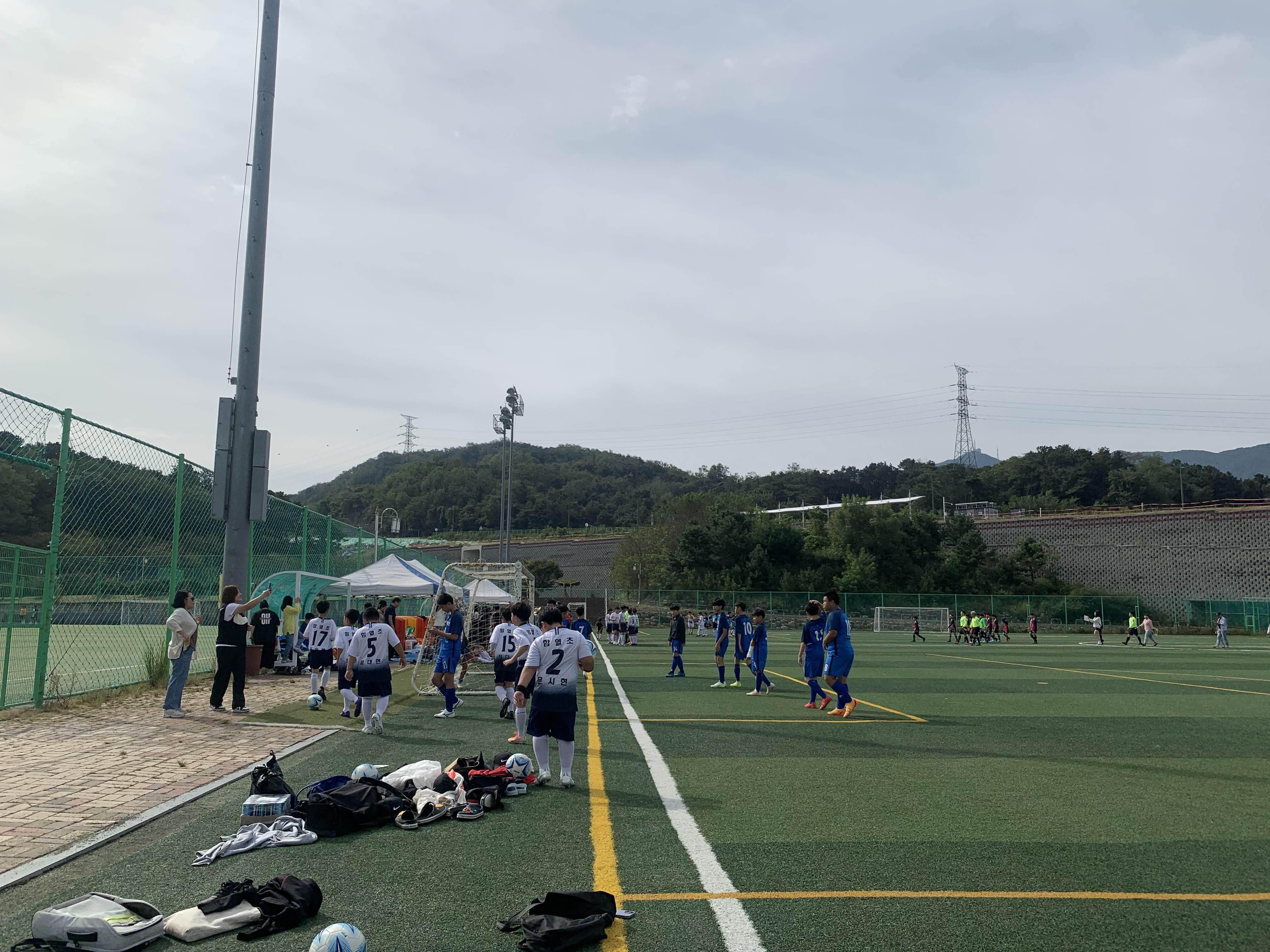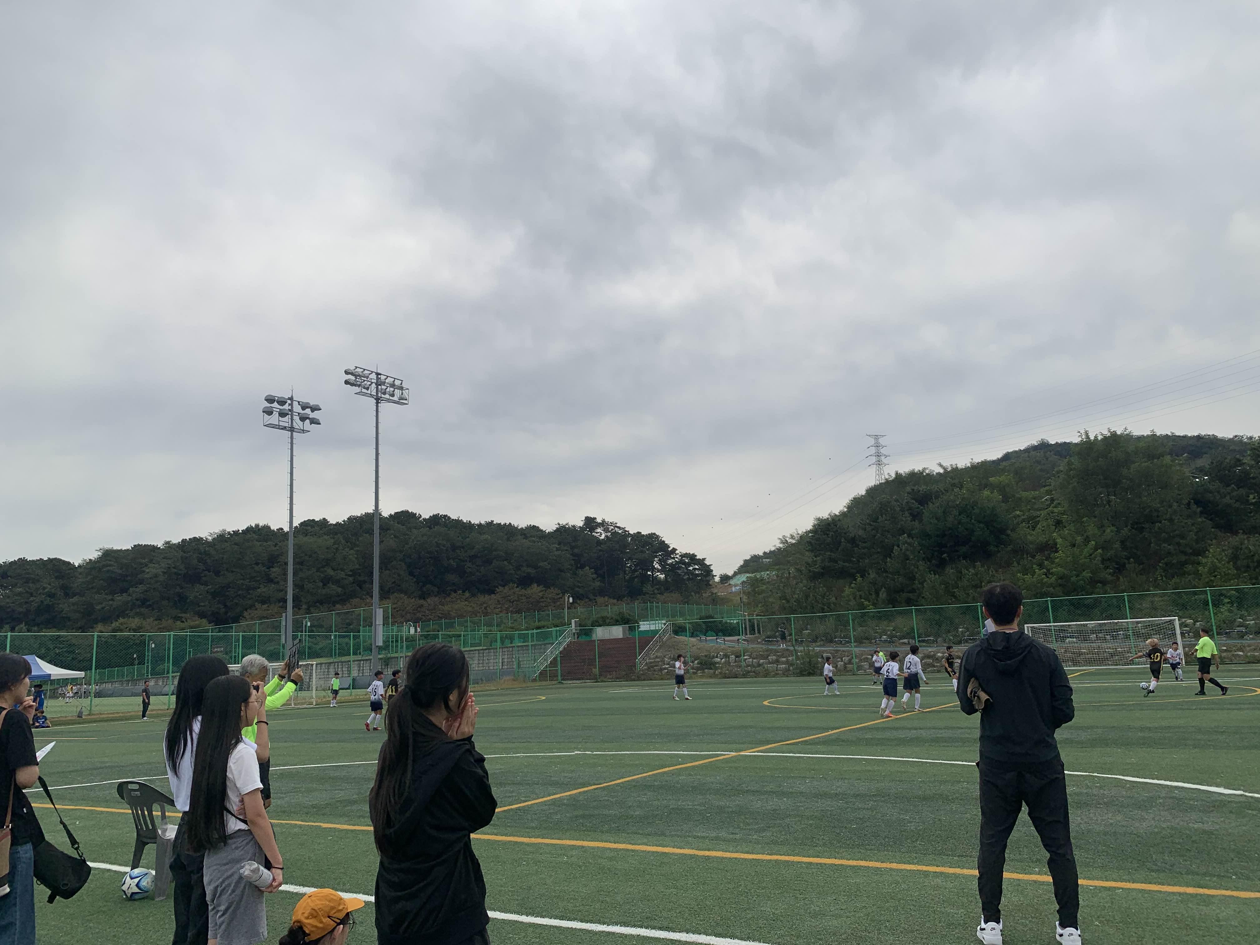 완산체련공원 축구장에 도착했다. 아이가 속한 송천초는 10시 첫 경기라는 이야기를 듣고서 대략 10분 전쯤 도착했는데... 경기가 막 시작하려 한다.ㅎㅎ