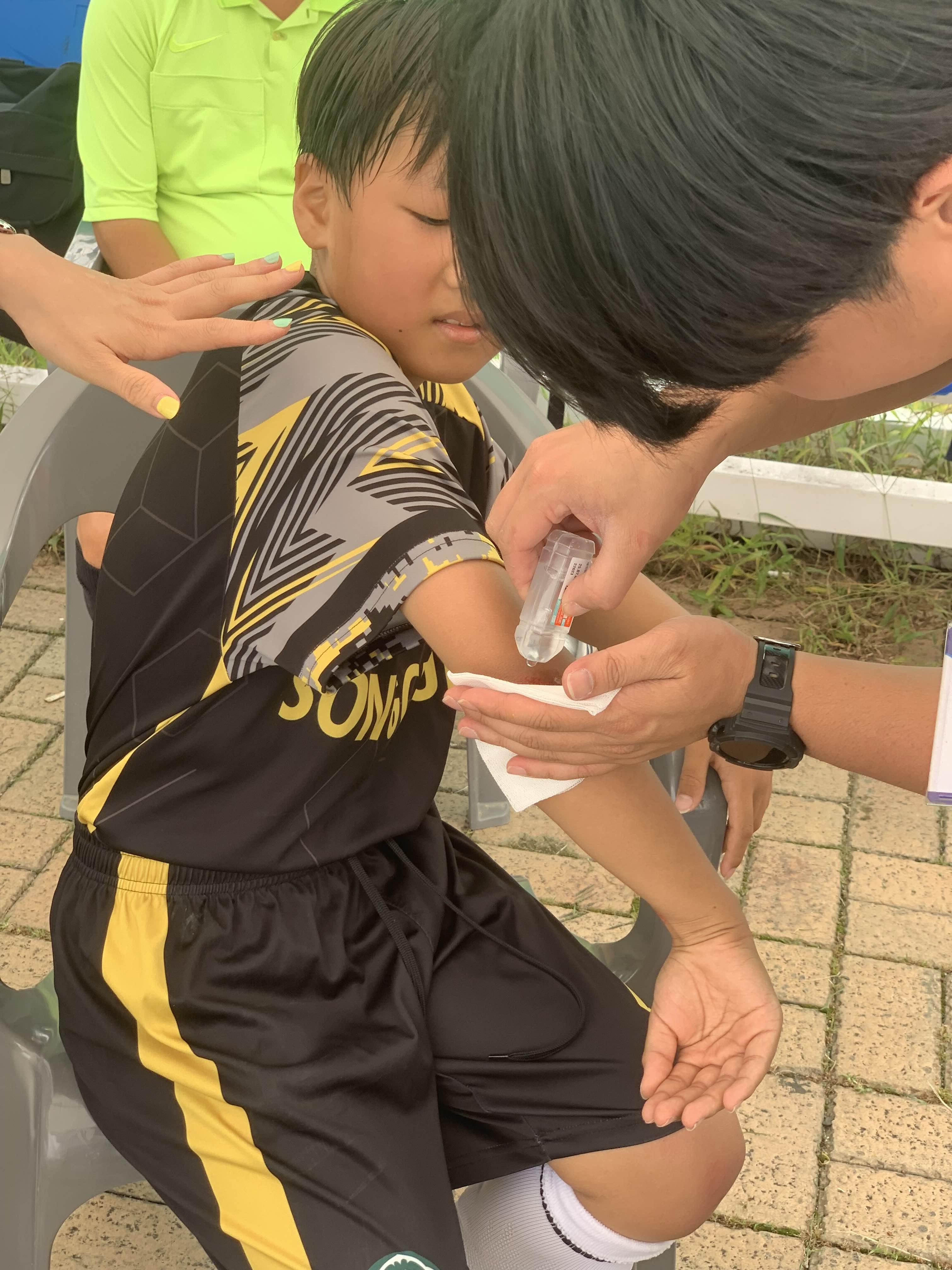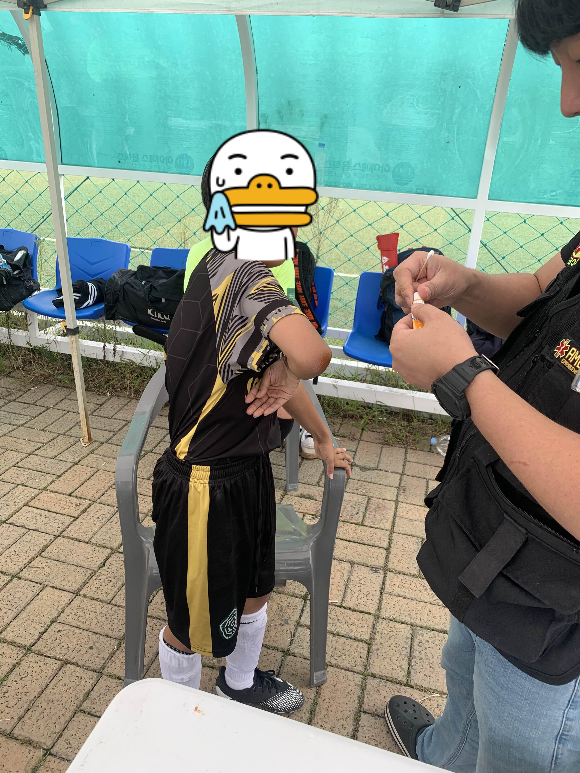 치료를 받는 아이!ㅎㅎ 부상당해도 축구가 재미있나 보다.ㅎㅎ 재미는 있긴 하지만!ㅎㅎ
