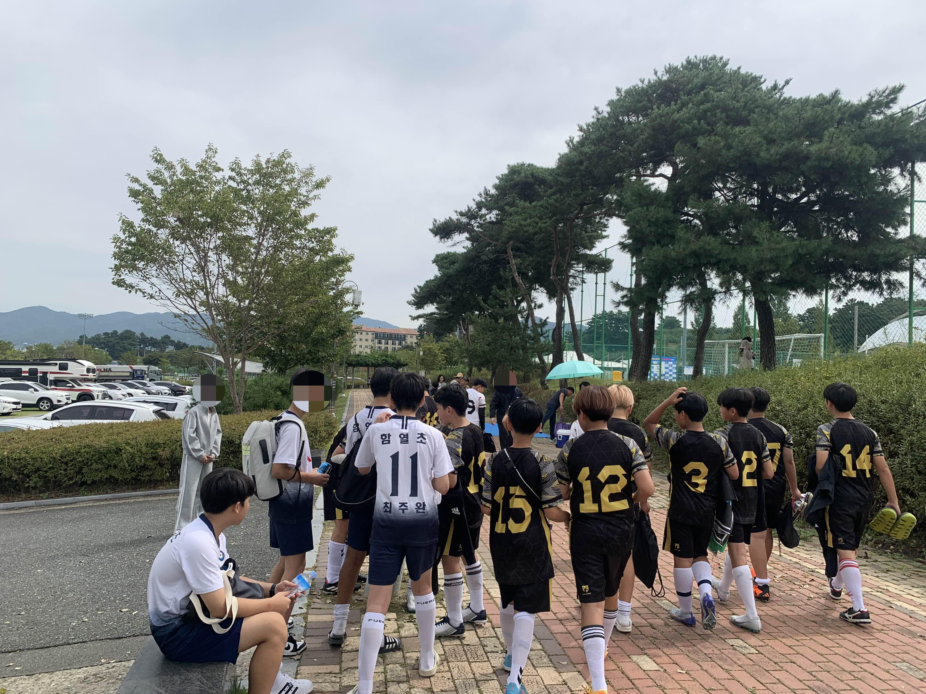 학교에 모여 몸풀기하고 대회장소로 이동한다고 이른 아침 학교로 향했다.