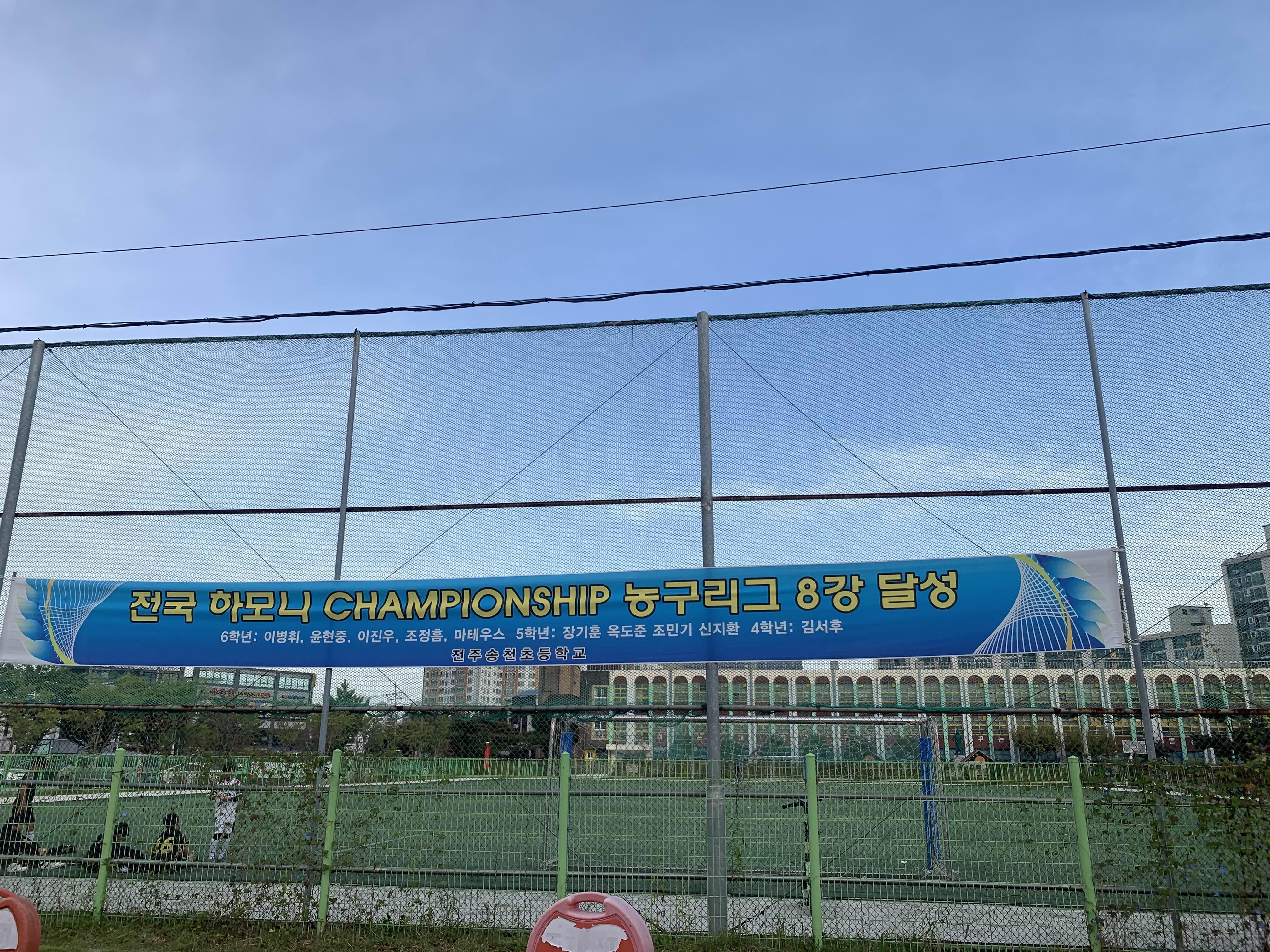 송천초의 농구부! 농구리그 8강 달성했다는 현수막이 눈에 들어왔다.