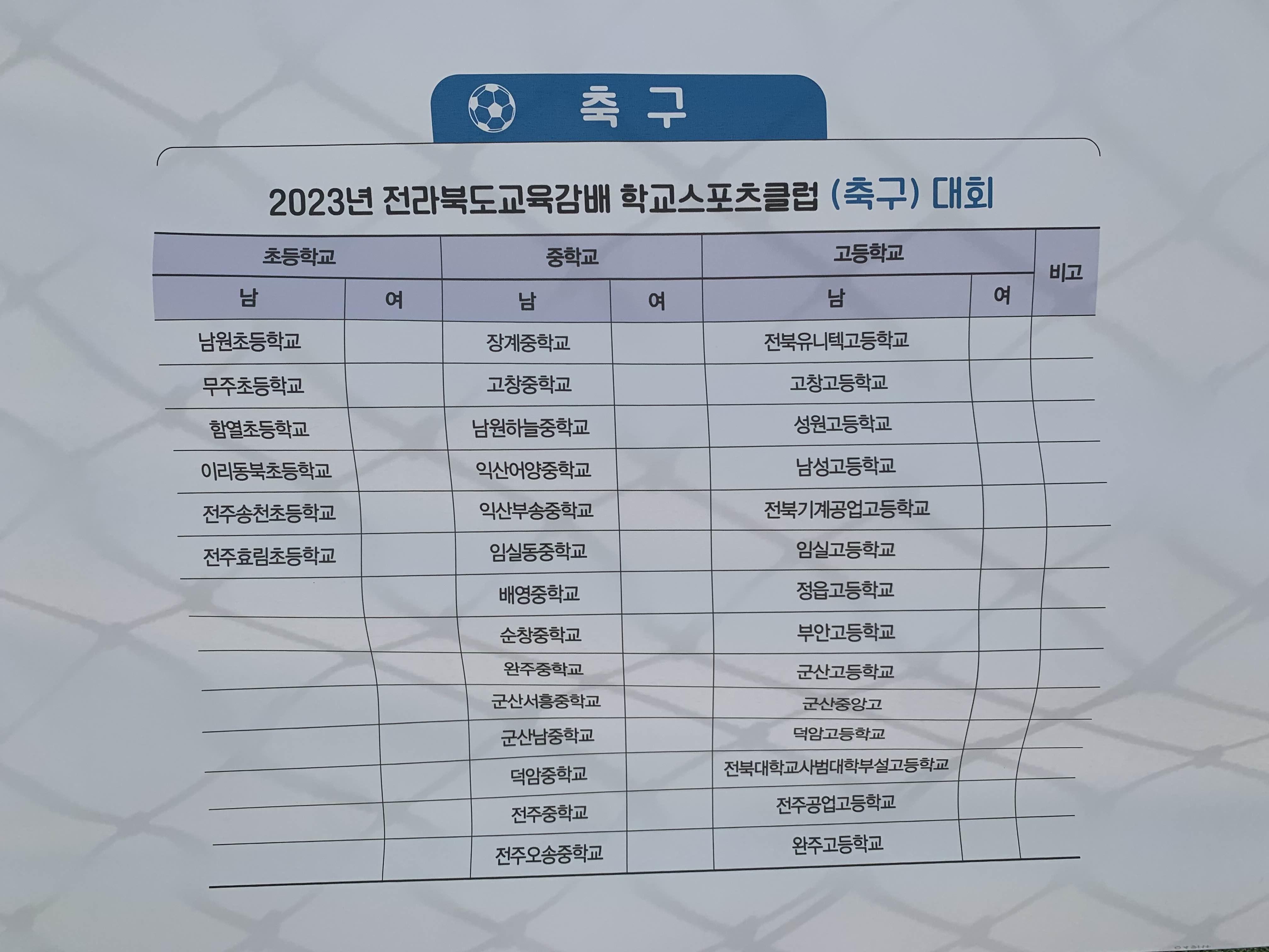 2023년도 전라북도교육감배 학교스포츠클럽 대회...... 명칭이 상당히 길다.