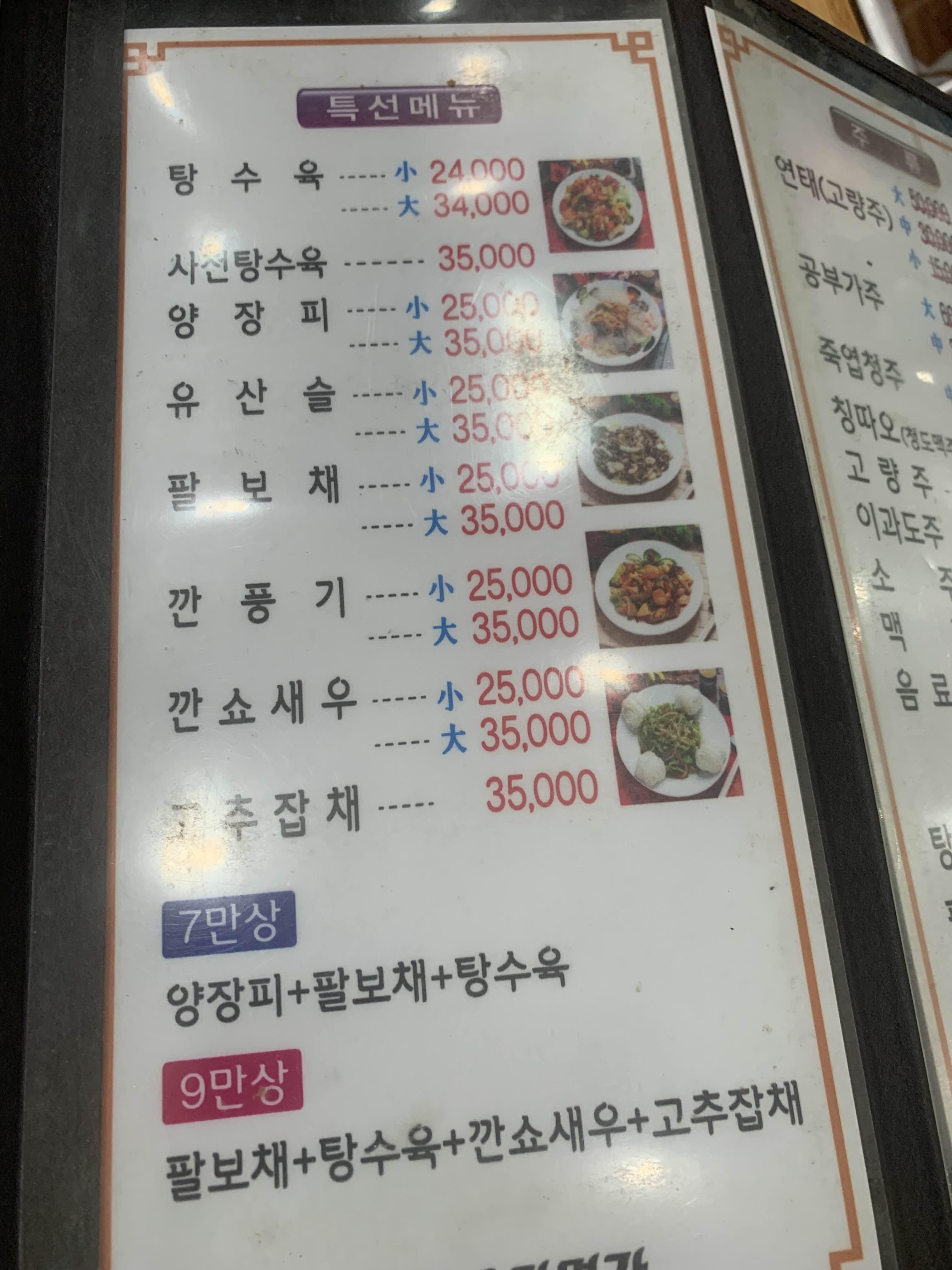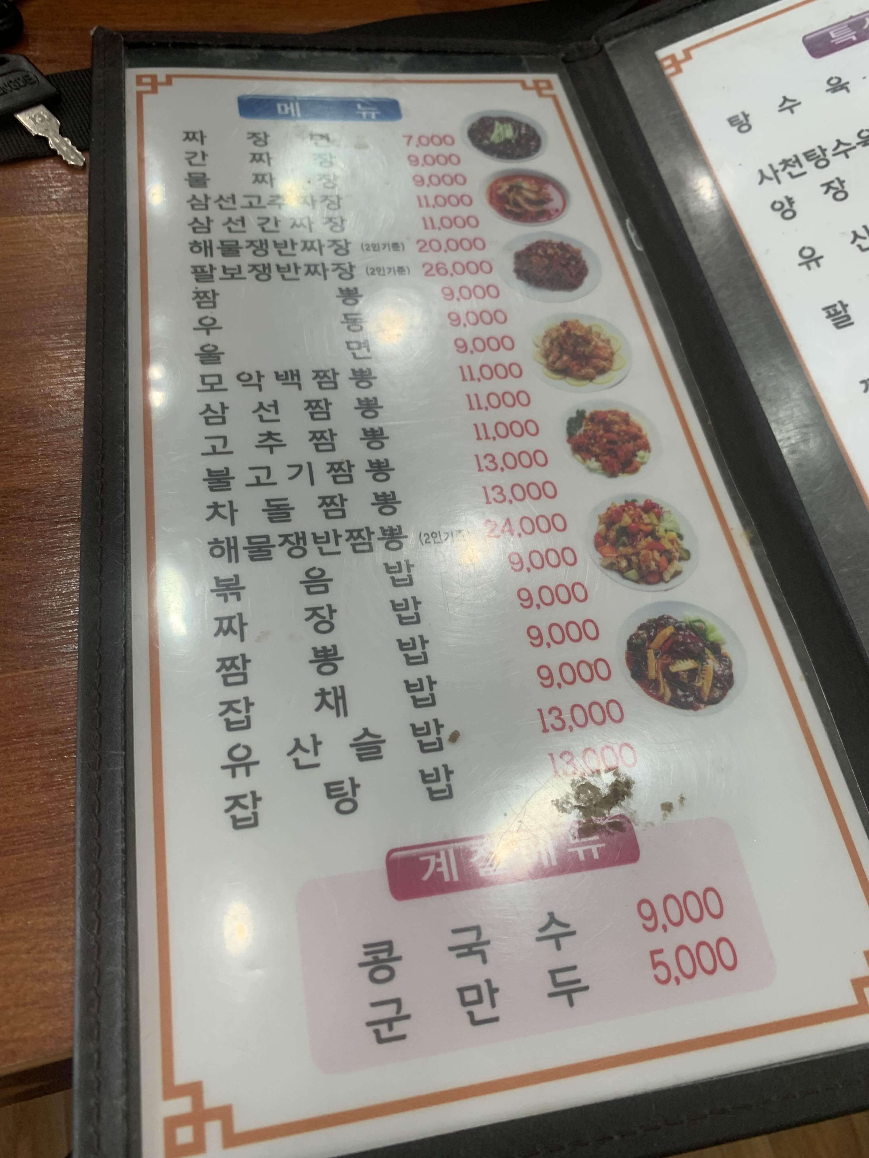 메뉴판을 스캔하고... 세트메뉴를 주문하려고 했으나.. 세트메뉴 중 짜장면을 곱빼기로 변경 가능한지 여쭈어 보니, 안된다 하여...