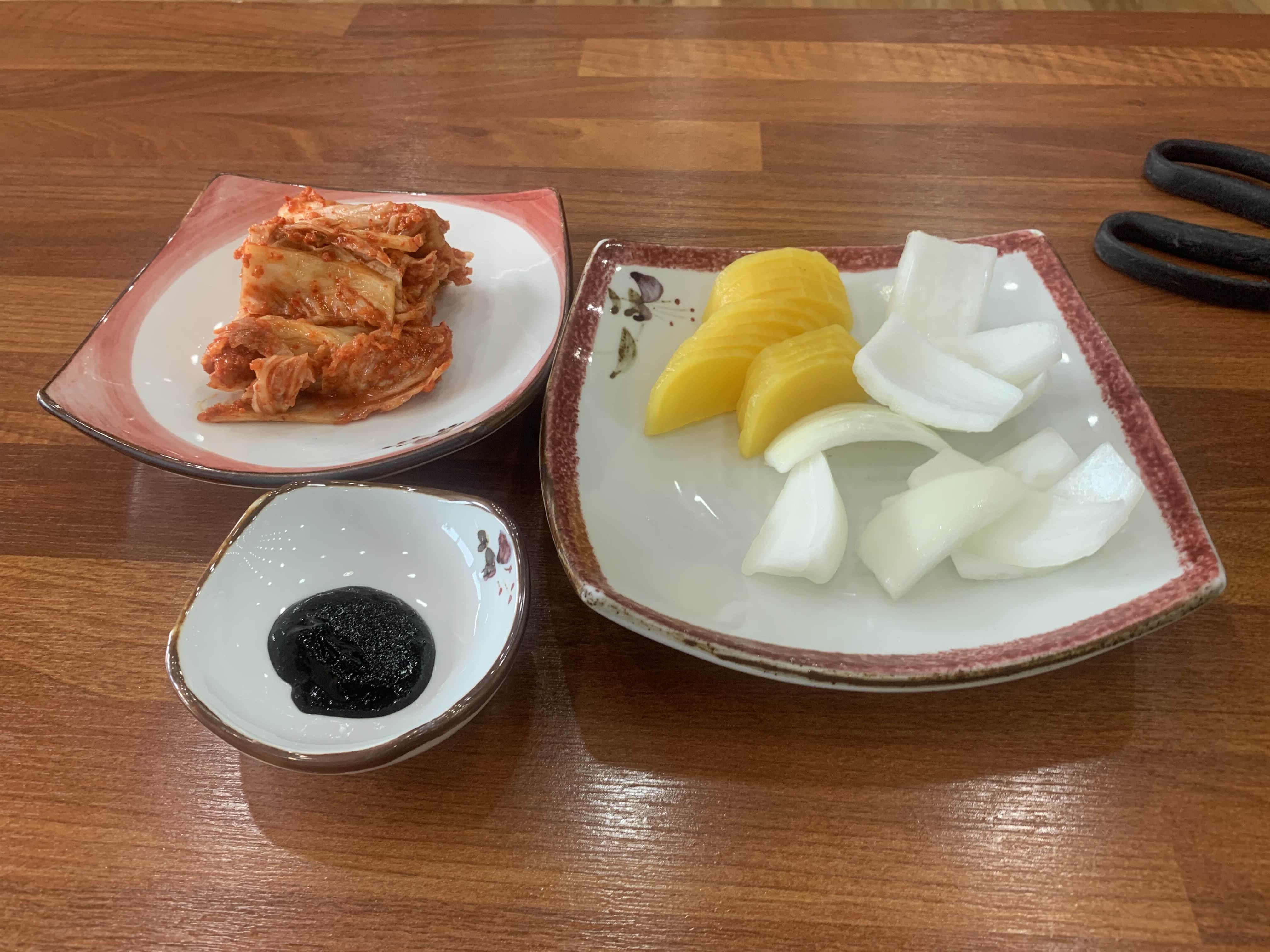 음식을 주문하면... 배추김치와 깍두기가 나왔네요.