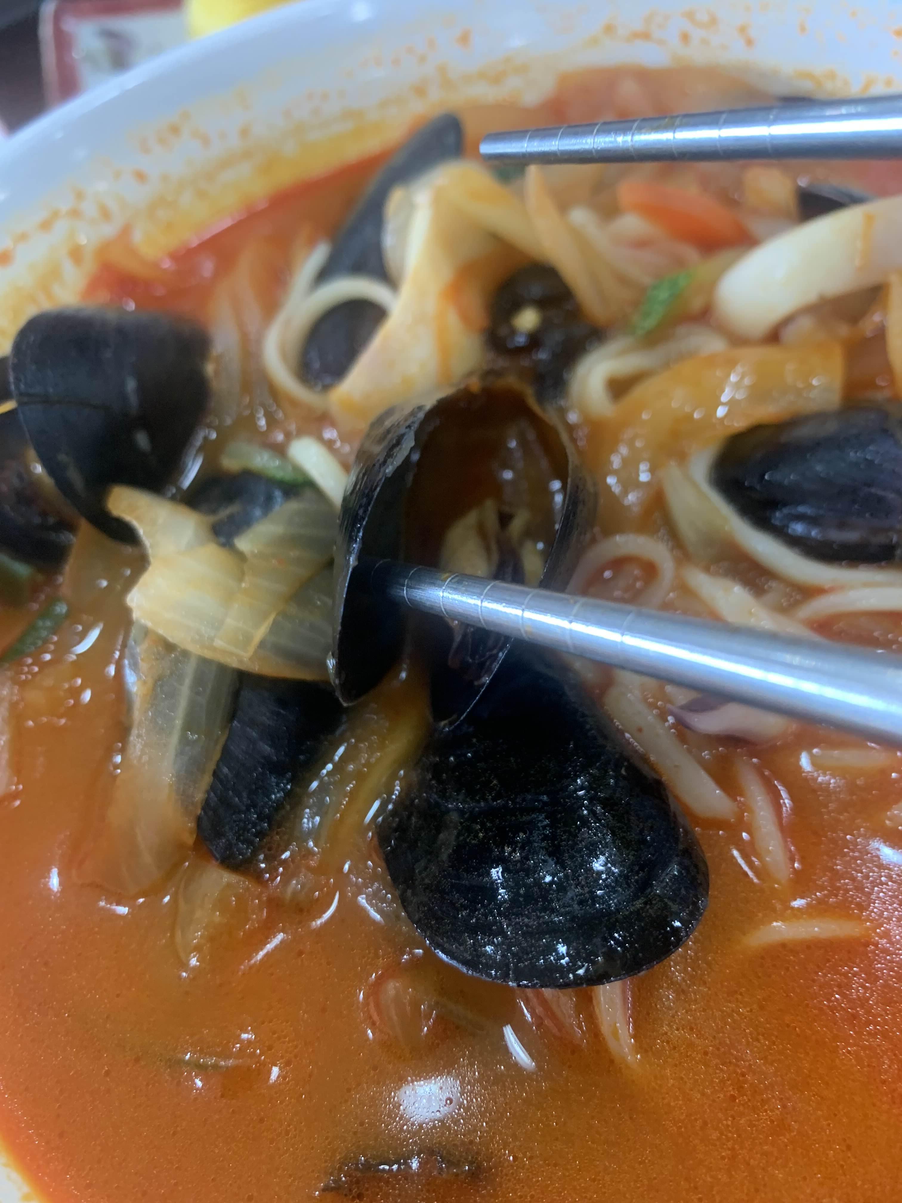 홍합을 몇 개 까서 먹어보니... 괜찮다.
