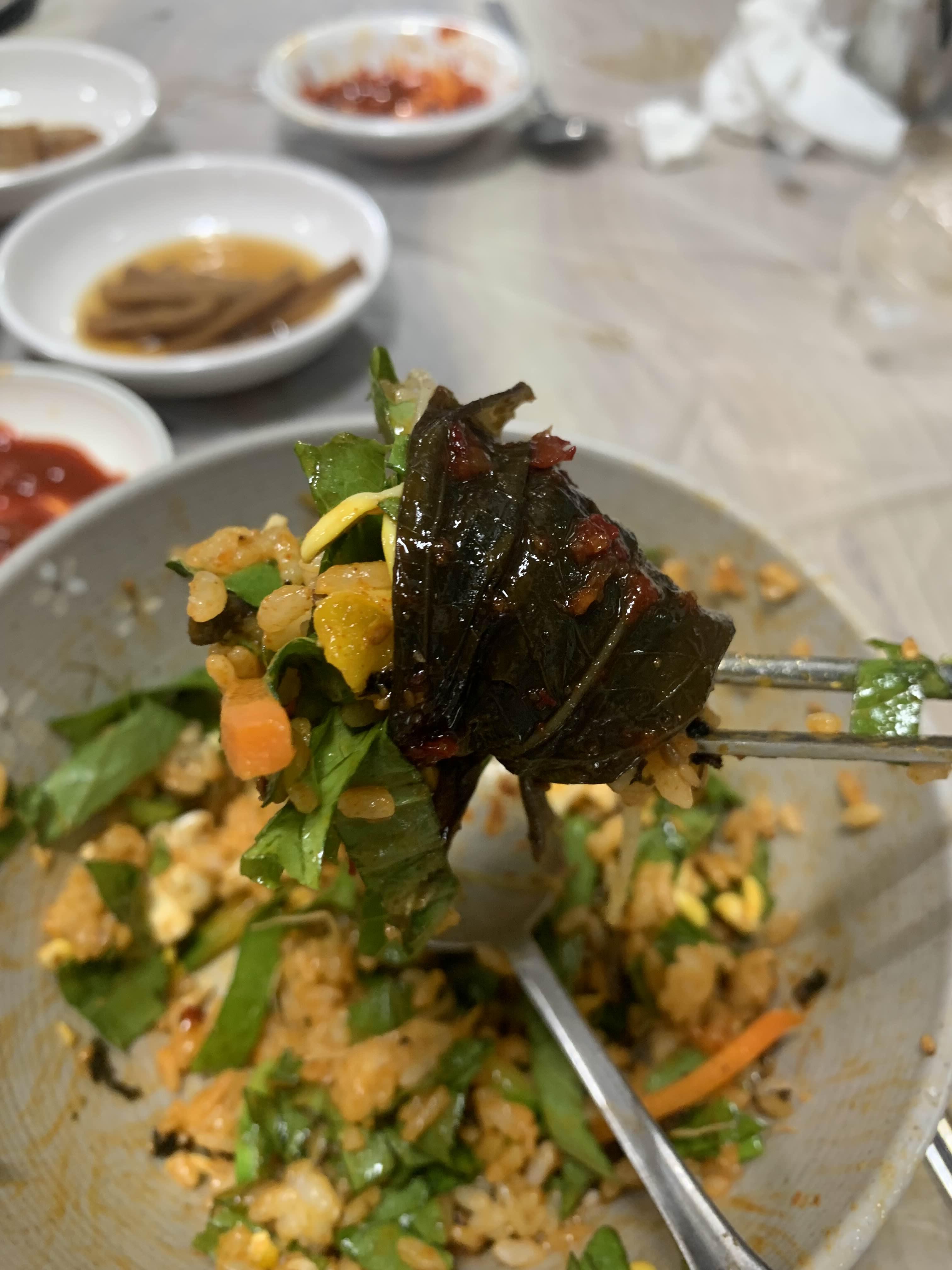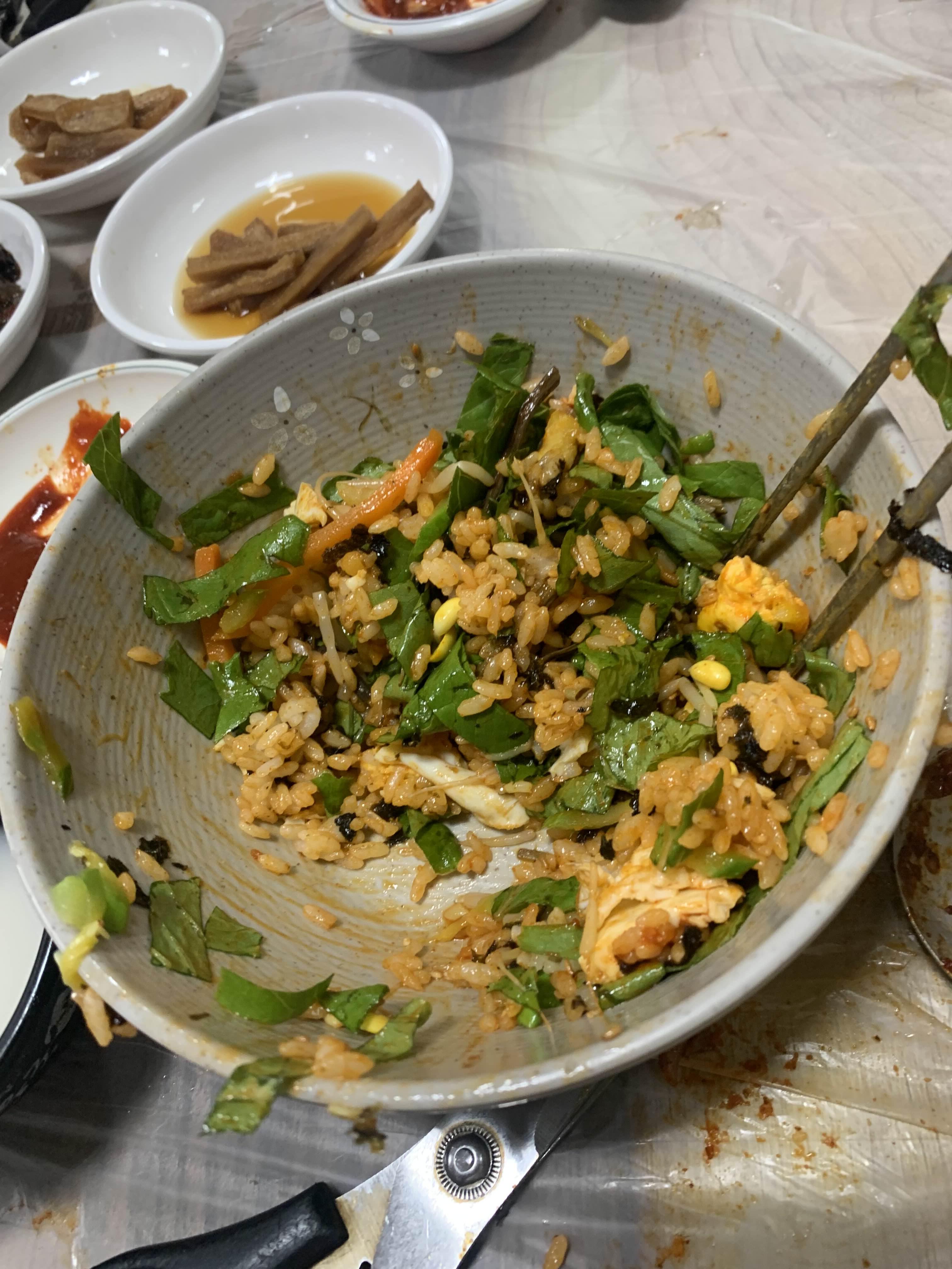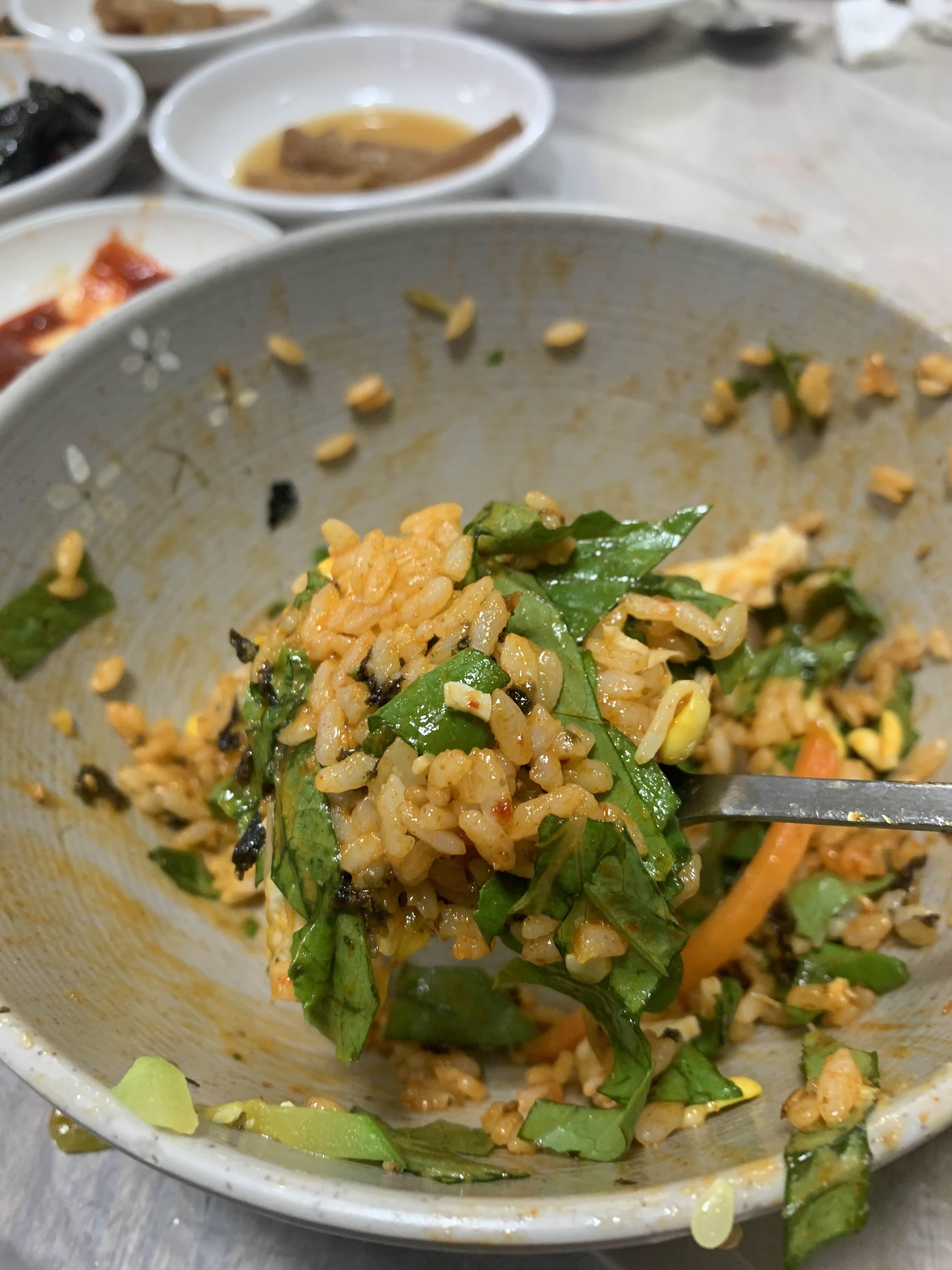내 비빔밥이 나왔는데... 여기저기에서 한입한입... 한 그릇 나온 비빔밥이 반그릇으로 뚝딱! 변했다.