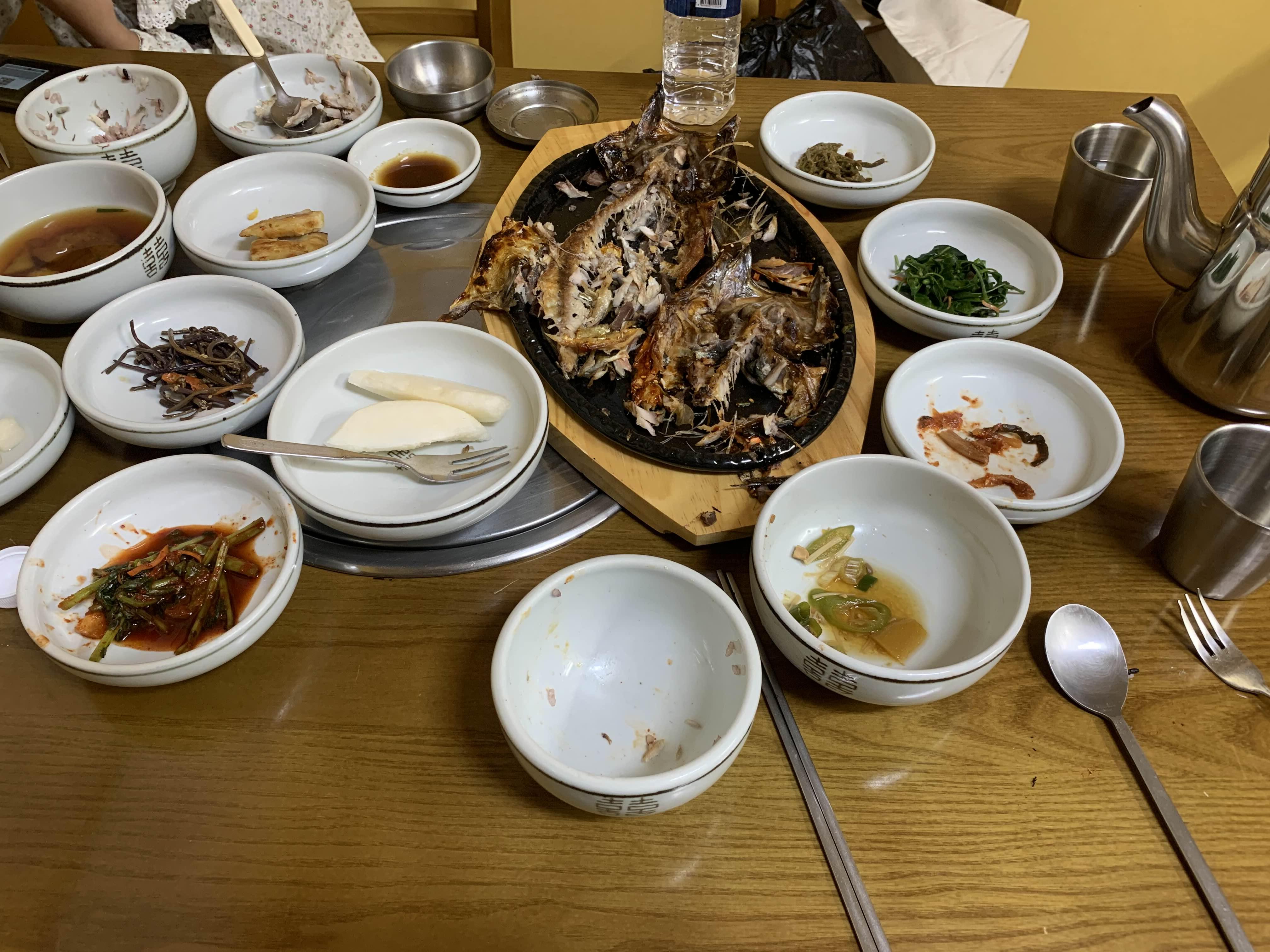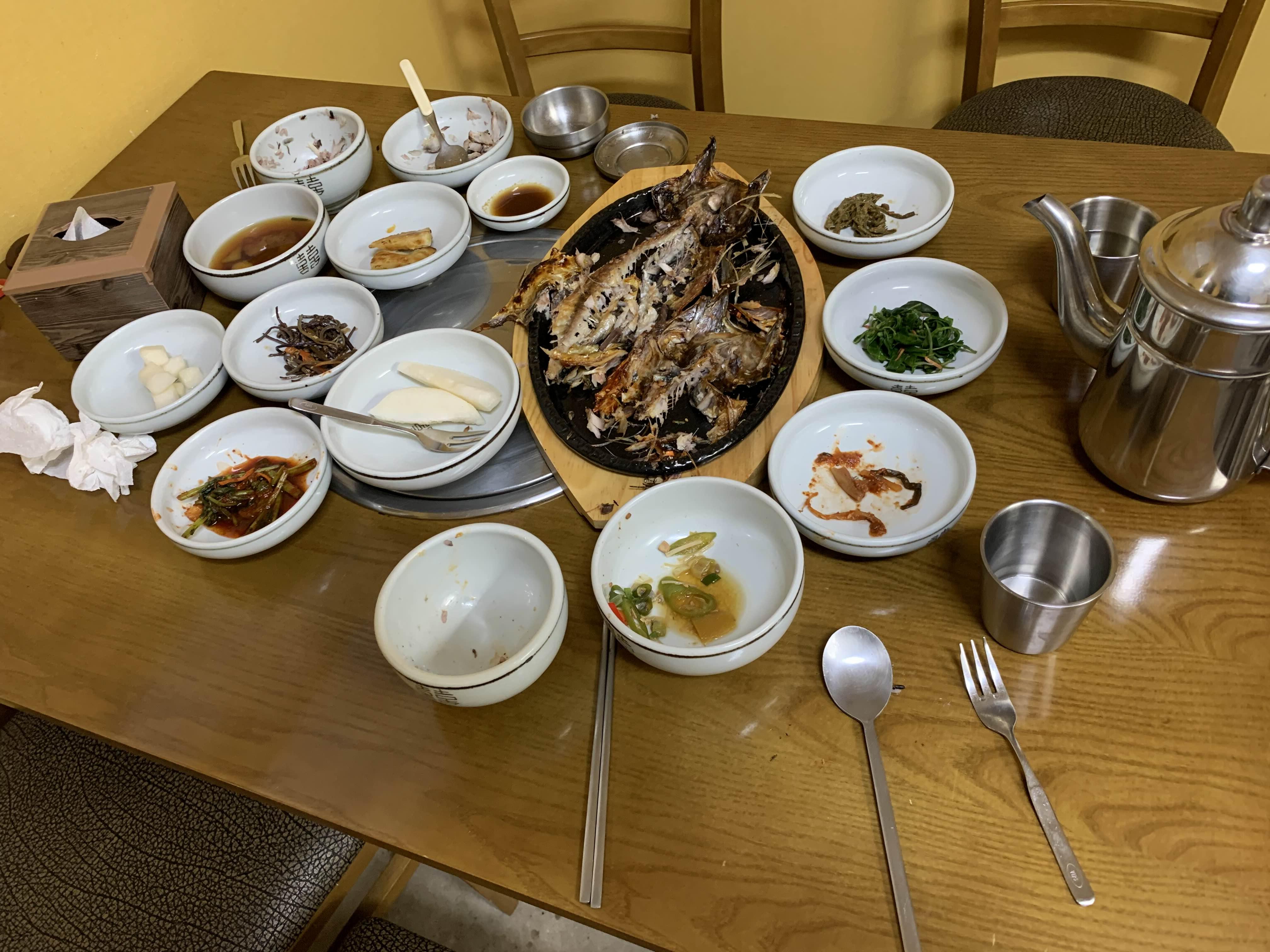 생선구이는... 대략 15분 정도 기다리니... 음식이 나오더군요. 생선을 굽는 시간이 있어서^^