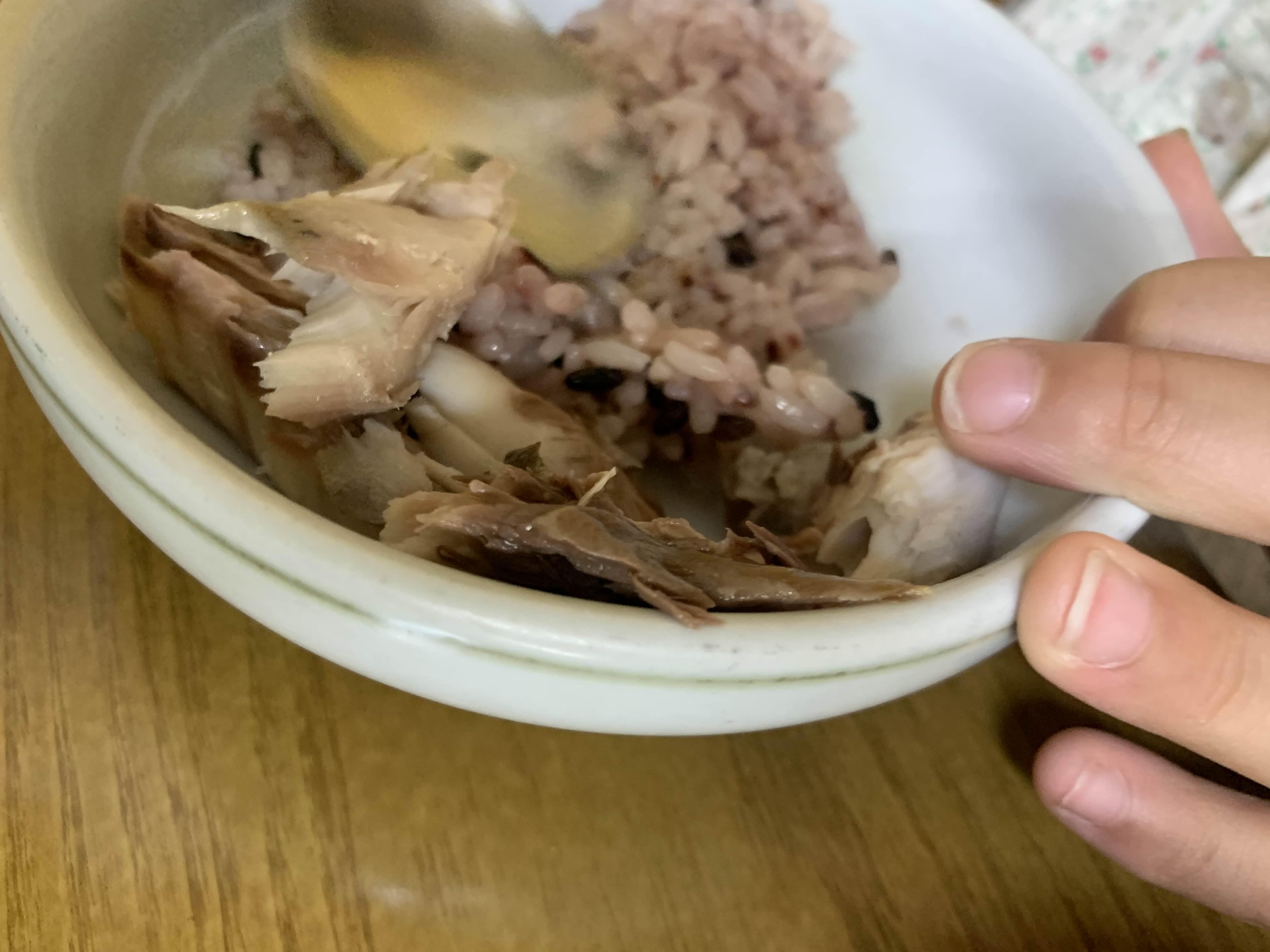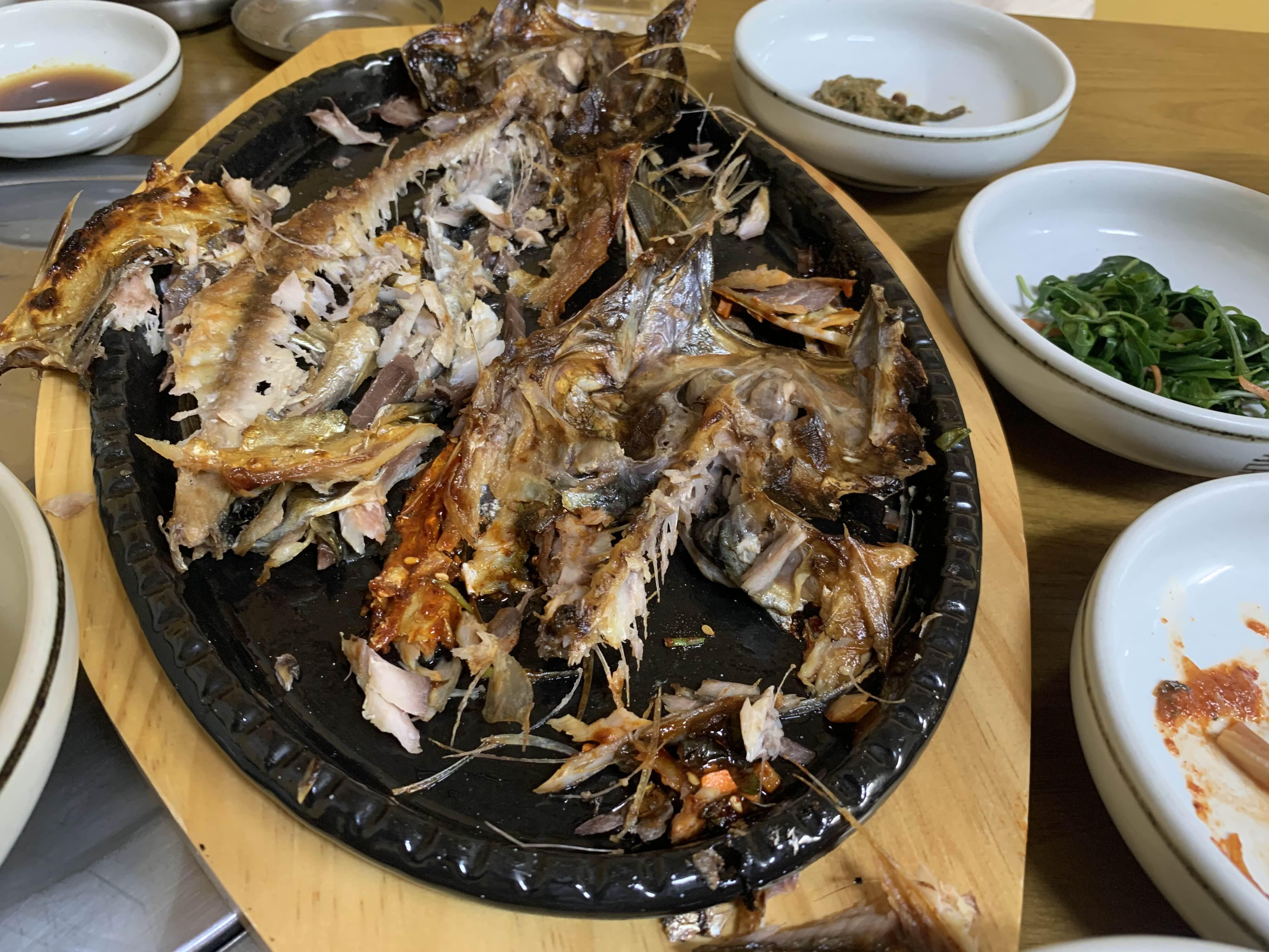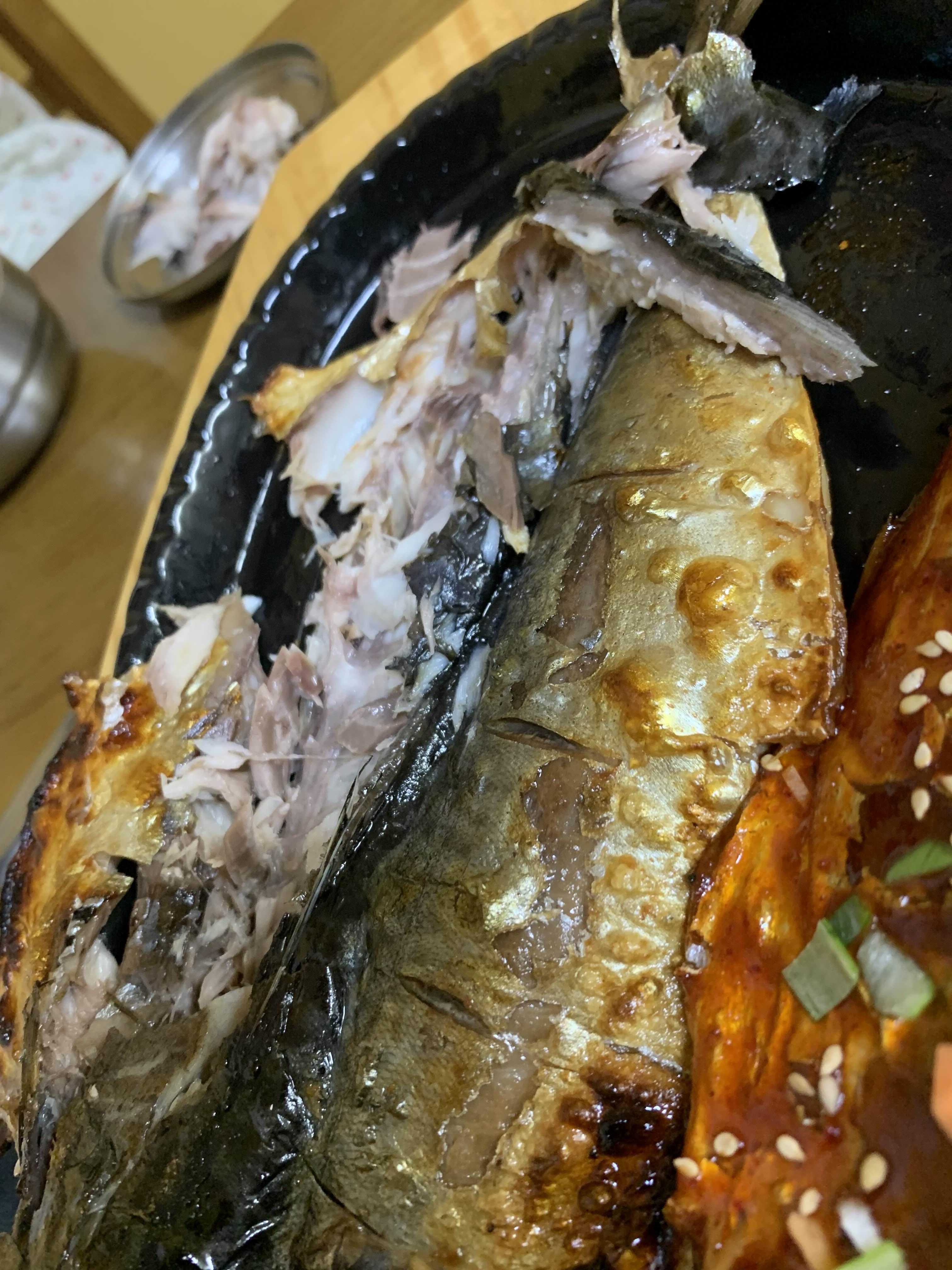 고등어 살코기를 발러서 먹는데.... 어느새 고등어 뼈만 남음...