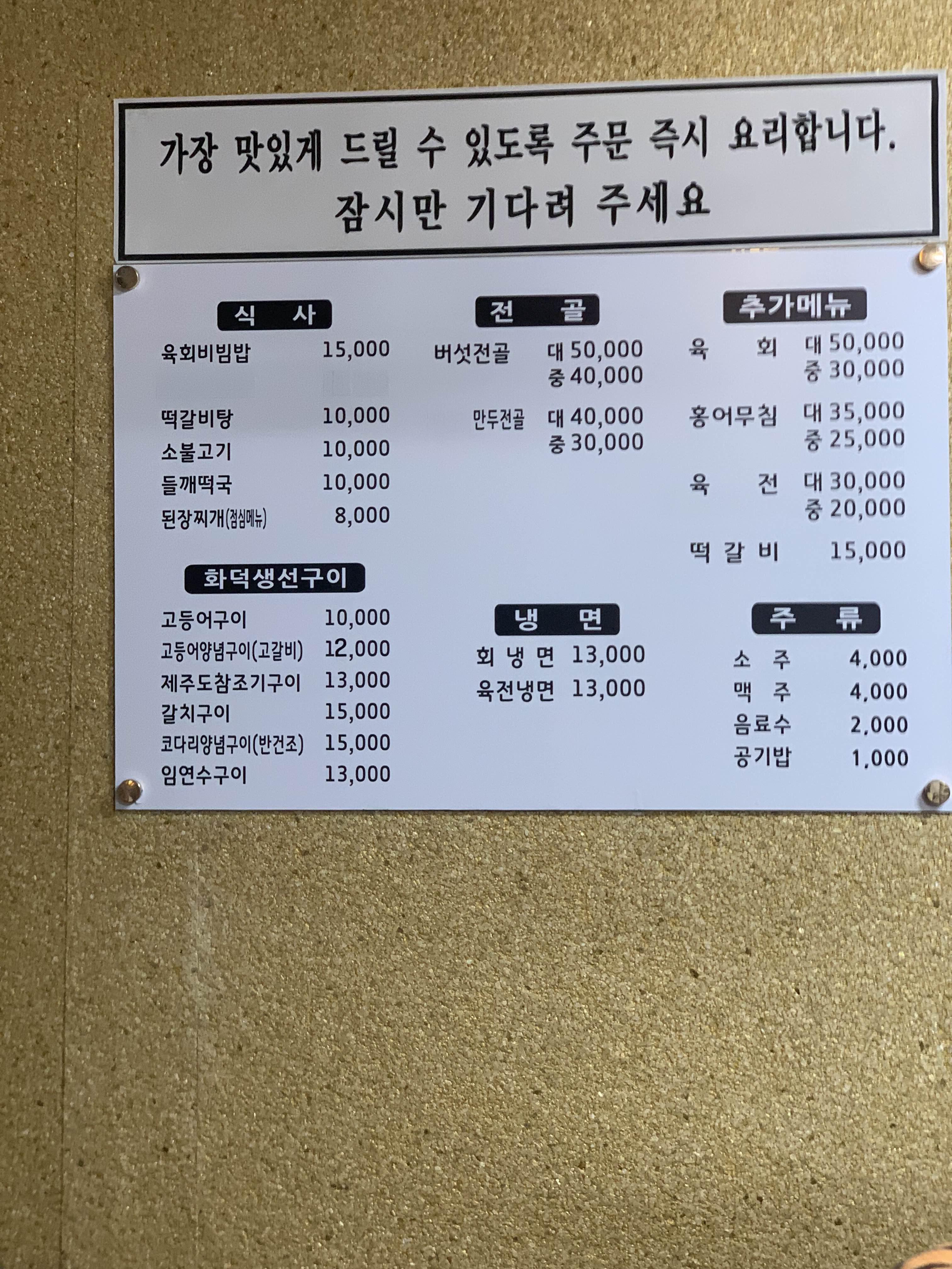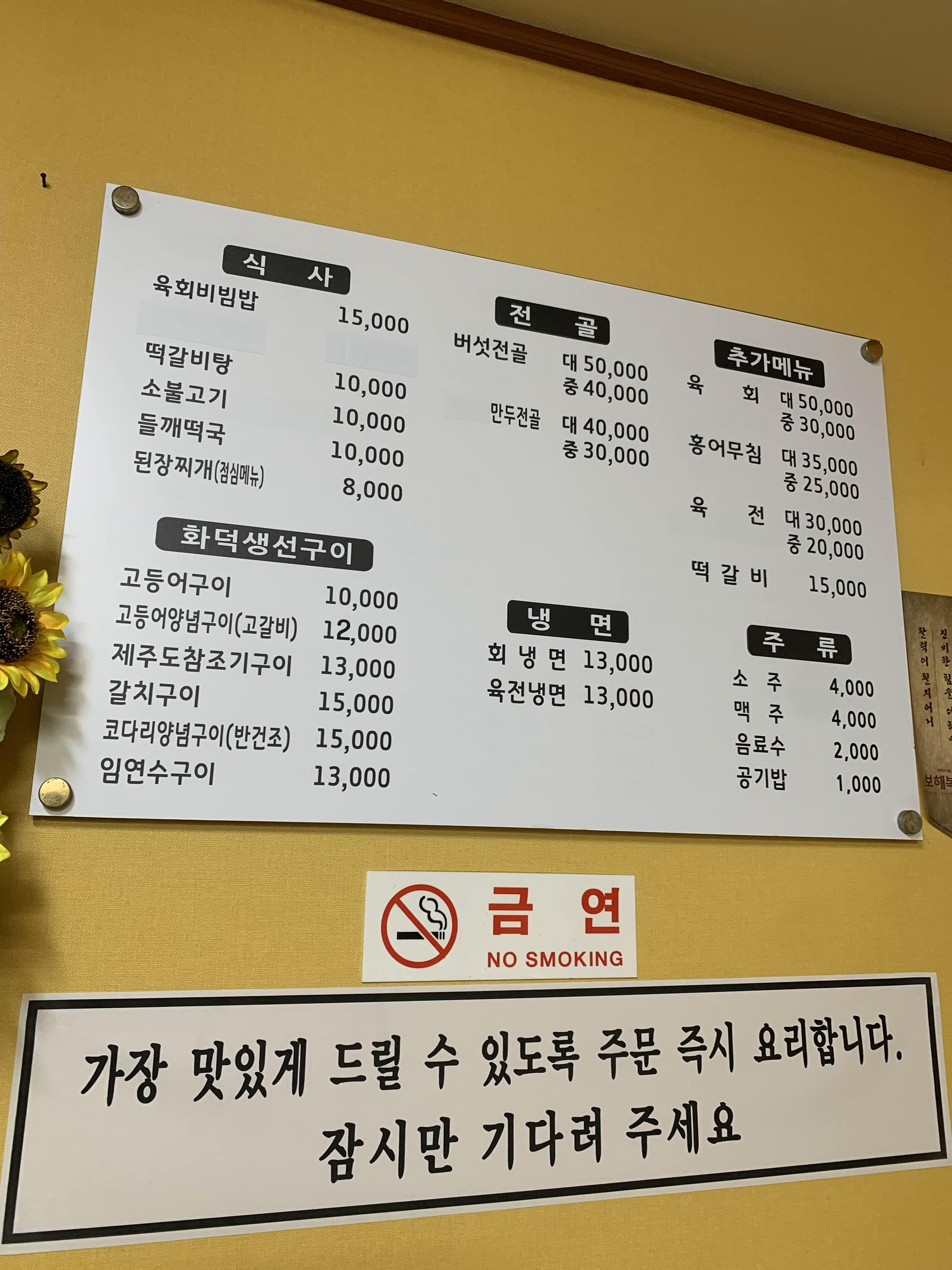 메뉴판의 가장 위 메뉴가... 식당의 메인 메뉴로 알고 있는데... 생선구이가 아래쪽에 위치해 있었다.ㅎㅎ