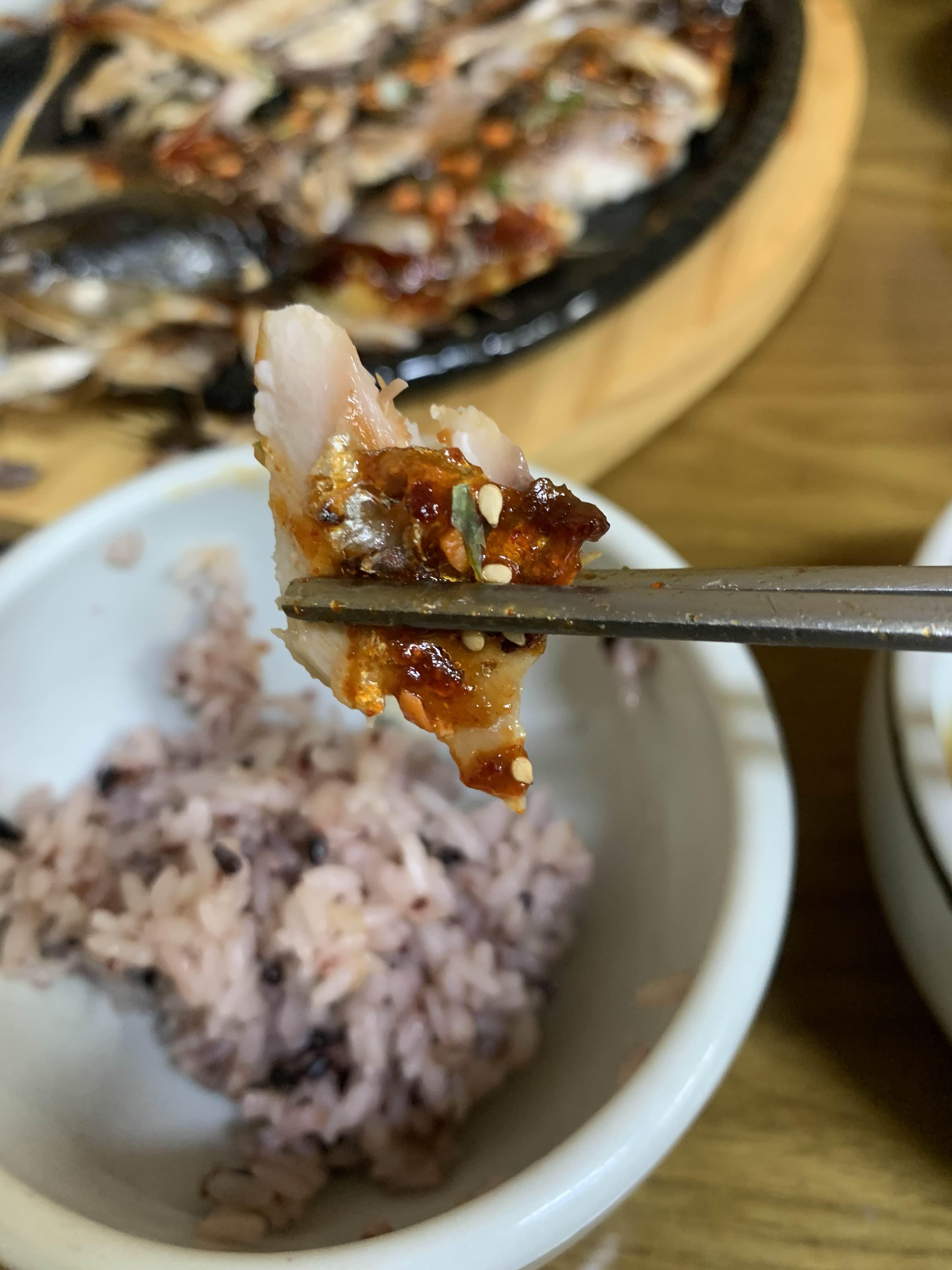 나도 고등어 살코기를 맛보고.... 양념을 맛보는데^^