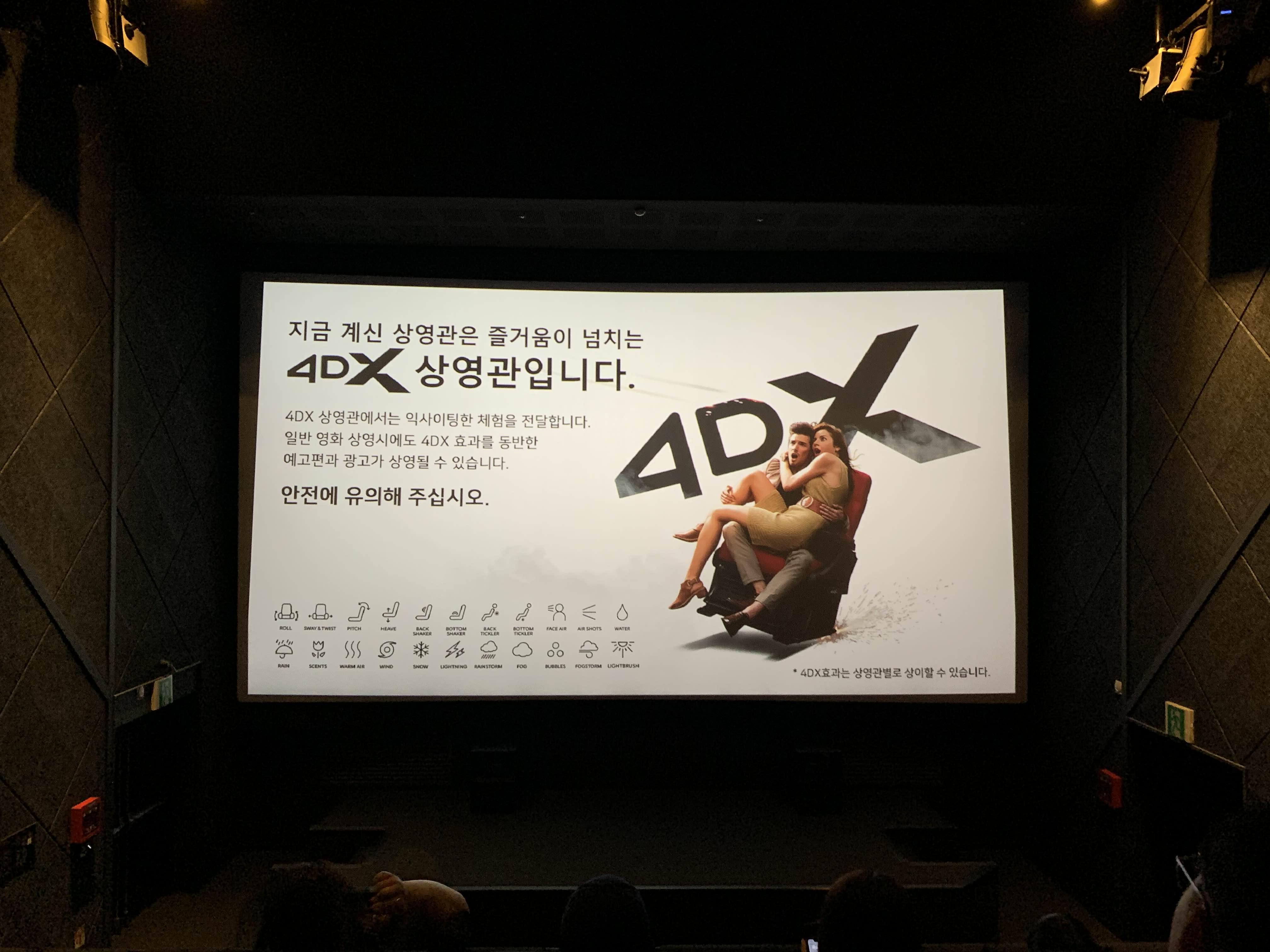 집에서 tv로 시청하는 느낌이 아닌, 다른 체험을 즐기고 싶어서 4dx를 찾게 되었습니다.