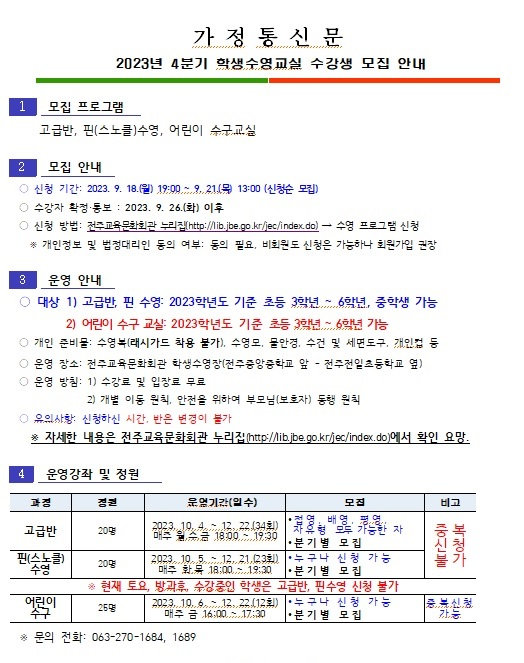 전주교육문화회관 > 학생&평생교육 > 수강신청(수영)