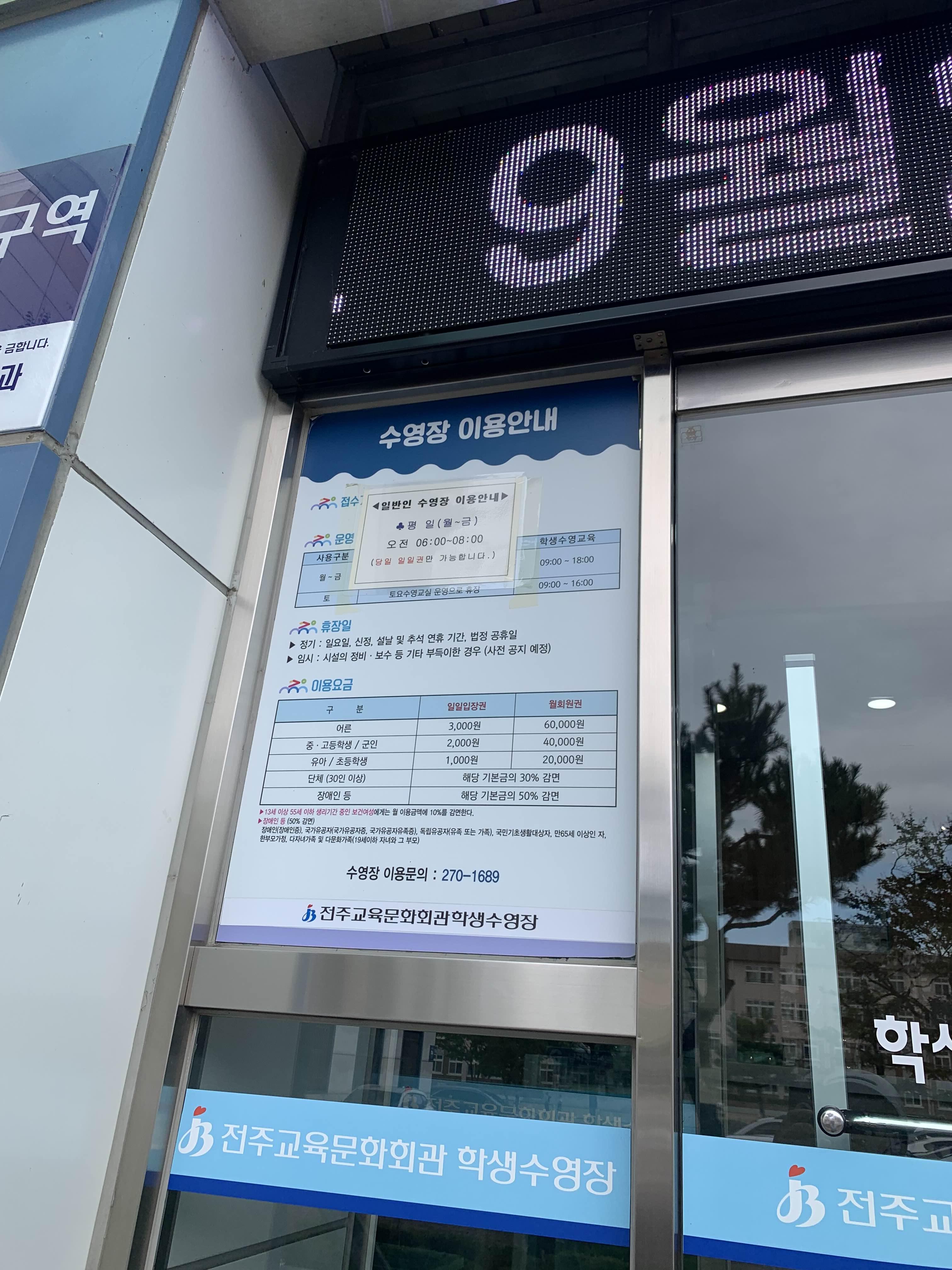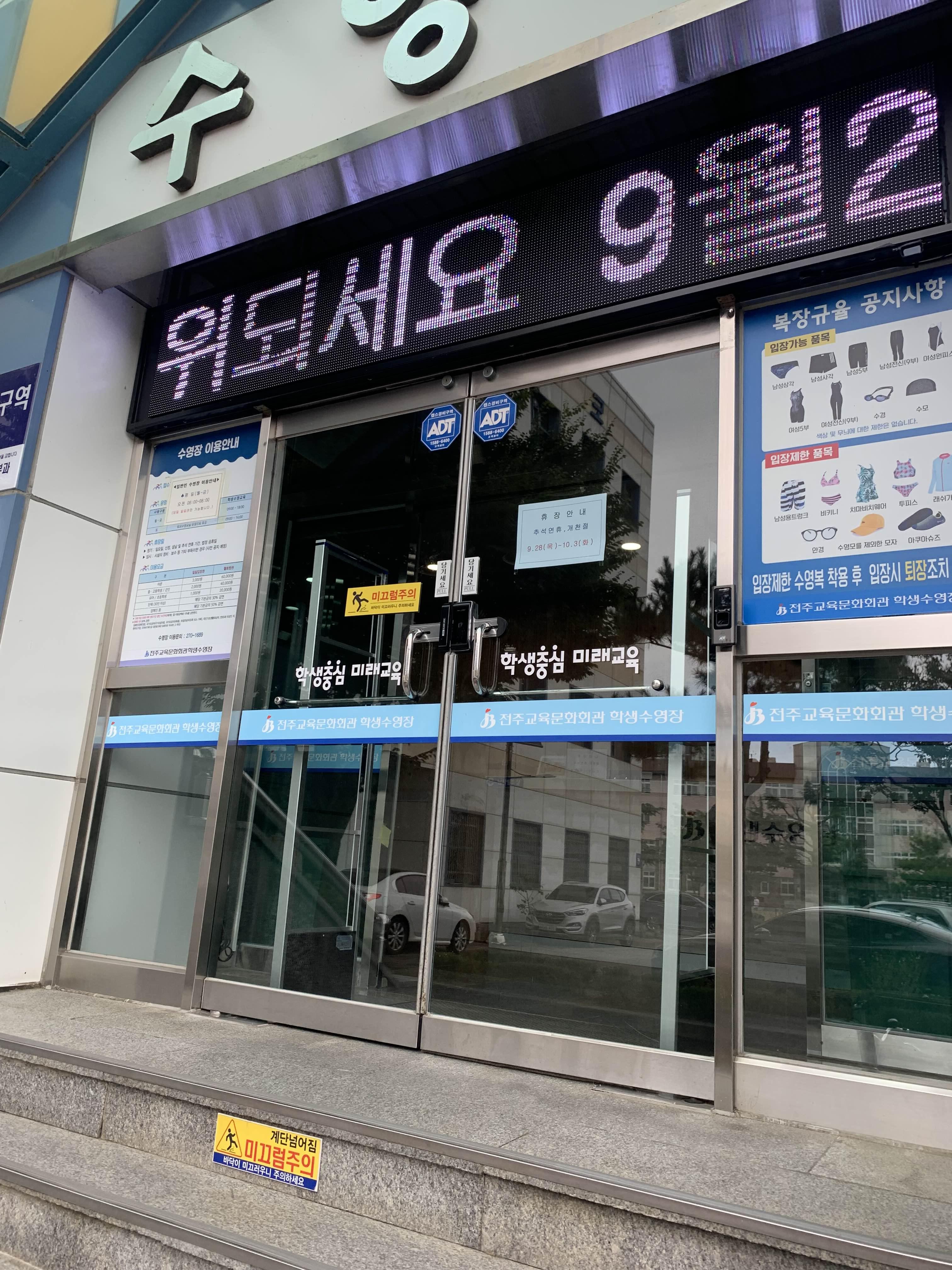 청소년 강습을 주로 진행하는 전라북도교육문화회관의 수영장에 방문해 보았습니다.
