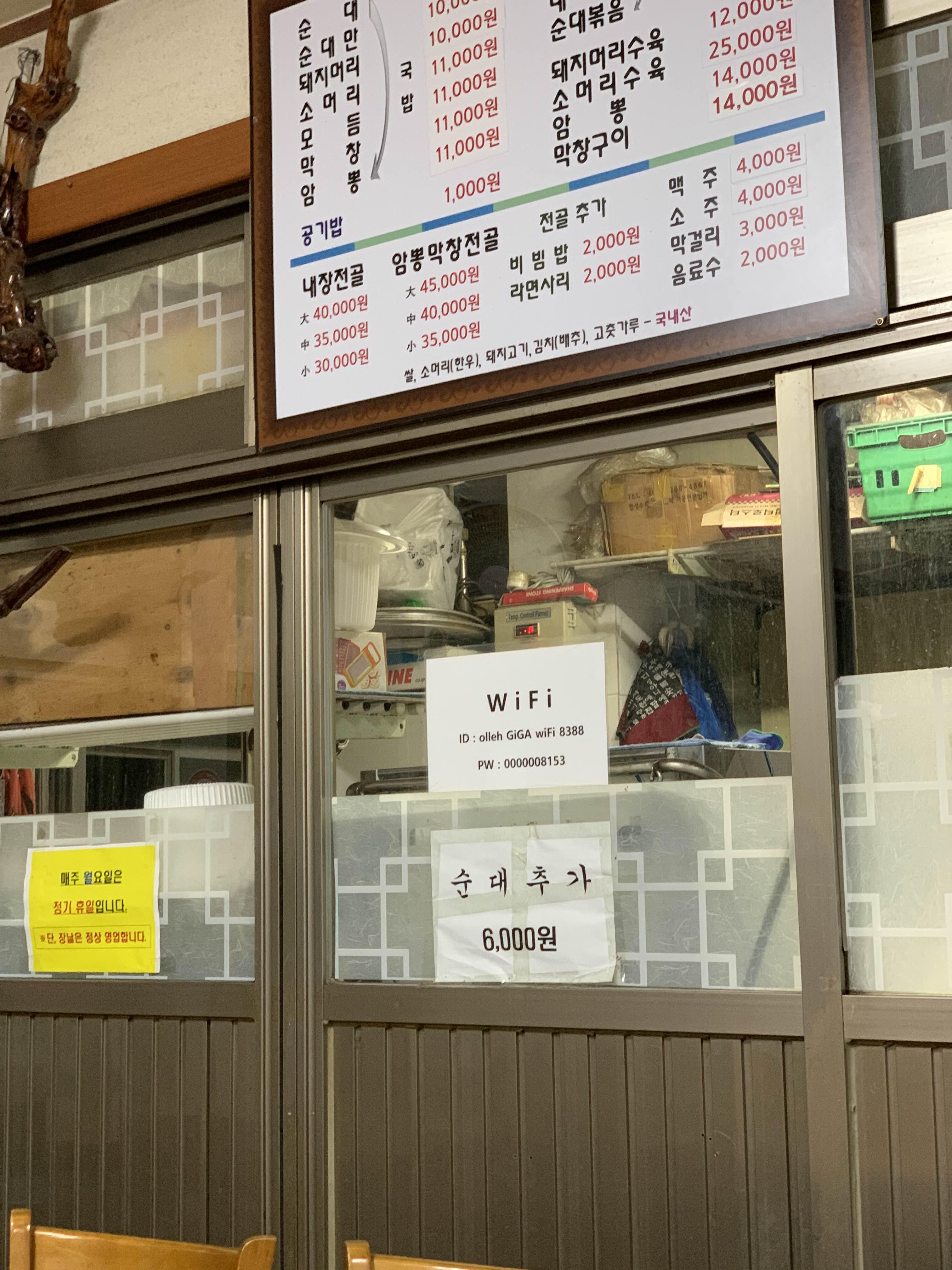 인터넷 강국...... 시장의 순댓국에서 무료 와이파이가 제공되는 대한민국!ㅎㅎ