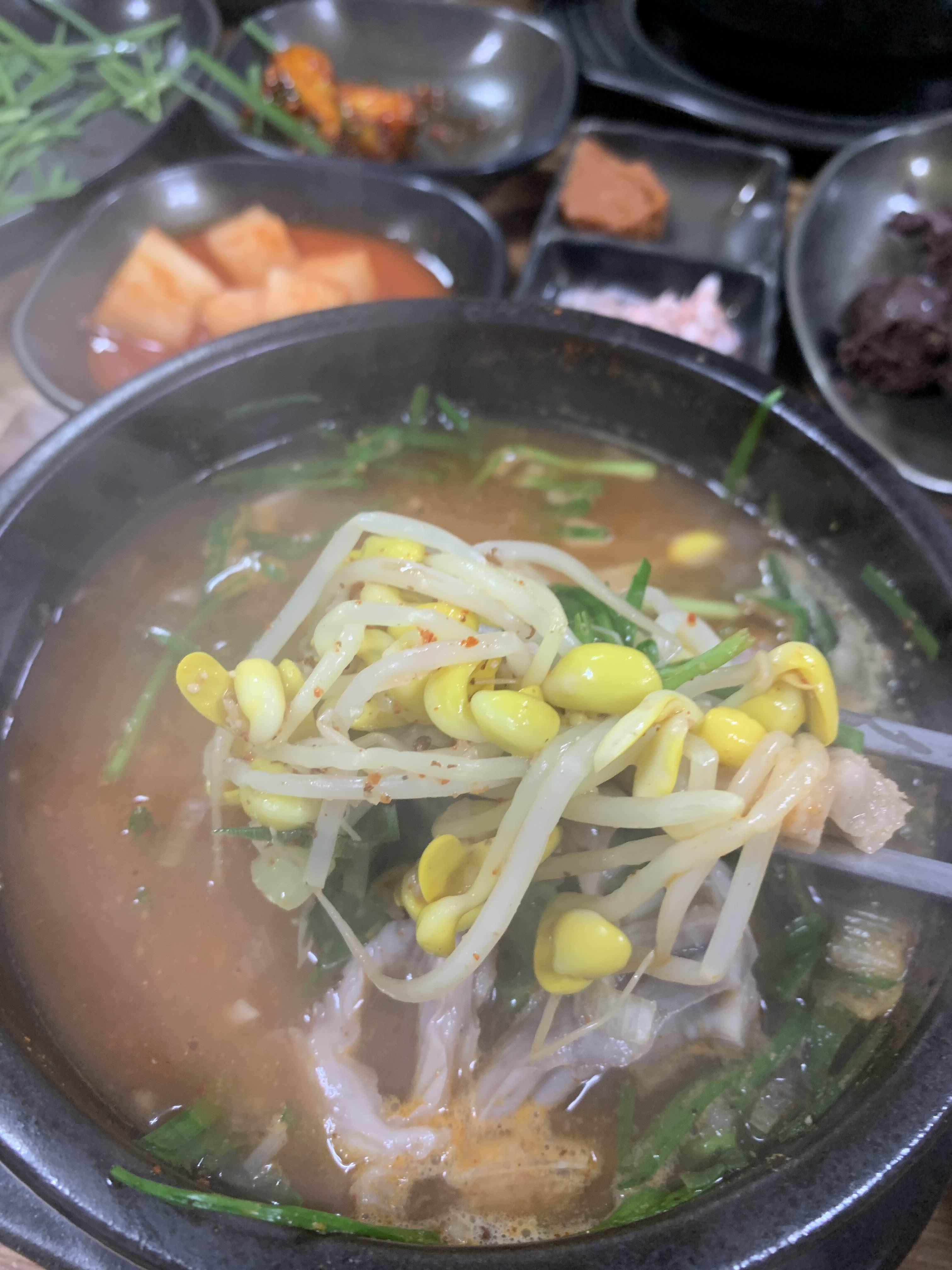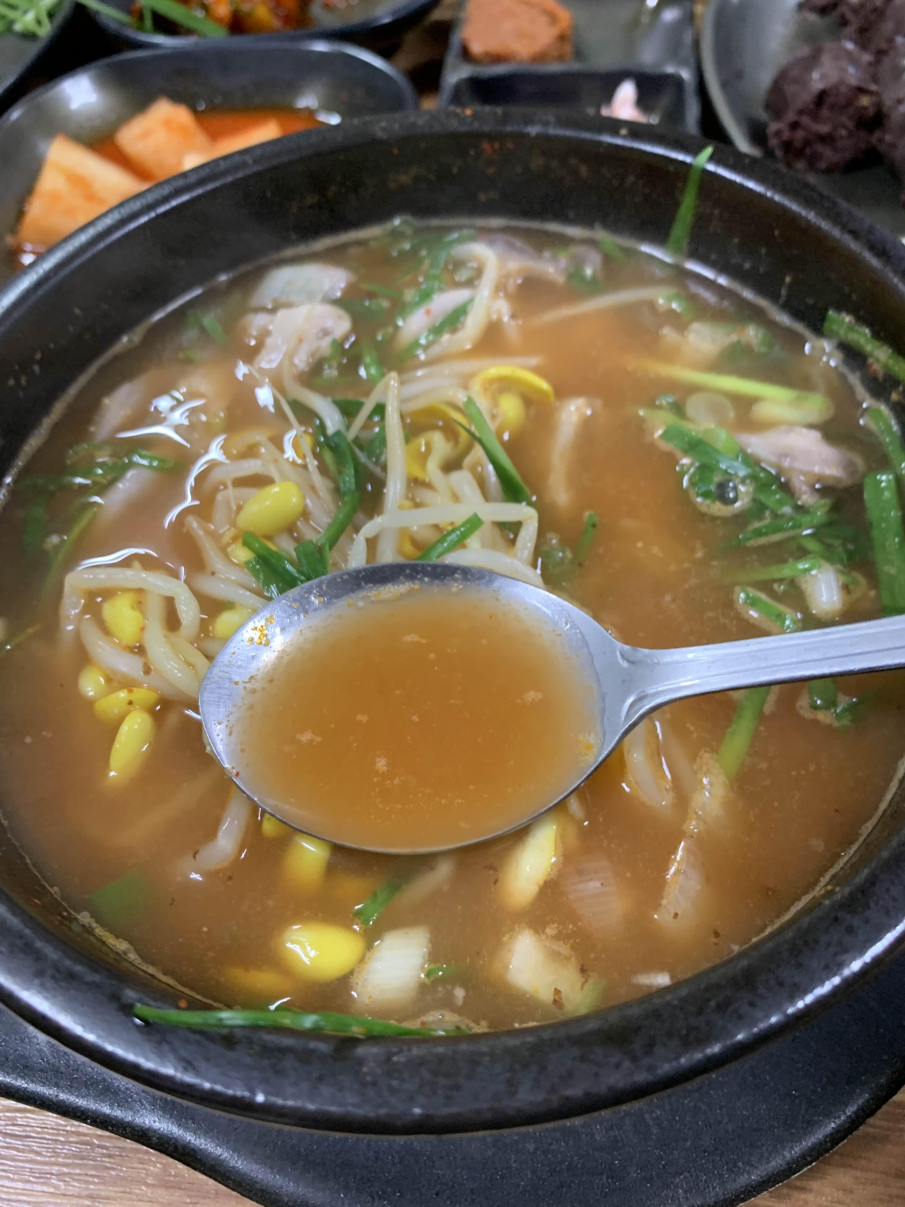 국밥에는 콩나물이 들어가.... 돼지국밥의 걸쭉한 느낌이 아닌, 콩나물국밥의 개운한 국물 느낌입니다.