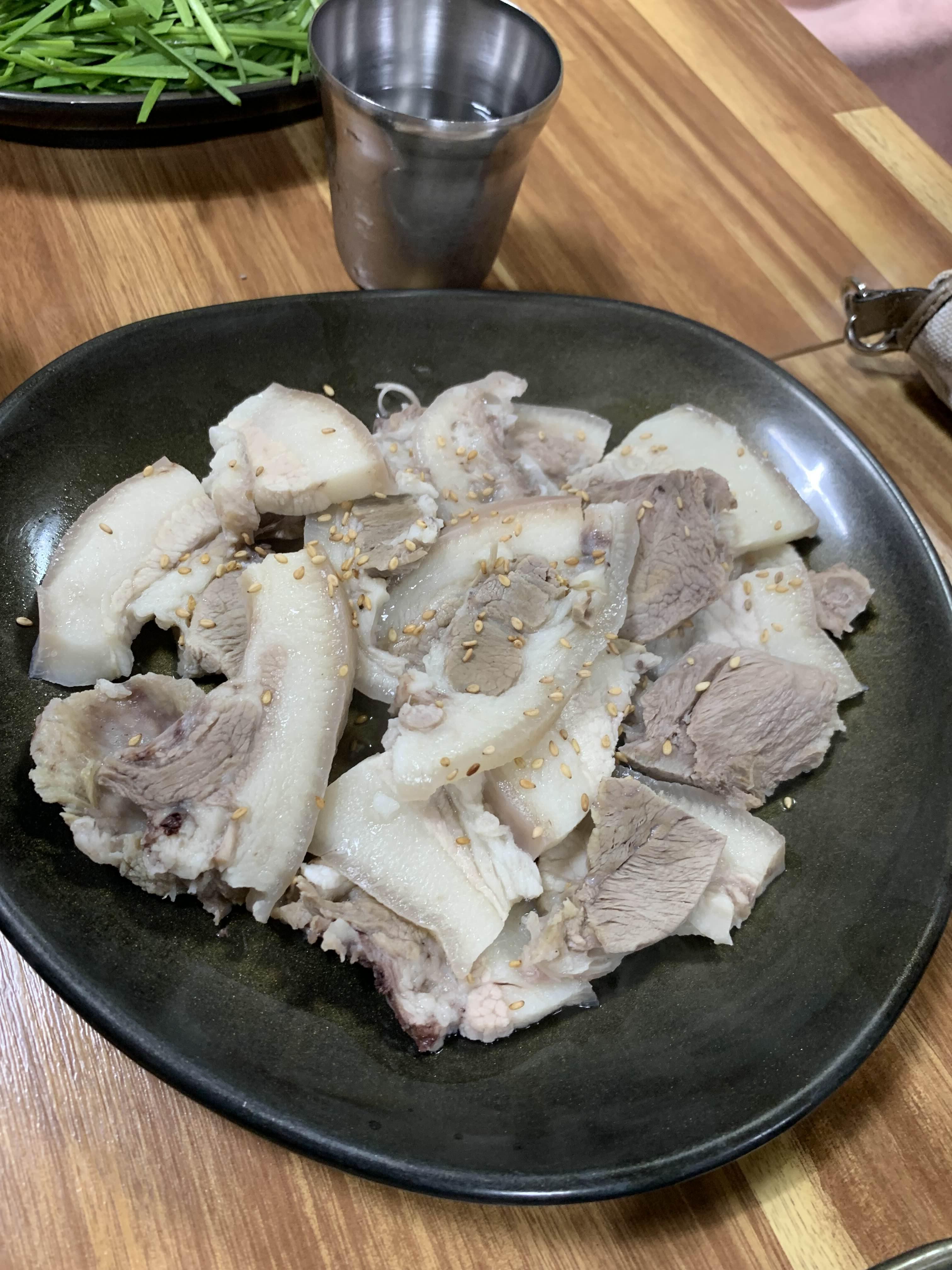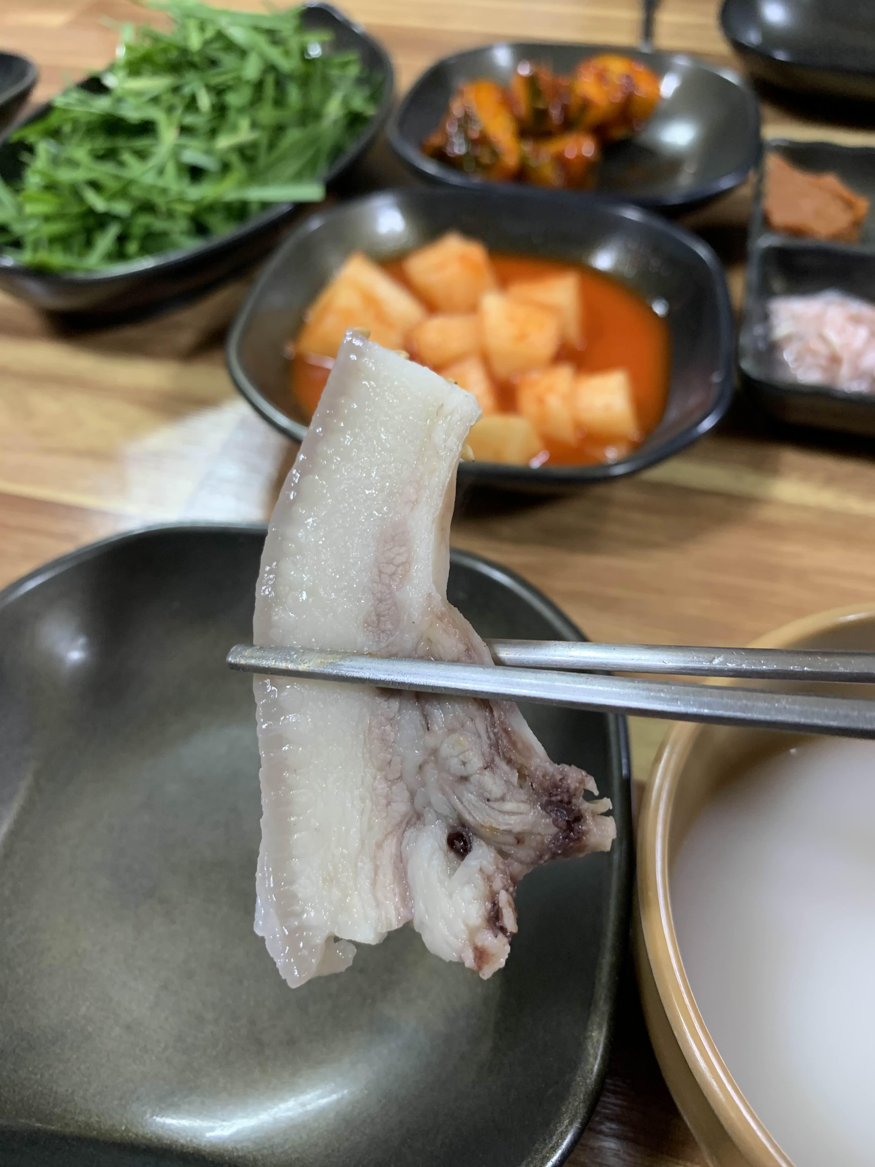 그리고.. 머리 고기가 나오는데... 머리고기는 비계 부분이 많은 부분으로 나오더군요.