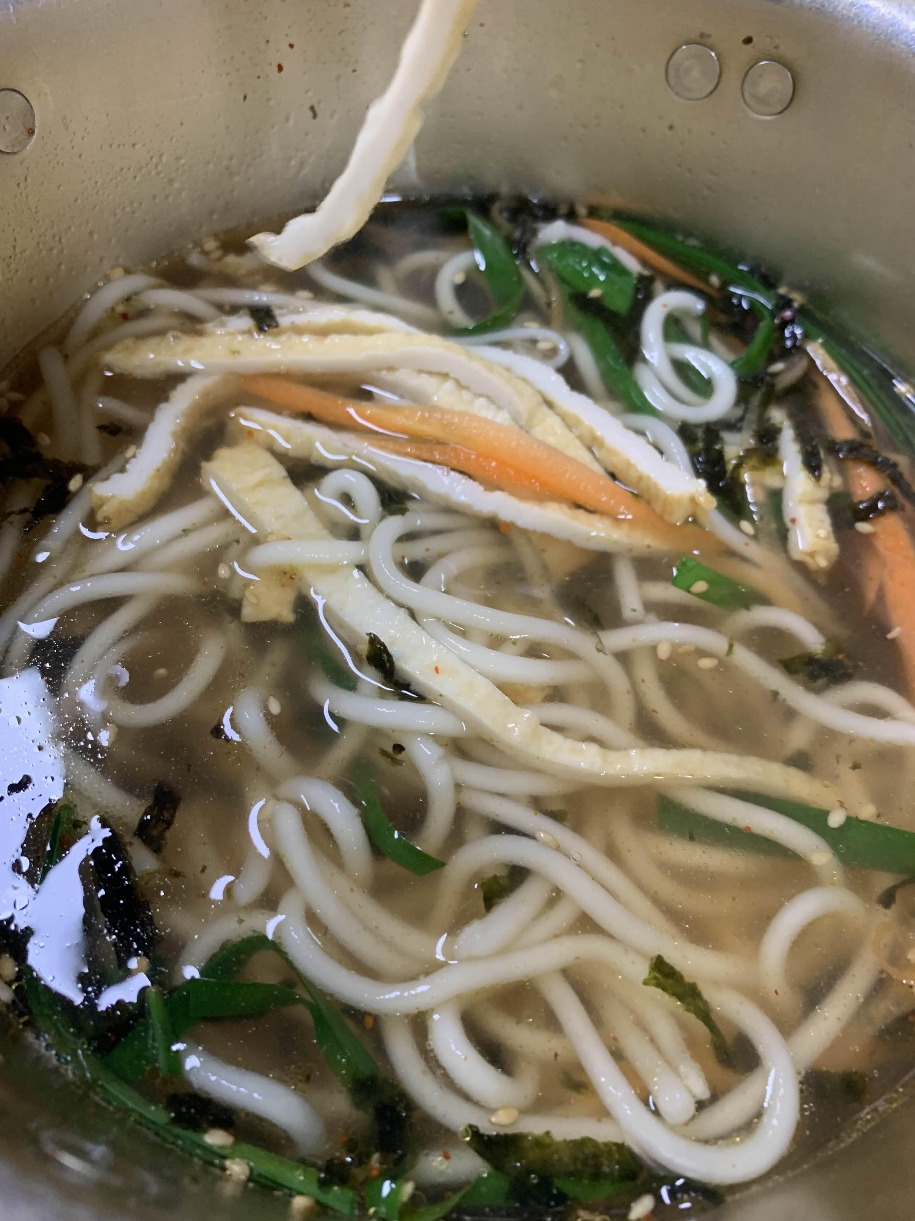 아이들이 맛볼! 냄비가락국수가 나왔습니다.