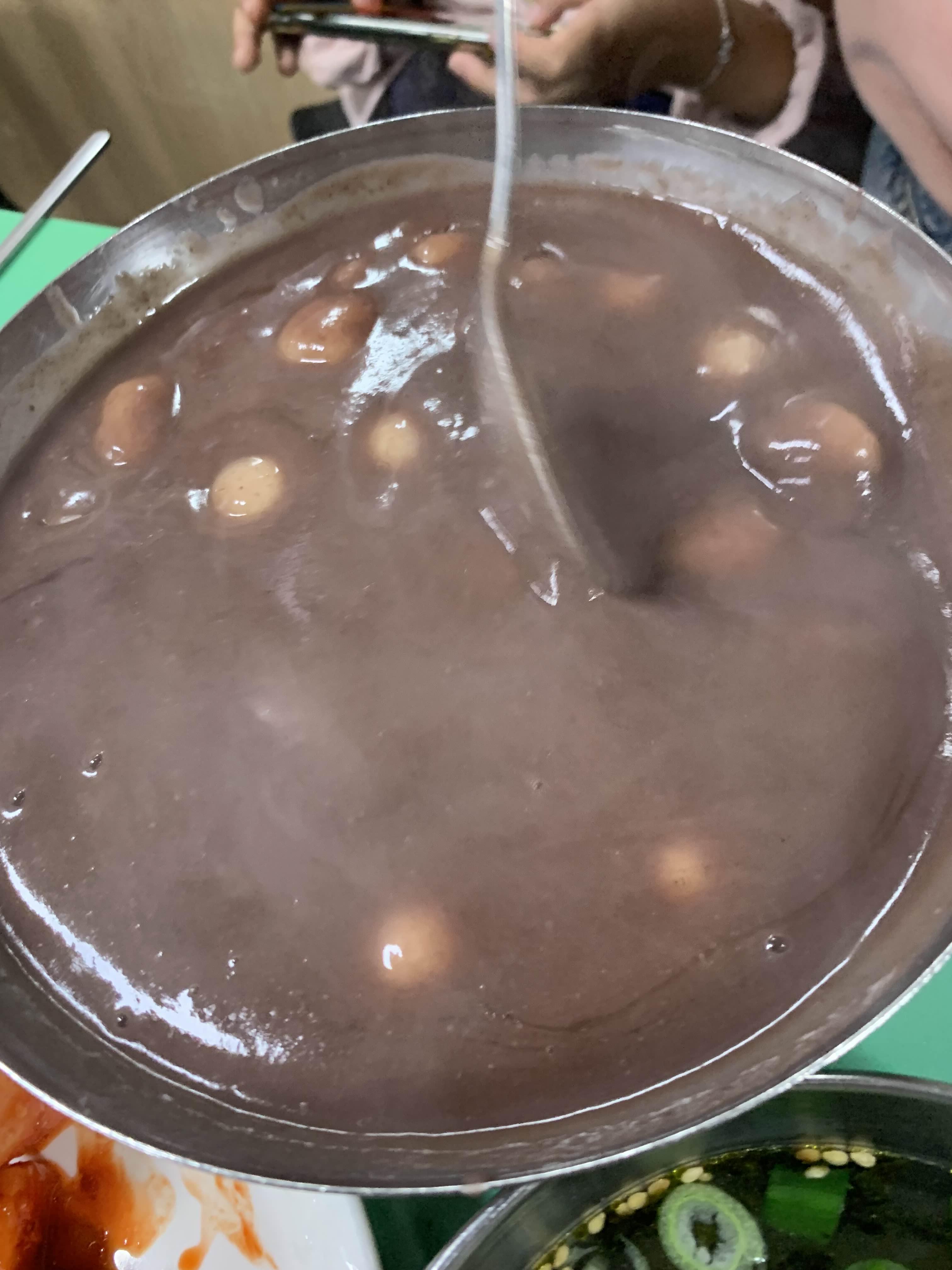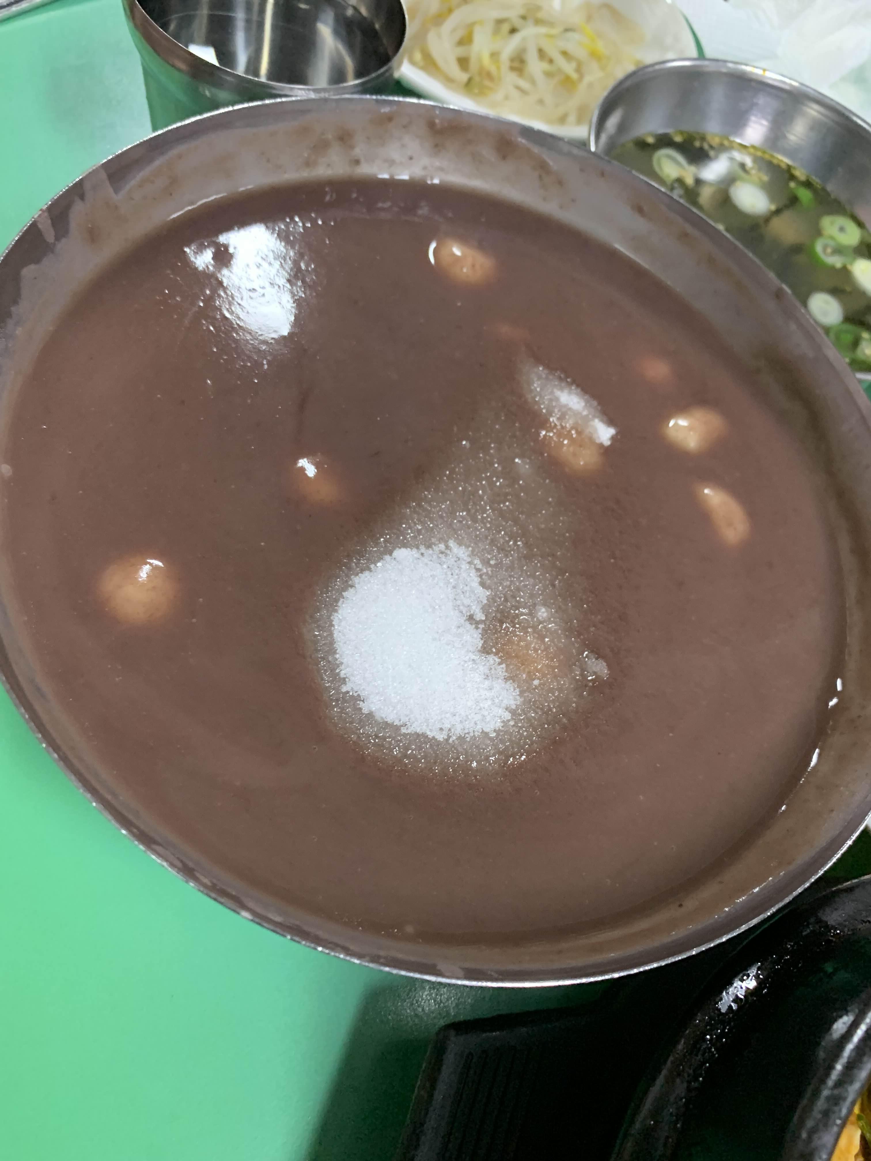 팥새알 죽은..... 설탕을 듬뿍 넣어서... 맛보기 좋음!