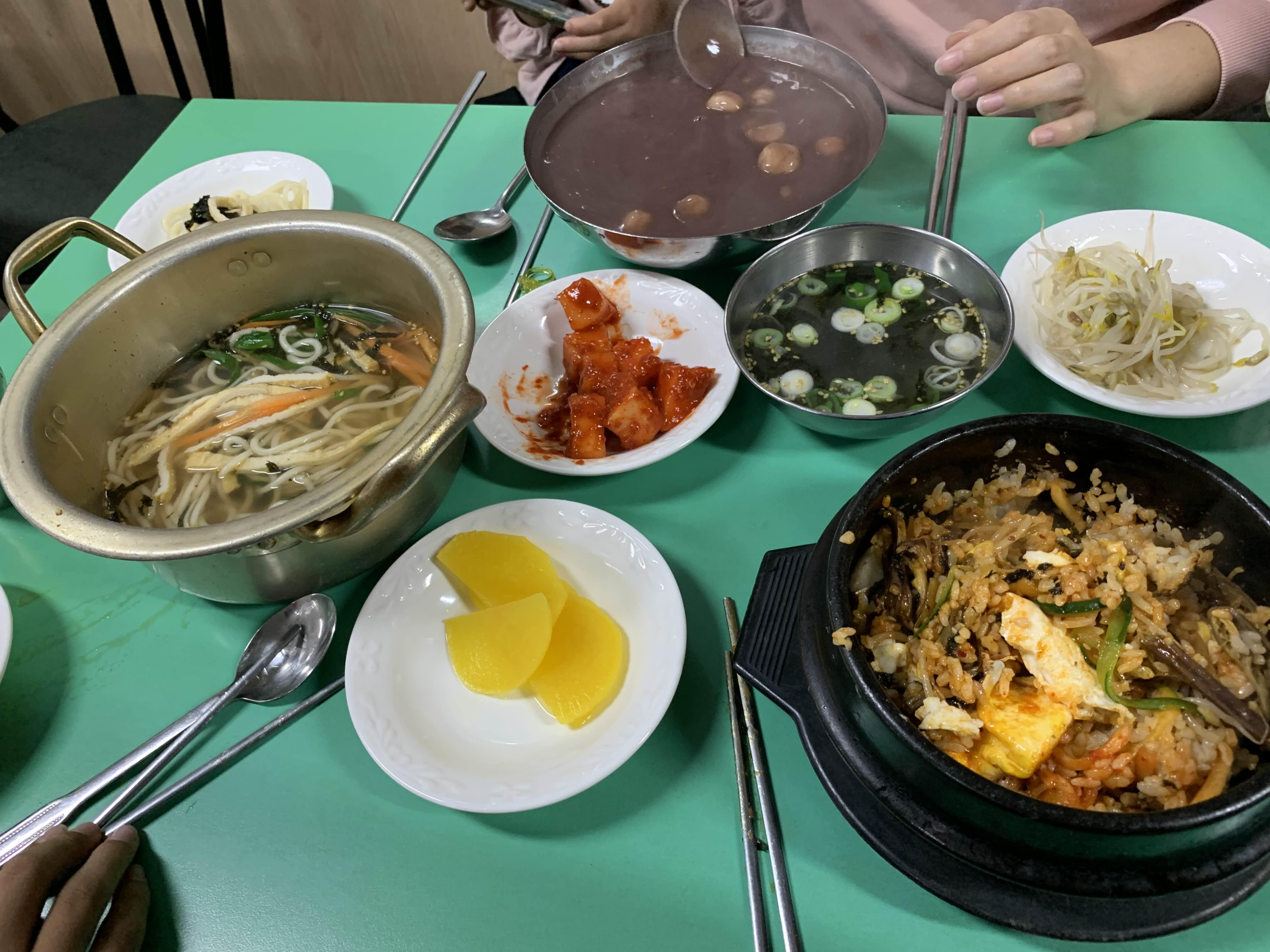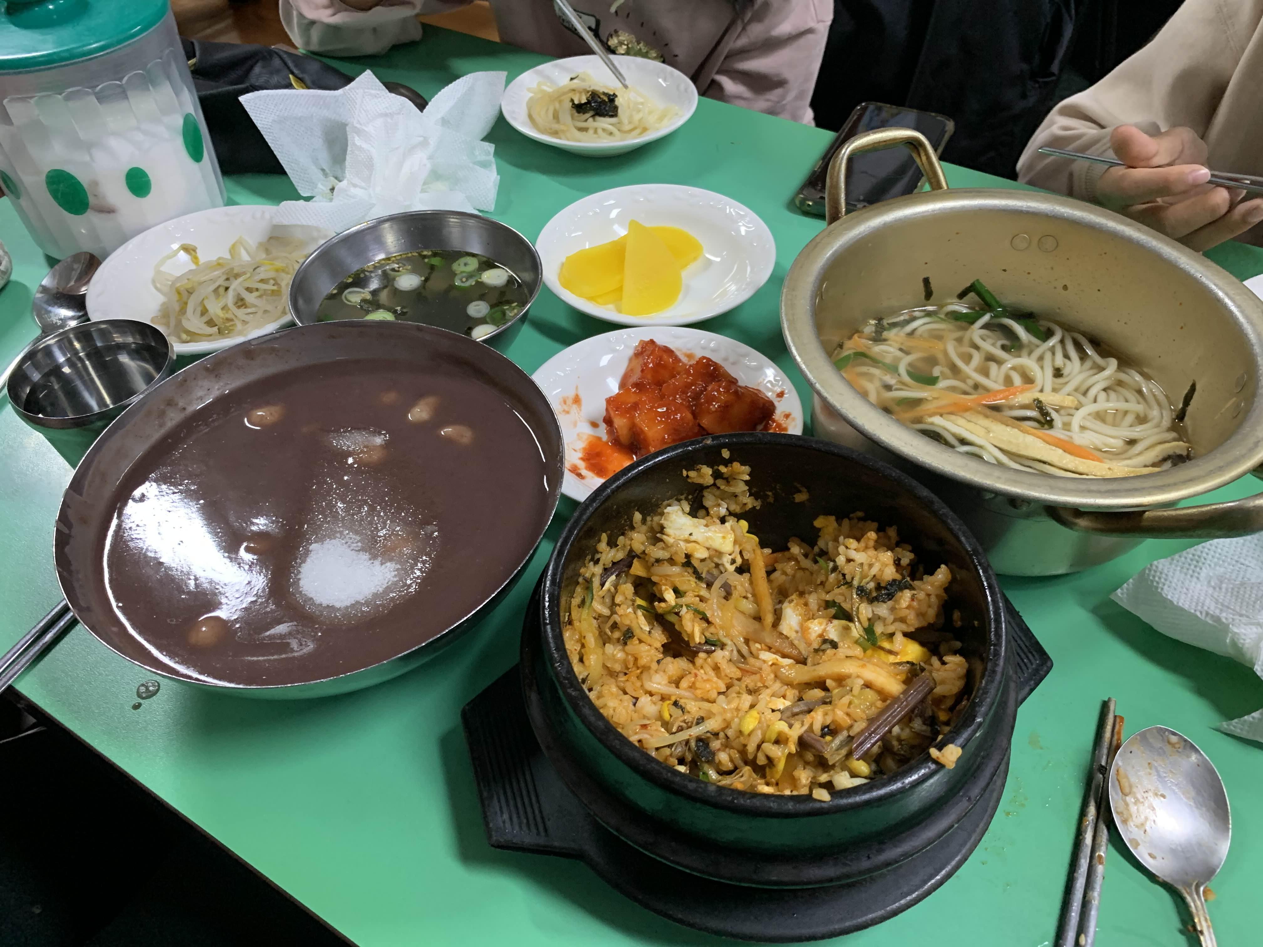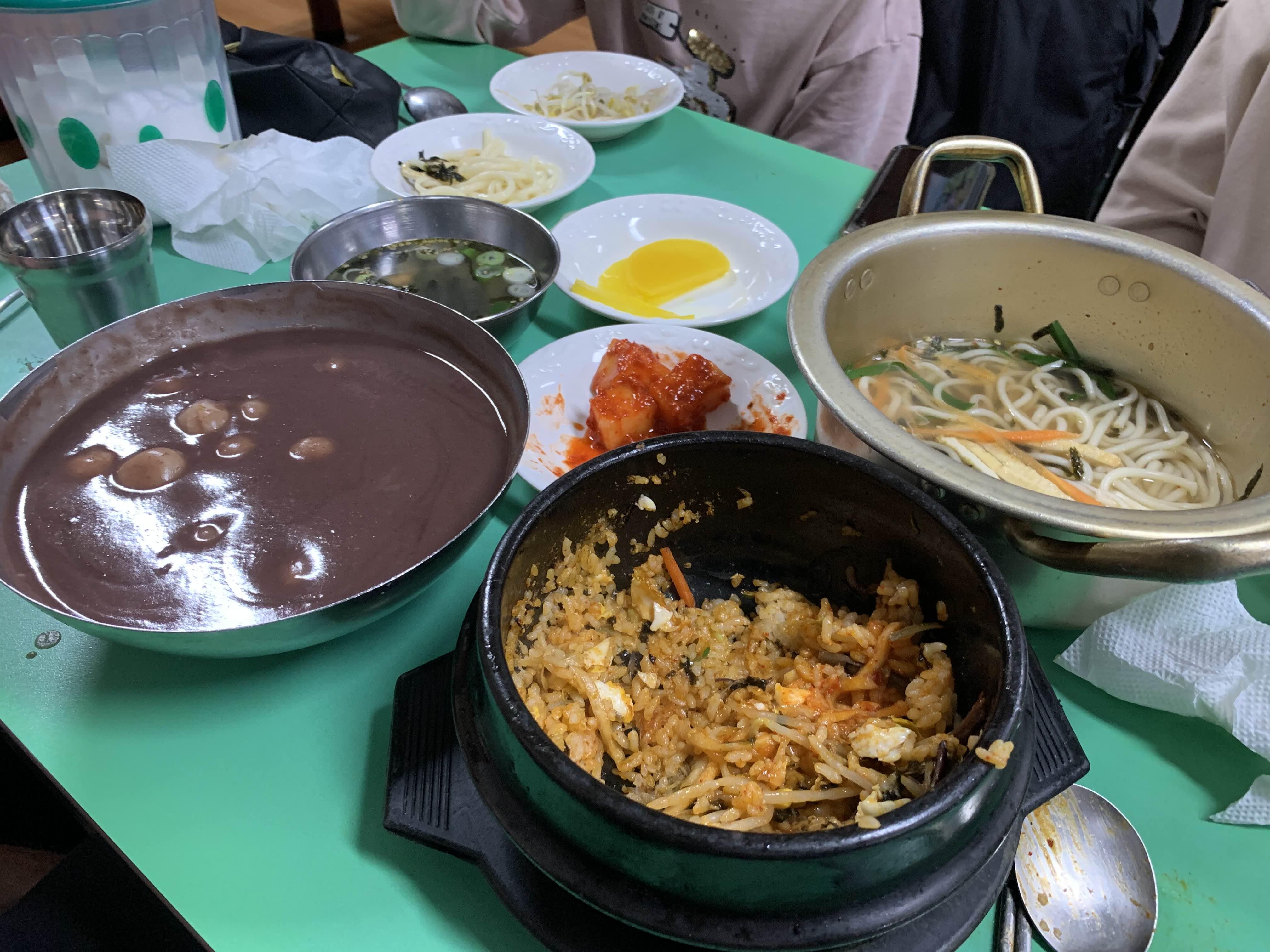 팥새알죽, 냄비가락국수, 돌솥비빔밥 하나씩 주문해 보았습니다.