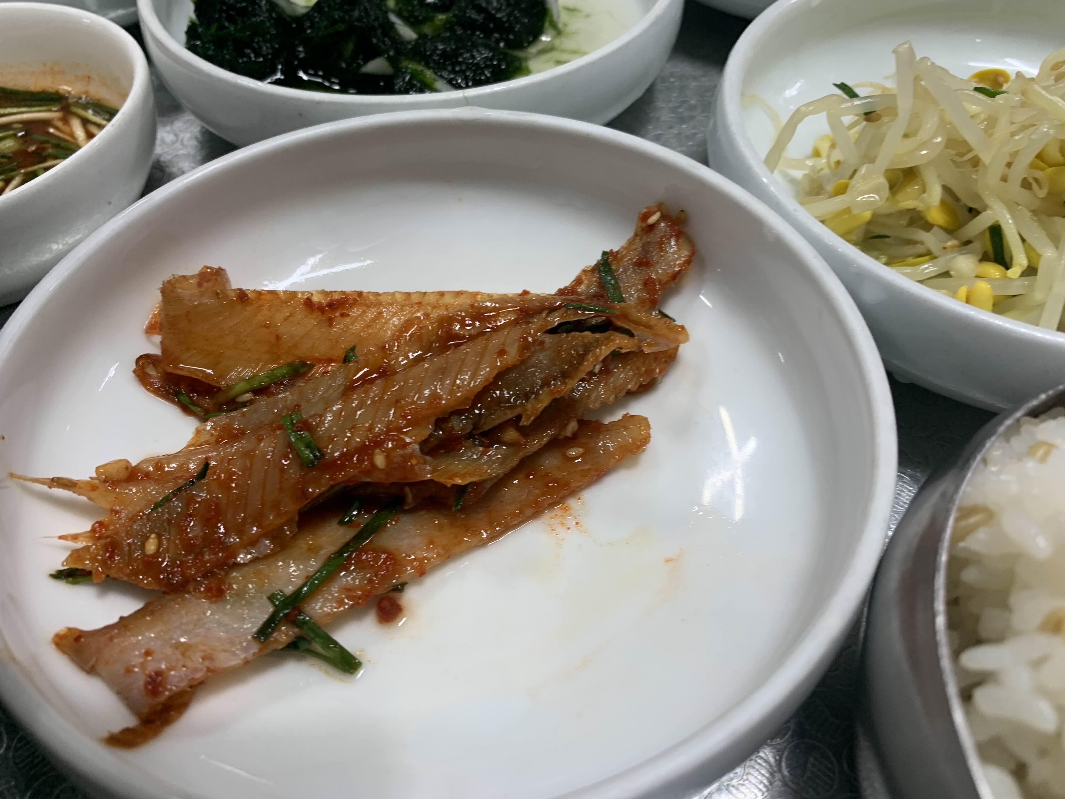 그리고 생선무침.... 앗! 여수와 같이 바닷가지역에서 나오는 백반 반찬... 맛이 좋음!