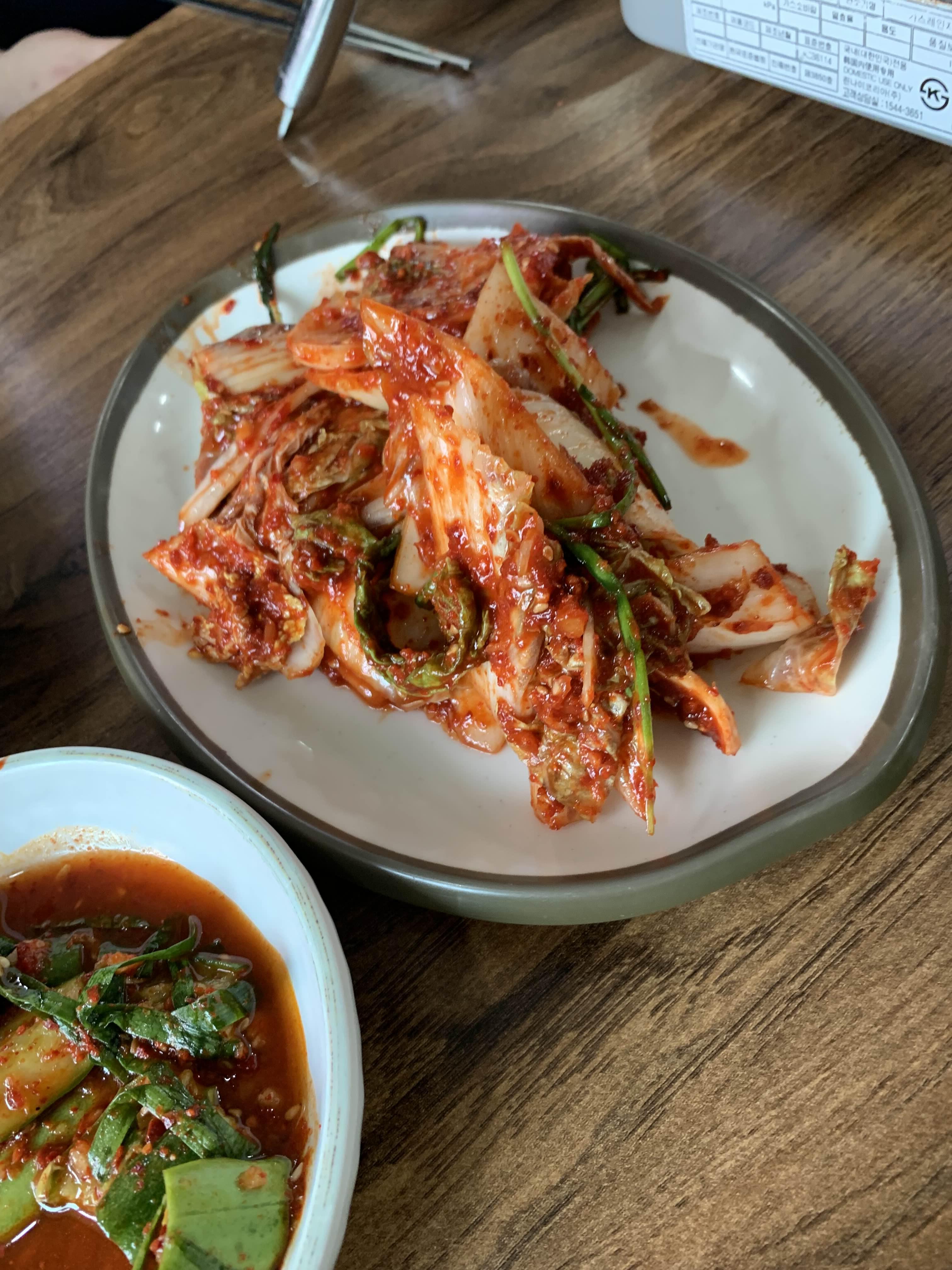 밑반찬으로 배치김치 겉절이가 나오는데 상당히 맛있어 보인다. 먹어보니... 비주얼과 동일하게 맛이 좋다.