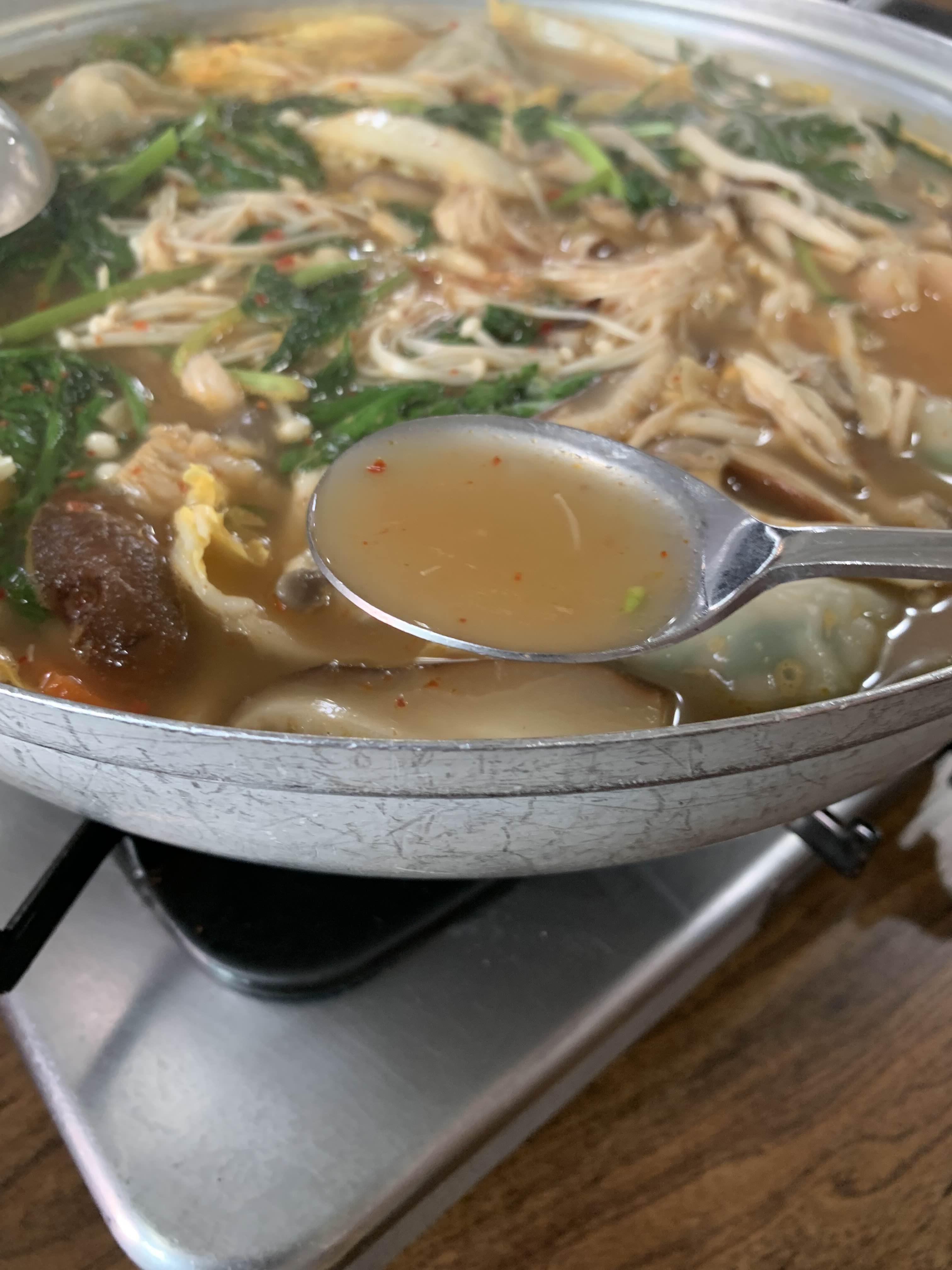 고기만두에서는 담백함이 배가 되었다면.. 김치만두는 개운함을 추가해 주는데... 2가지의 국물맛을 하나의 냄비에서 맛볼 수 있는...ㅎㅎ
