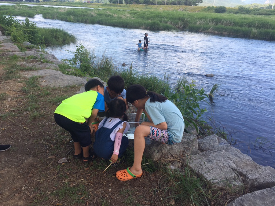 잡은 물고기를 한참을 구경하는 아이들이네요. 중간에 배고프다고 간식이 먹고 싶다던 큰아이;;;; 먹을 거 준비를 안 해왔는데... 근처 하나로마트에서 아이들 과자, 우유, 빵과 편의점에서 라면을 구입해서 배달까지 해주었네요. 내 부모님이 이야기했으면 귀찮다고... 식당 가서 밥 먹자고 이야기하며 안 갔을 거 갔은데, 내 자식이 이야기하니.. 바로 다녀오게 되네요;;; 부모님에게 잘 해드려야겠네요.^^