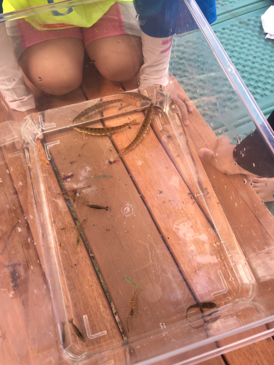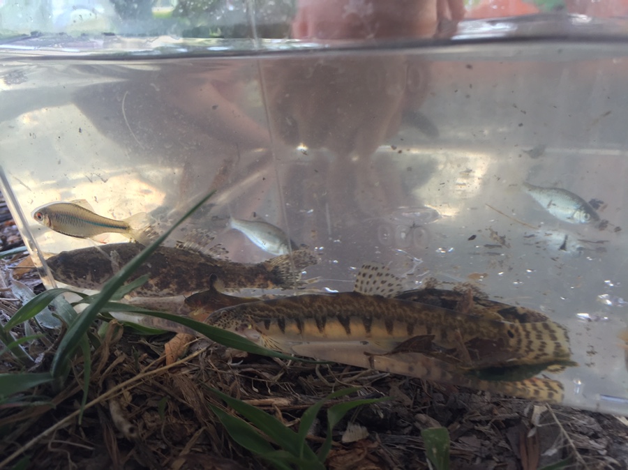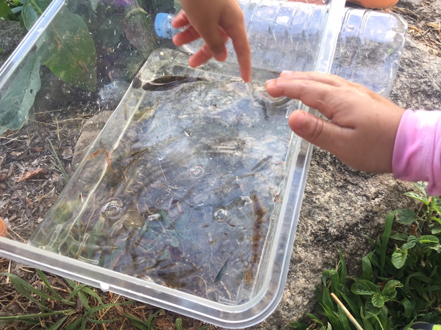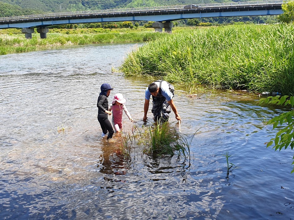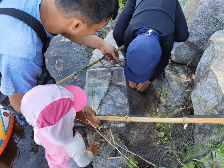 아이들은 고기를 몰고 저는 족대를 해보았네요. 어렸을 때 족대질을 많이 해보았는데.... 족대질은 풀 속이나 코너에서 하는 건데... 고산천 물이 많이 불어나서 족대질이 잘 되지는 않았습니다. 처음으로 잡혔던 새우와 미꾸라지^^ 아이가 가장 좋아하네요. 처음에는 손으로 만지지도 못했던 아이가 어느새 미꾸라지를 손으로 잡아 어항의 넣기까지 하네요. 그리고 깨끗한 물에서는 구경할 수 있는 쏘가리도 2마리 잡았습니다. 너무 작은 쏘가리지만 다양한 어종을 잡을 수 있어서 더욱 좋았네요.