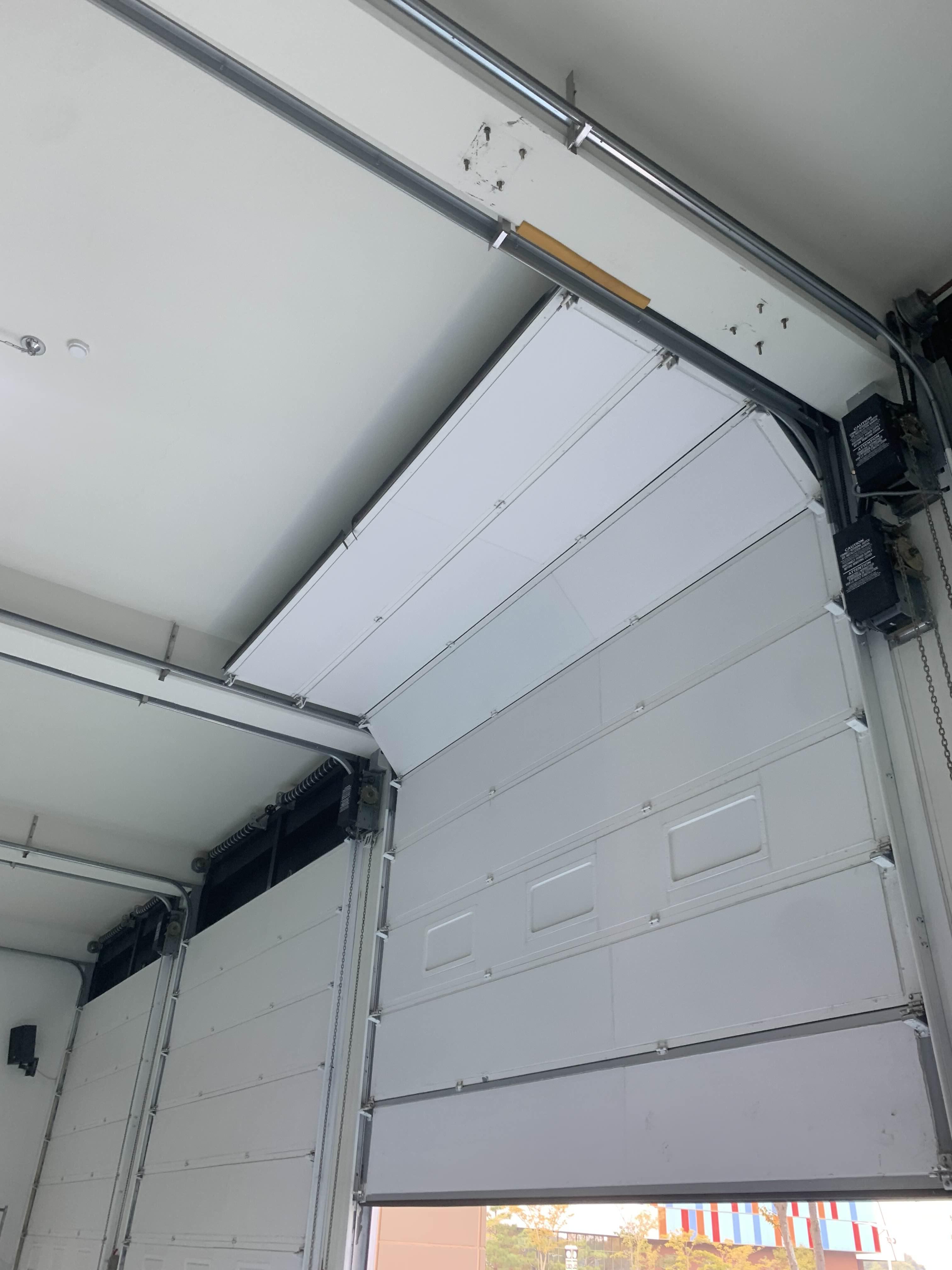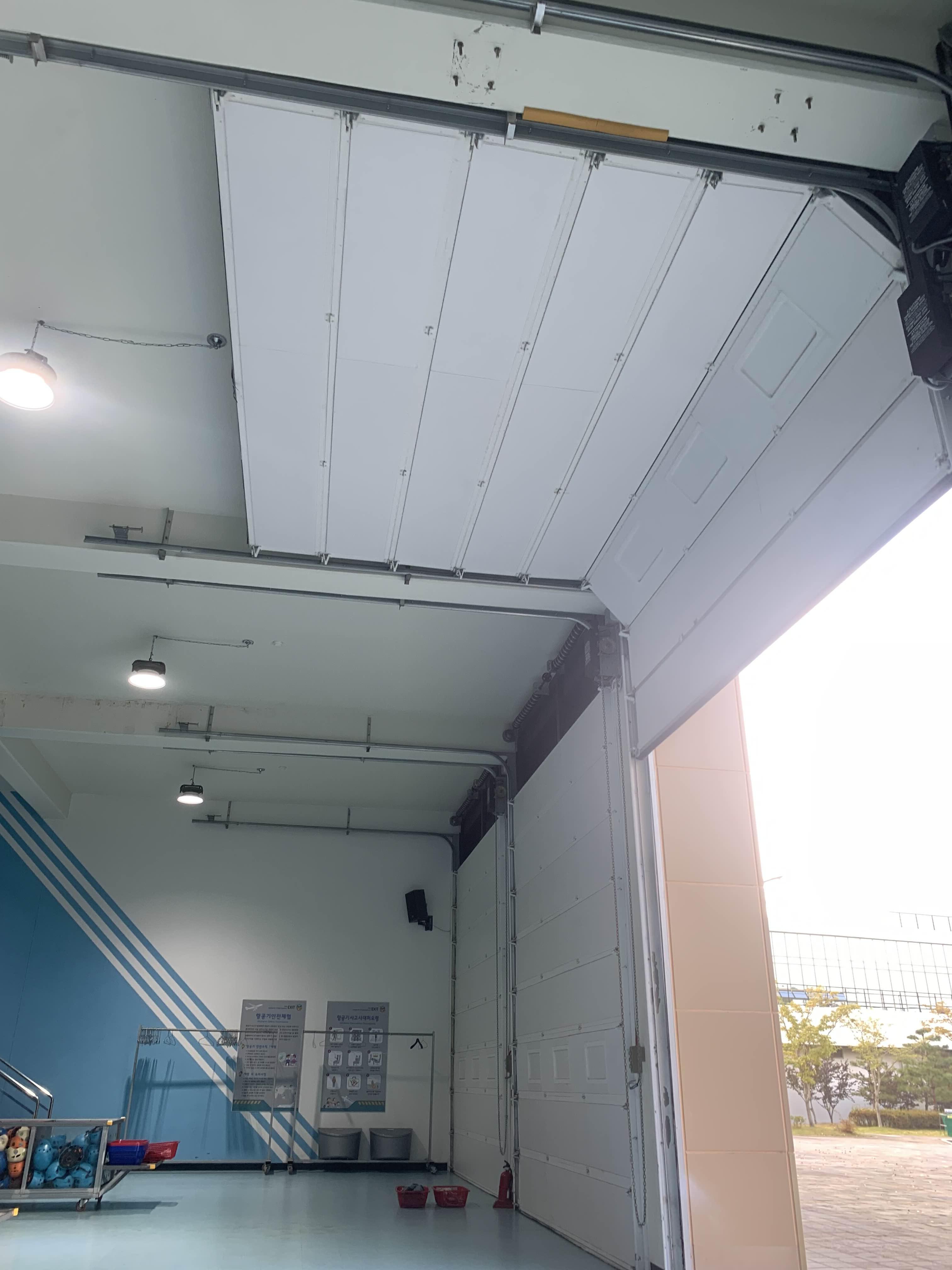 셔터의 패널이 천정 위쪽으로 올라가 고정되어... 셔터부위의 상당히 넓은 공간이 확보되어...