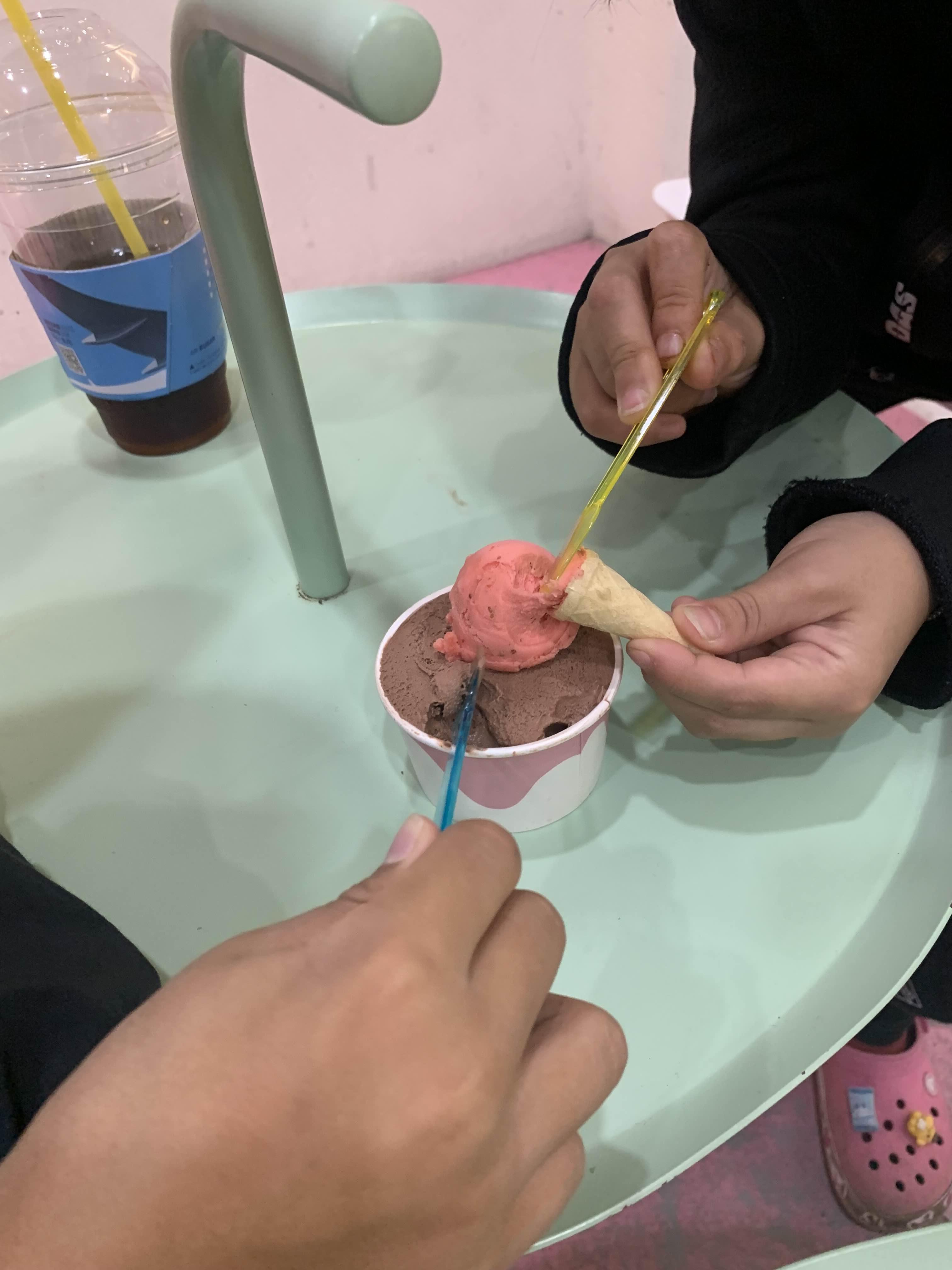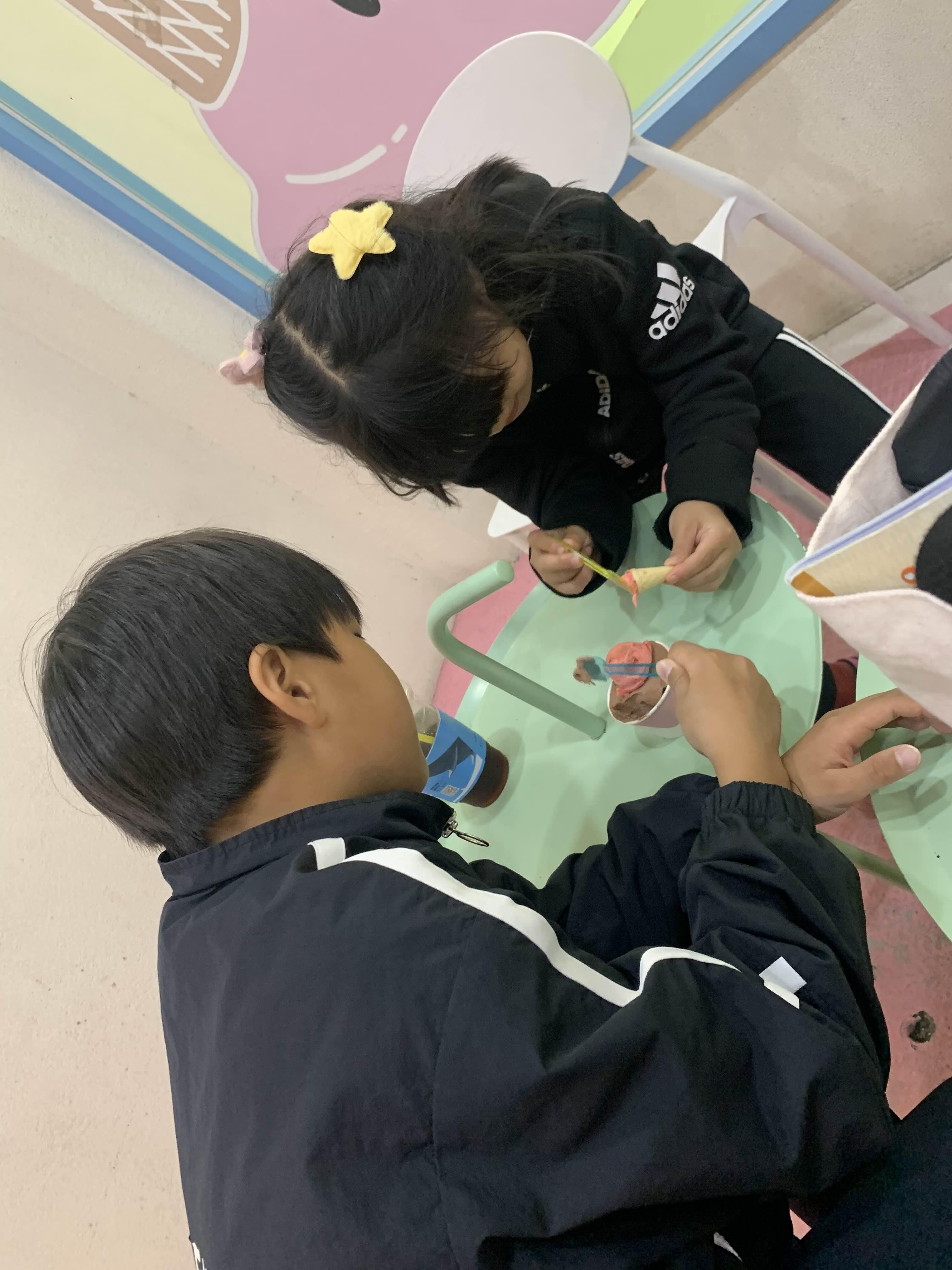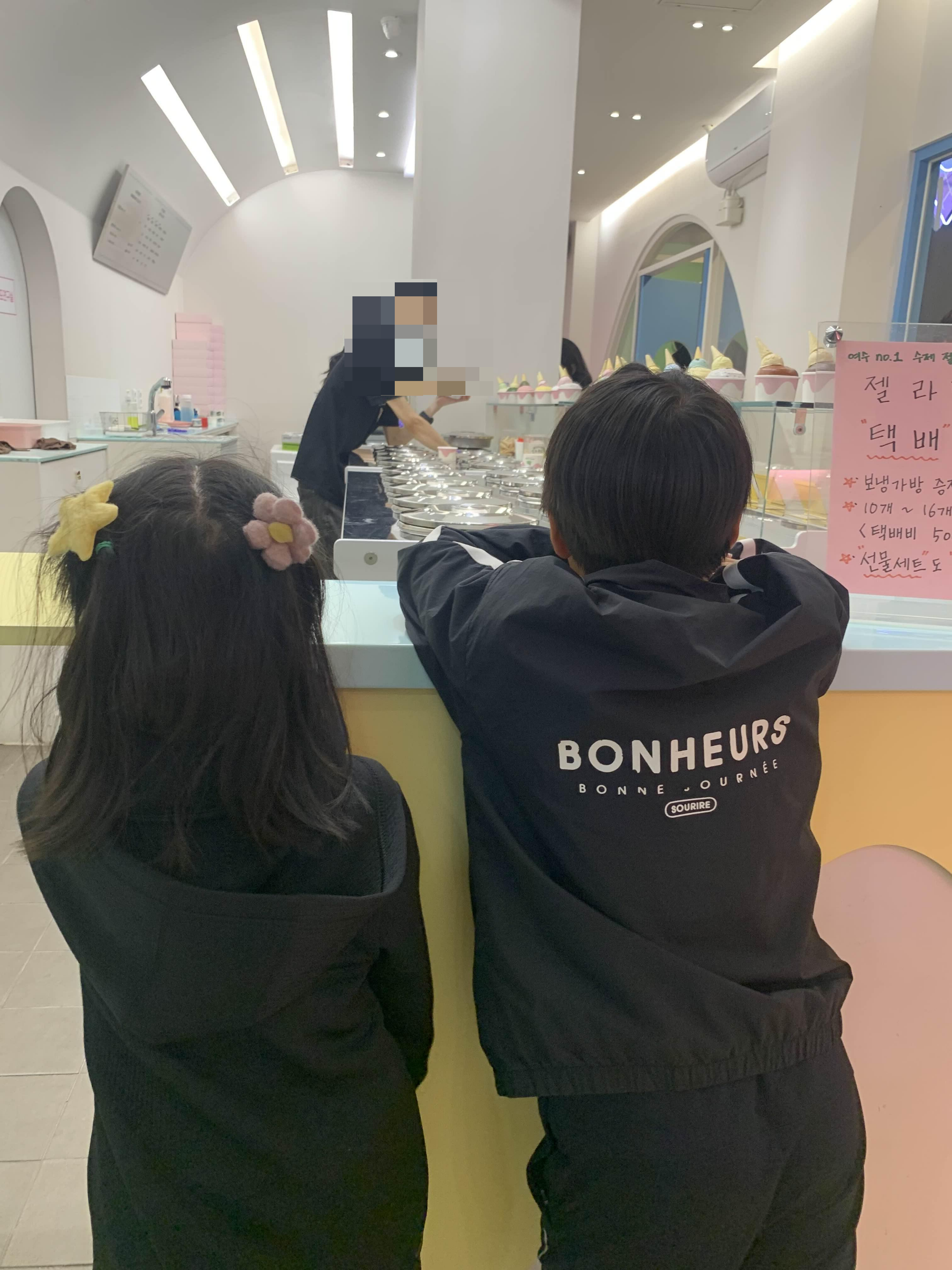 아이스크림 매장 입구에 도착하니.... 이미 많은 아이들이 아이스크림을 먹고 있었다.