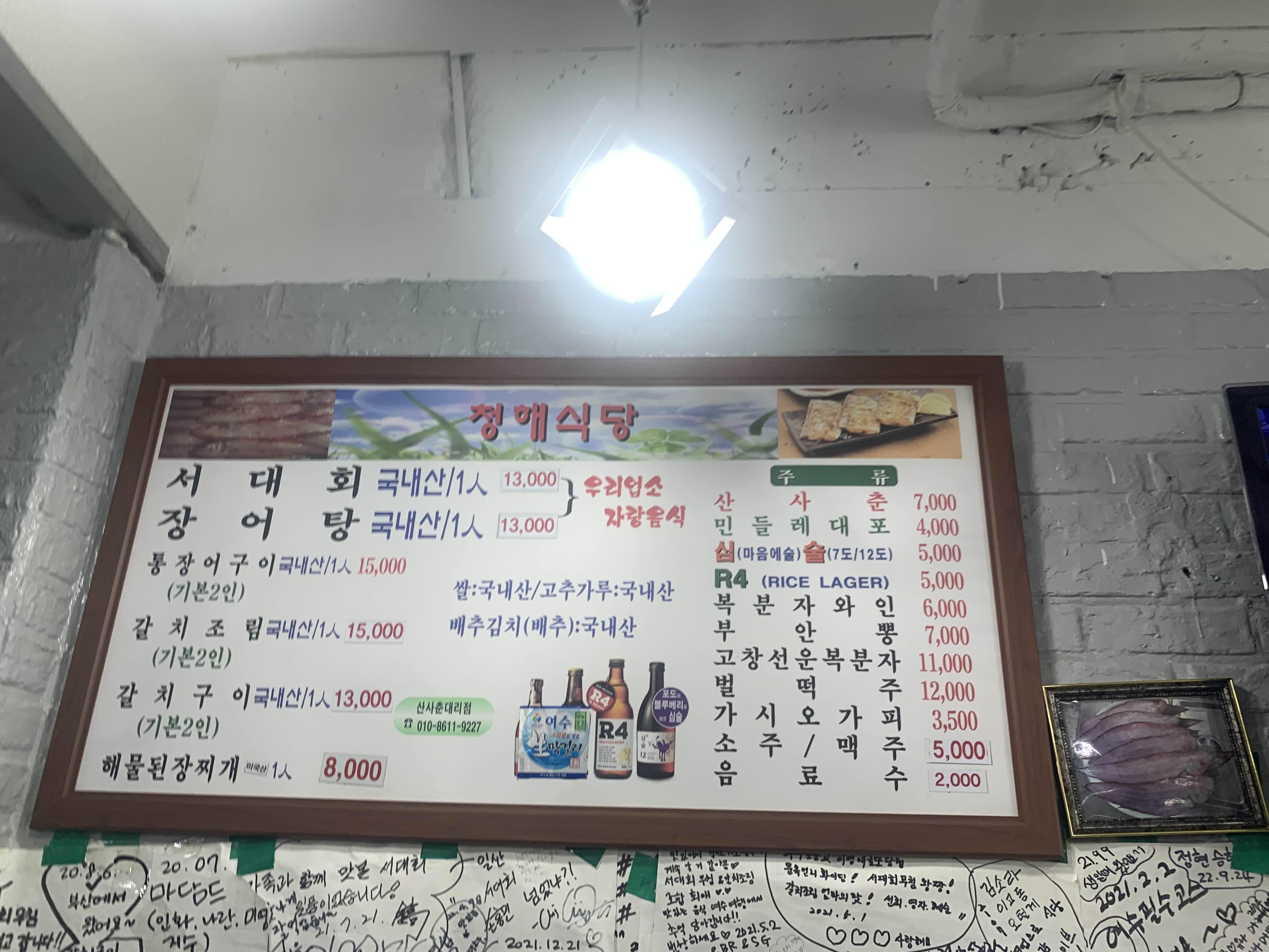 서대회와 장어탕이 괜찮다고 추천을!