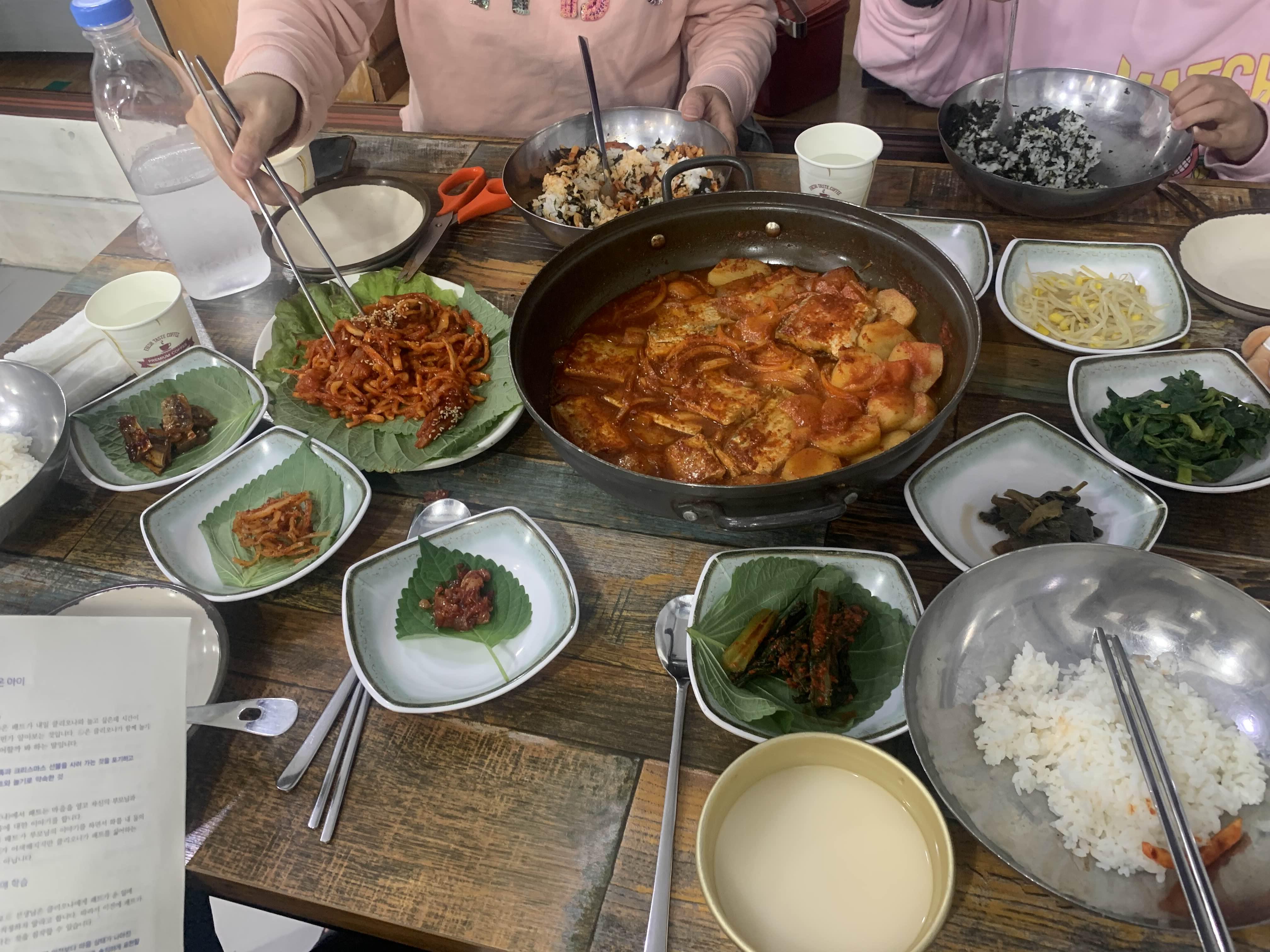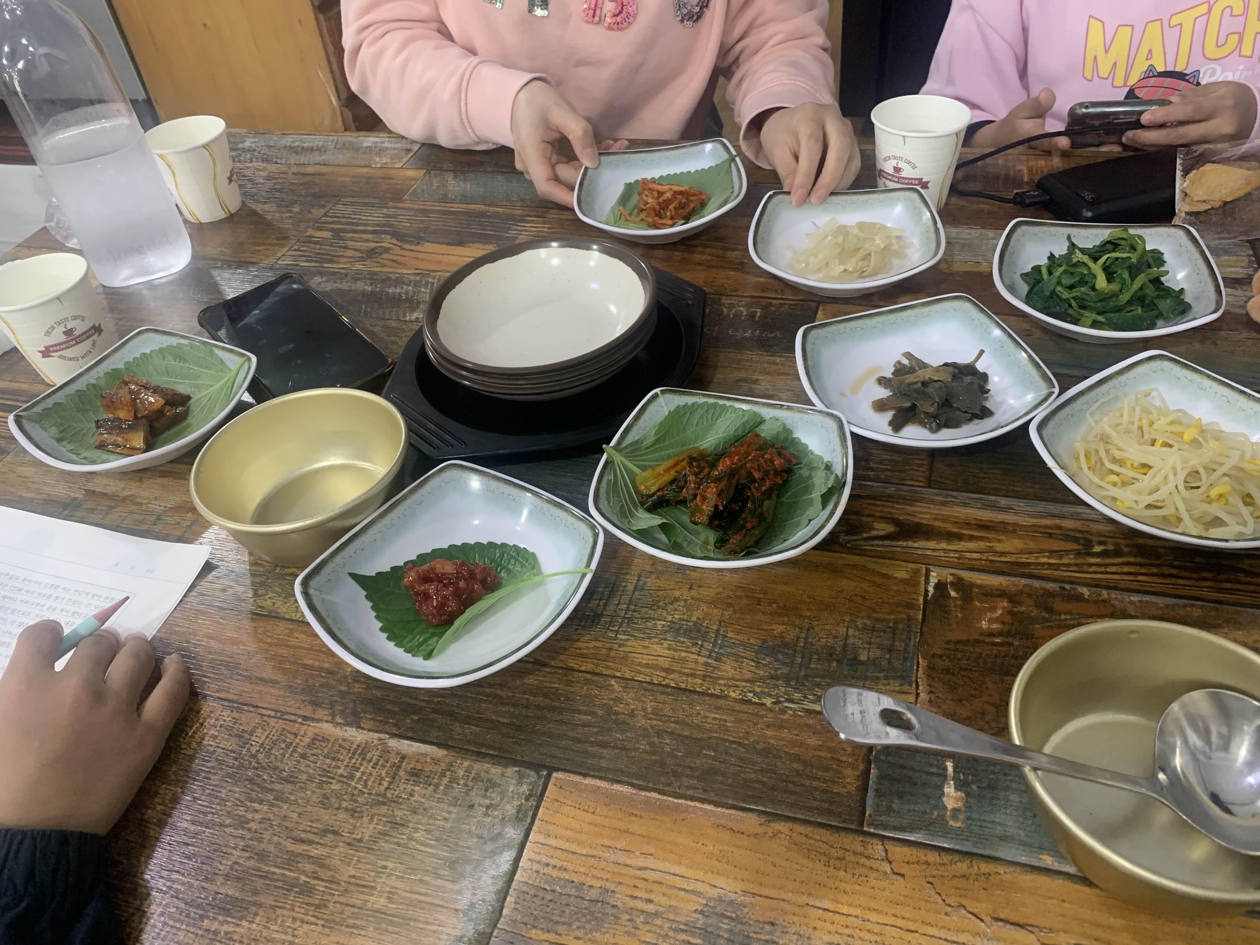 음식을 주문하면 기본반찬 8가지 세팅!