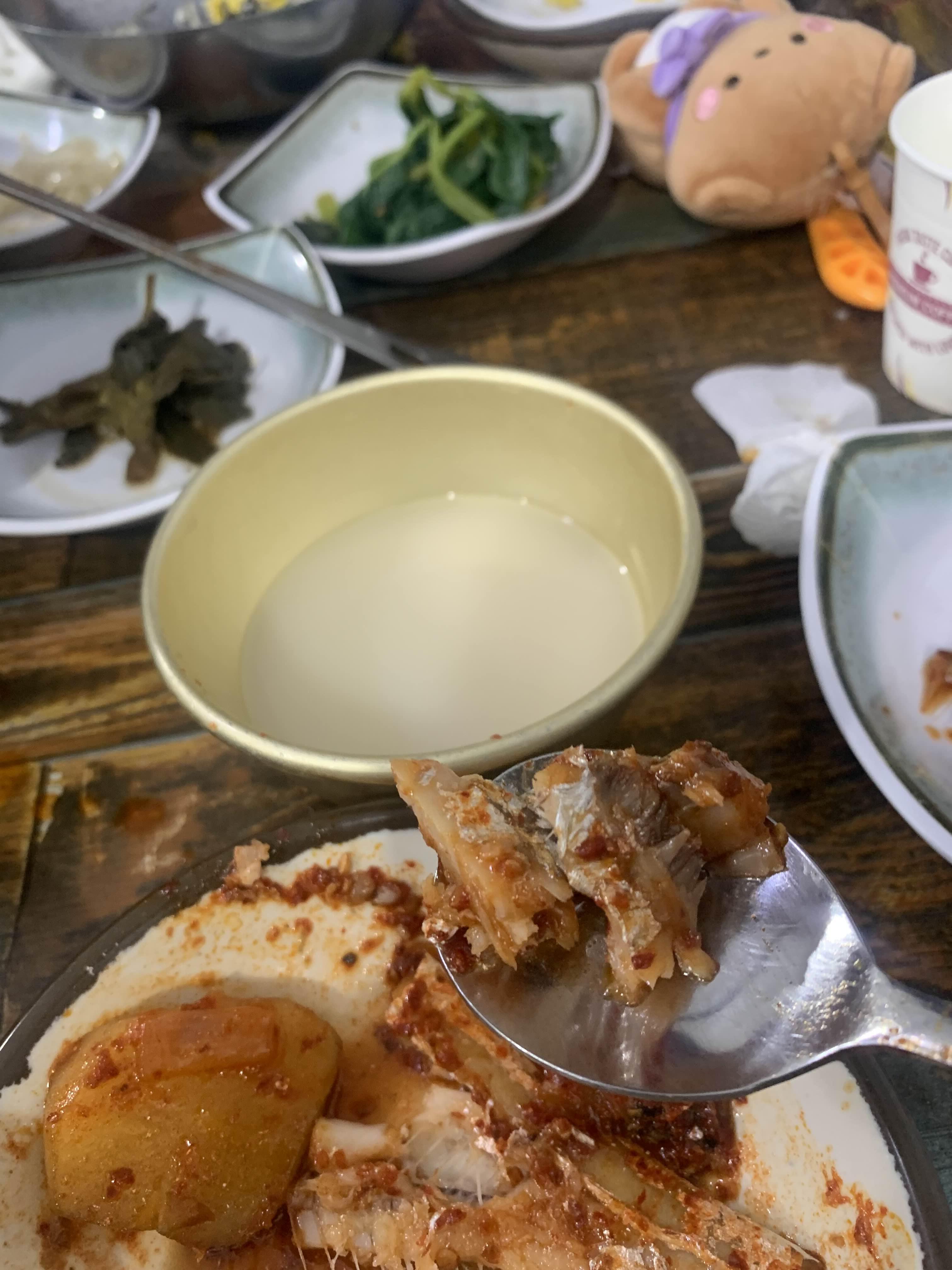 내가 먹기에도 까시가 있어서..ㅎㅎ 까시 부분을 잘게 씹은 다음;; 꿀꺽!