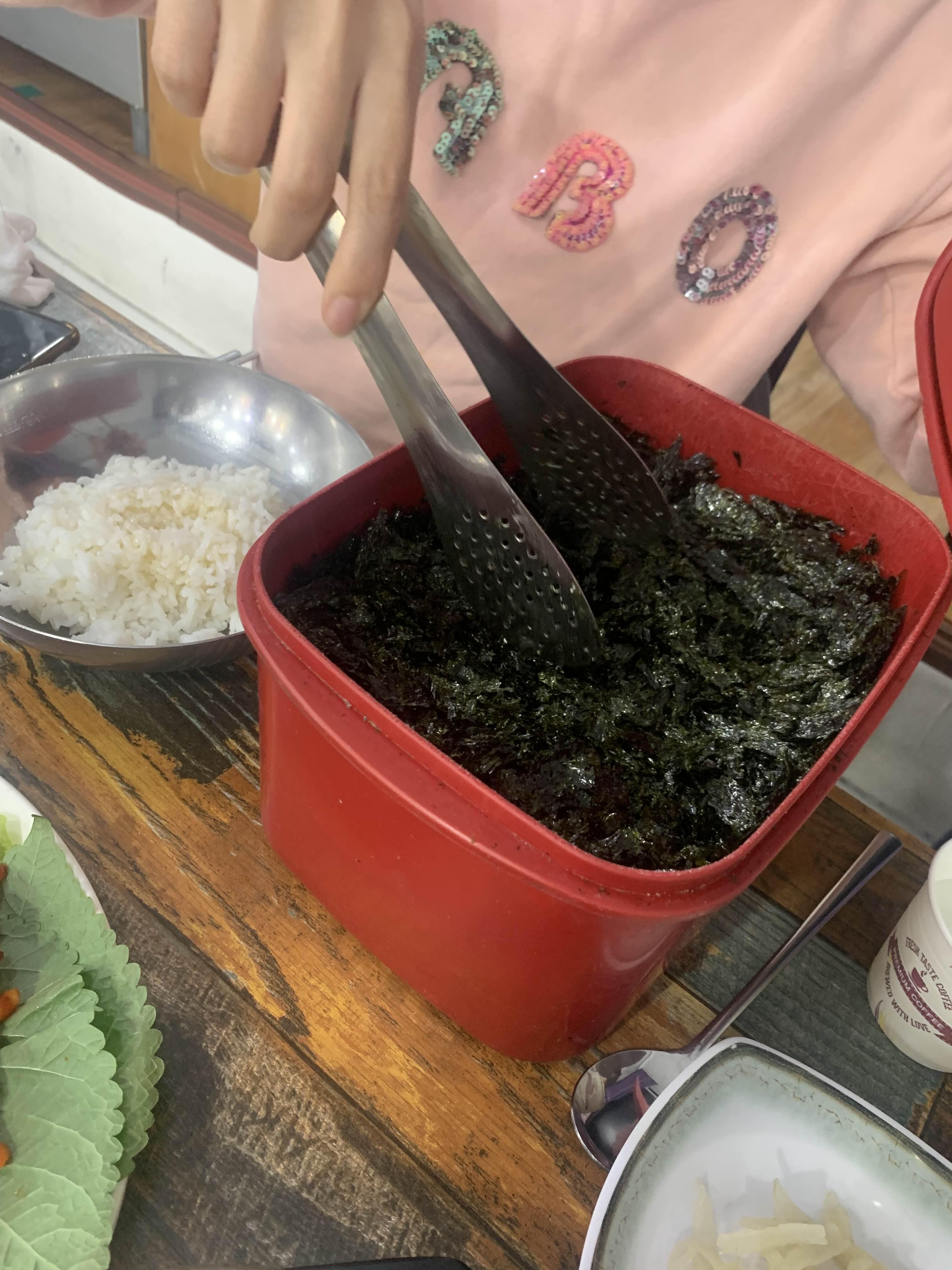 서대회는 밥과 비벼 먹는 게 맛있다고 해주시는데... 비비기 전! 김과 밥을 함께 먹어도 상당히 맛이 좋더군요.