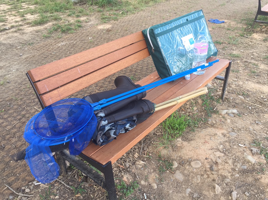 고산천에 오후 1시경 도착했을 때 텐트와 식사를 준비해온 사람들이 여럿 보였네요. 우리 가족은 식사보다는 물고기 잡기가 주 목적이어서 메트와 물고기 잡이용 족대 그리고 이번에 구입한 가슴장화입니다. 고산천이 생각보다 수심이 깊어서 일반 장화를 신고 들어가면 장화 속으로 물이 쏘옥~~ 들어오죠^^ 처음 착용해보는 가슴장화인데... 생각보다 좋았습니다.ㅎㅎ