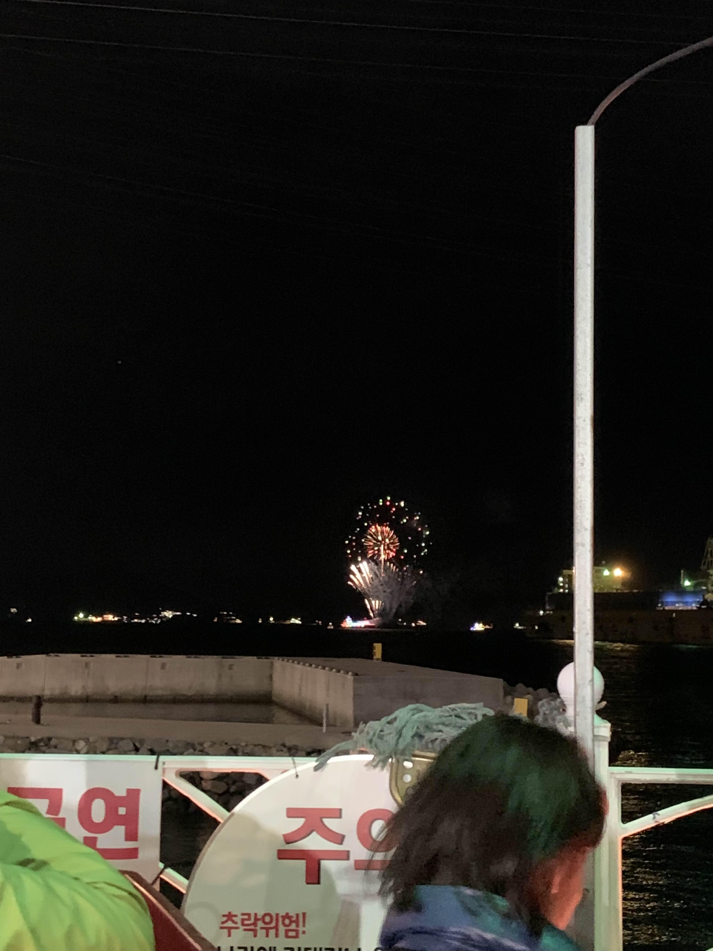 대략 8시인가? 그쯤, 오동도 방향에서 폭죽이 행사를 진행하더군요.
