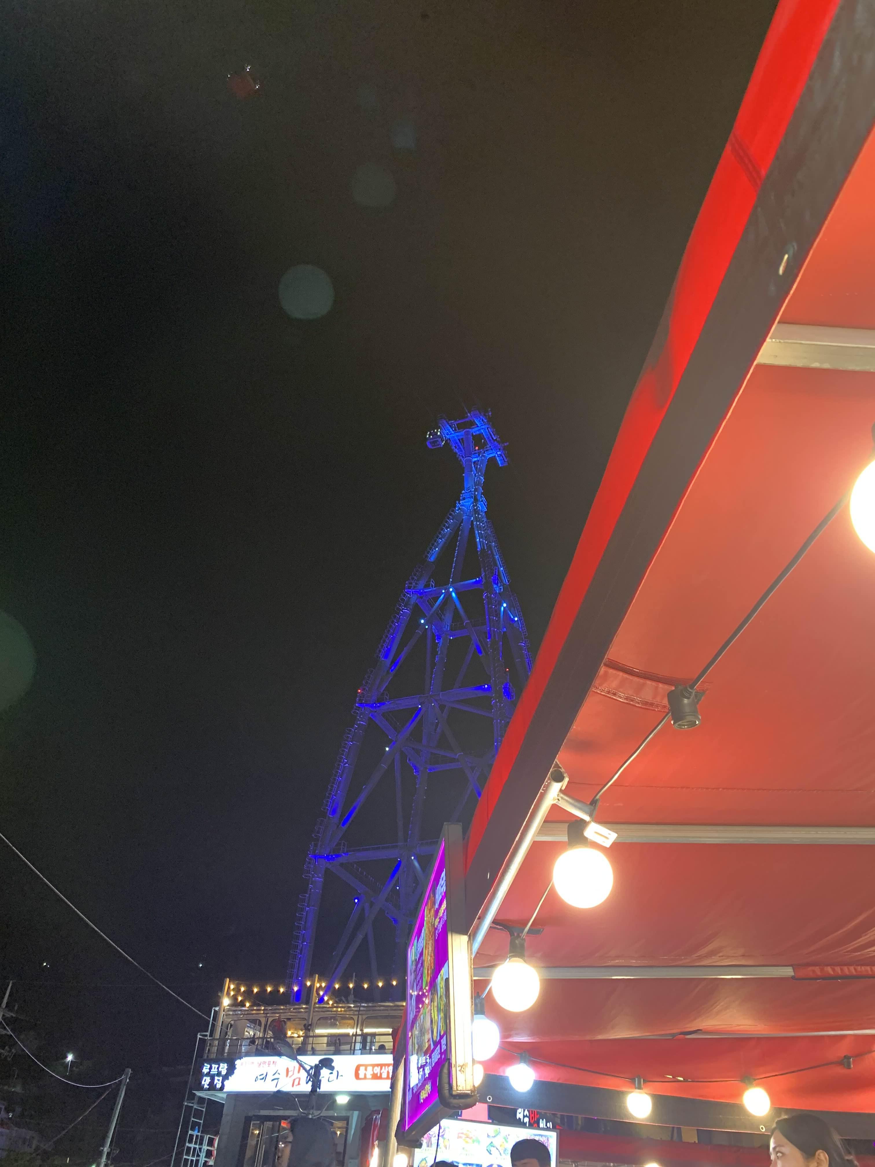 낭만포차 위로 여수 해상케이블이 이동하는 게 보이는데.... 꽤 낭만적인 분위기를 만들어 내더군요.