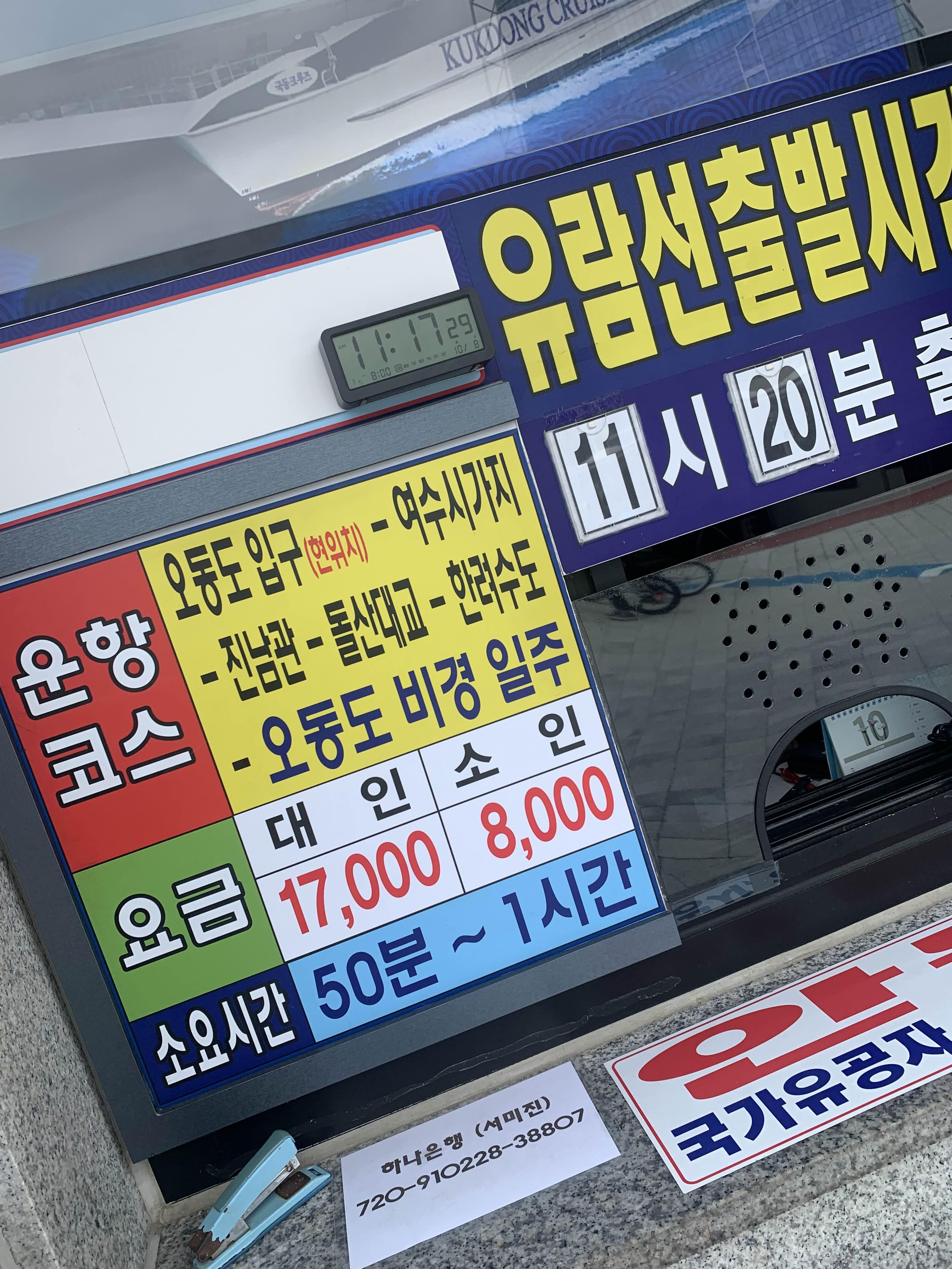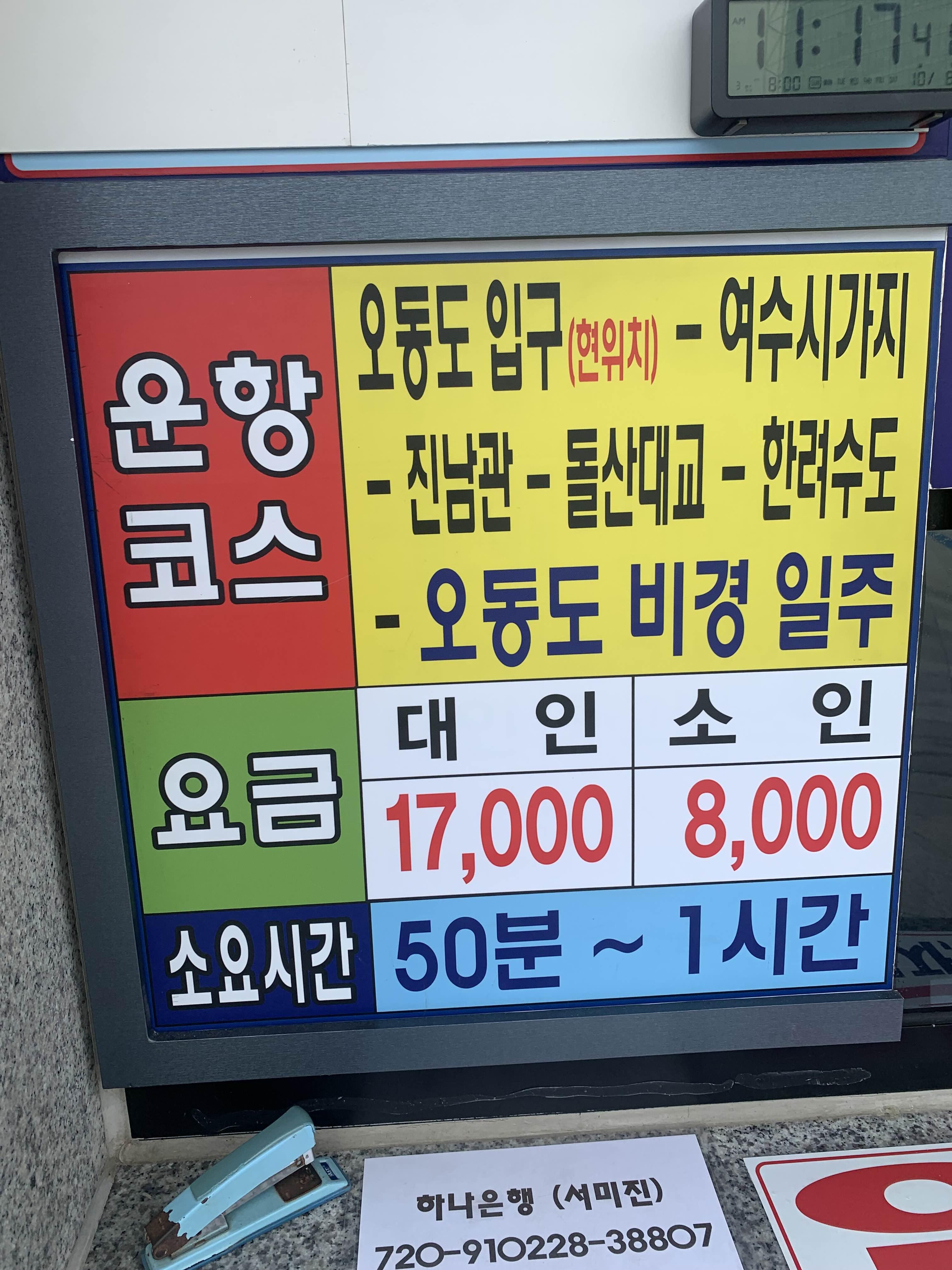 가격은 성인 17,000원, 소인 8,000원으로.... 돌산대교를 돌고 오는 코스로 운영하더군요.