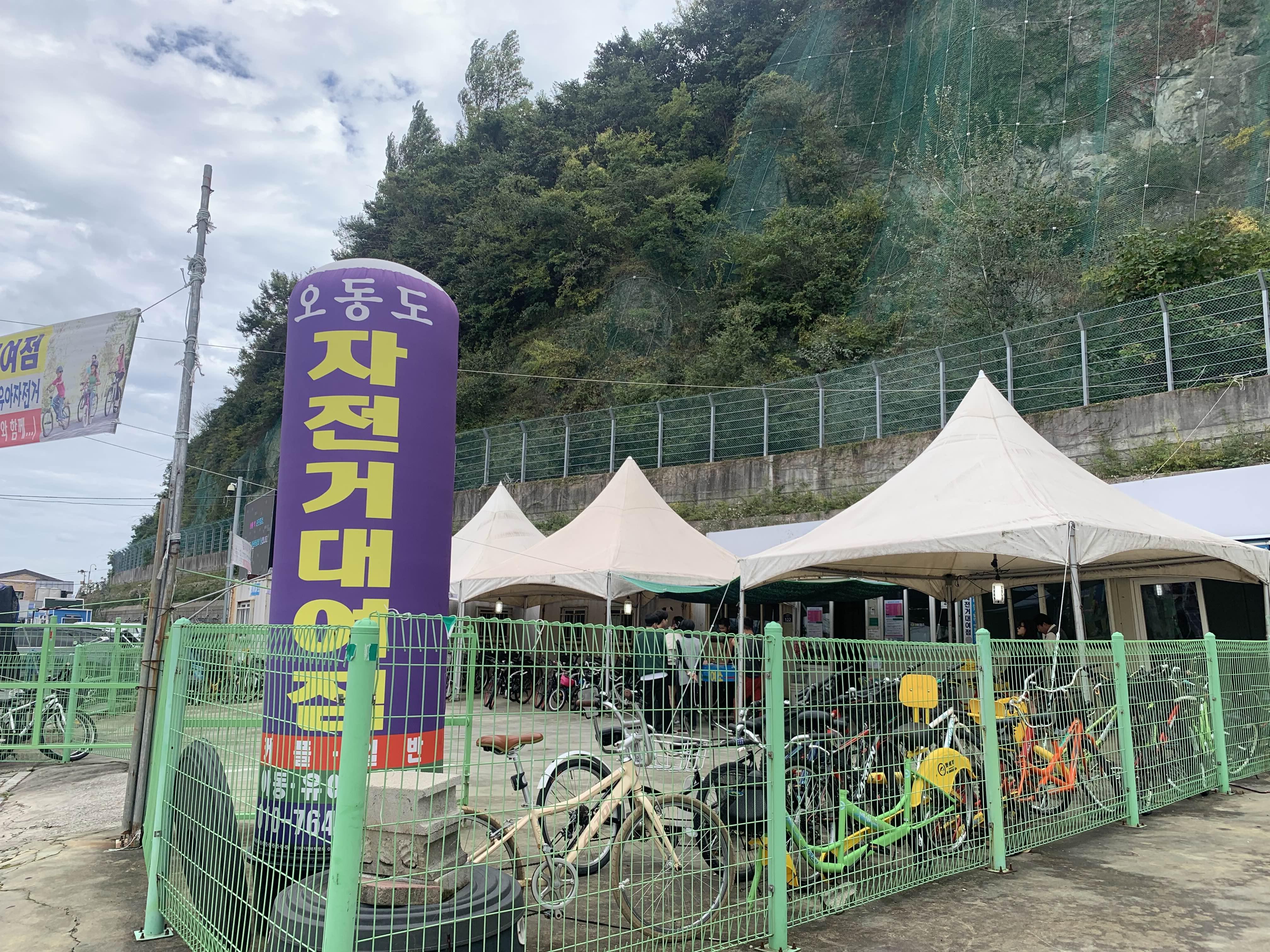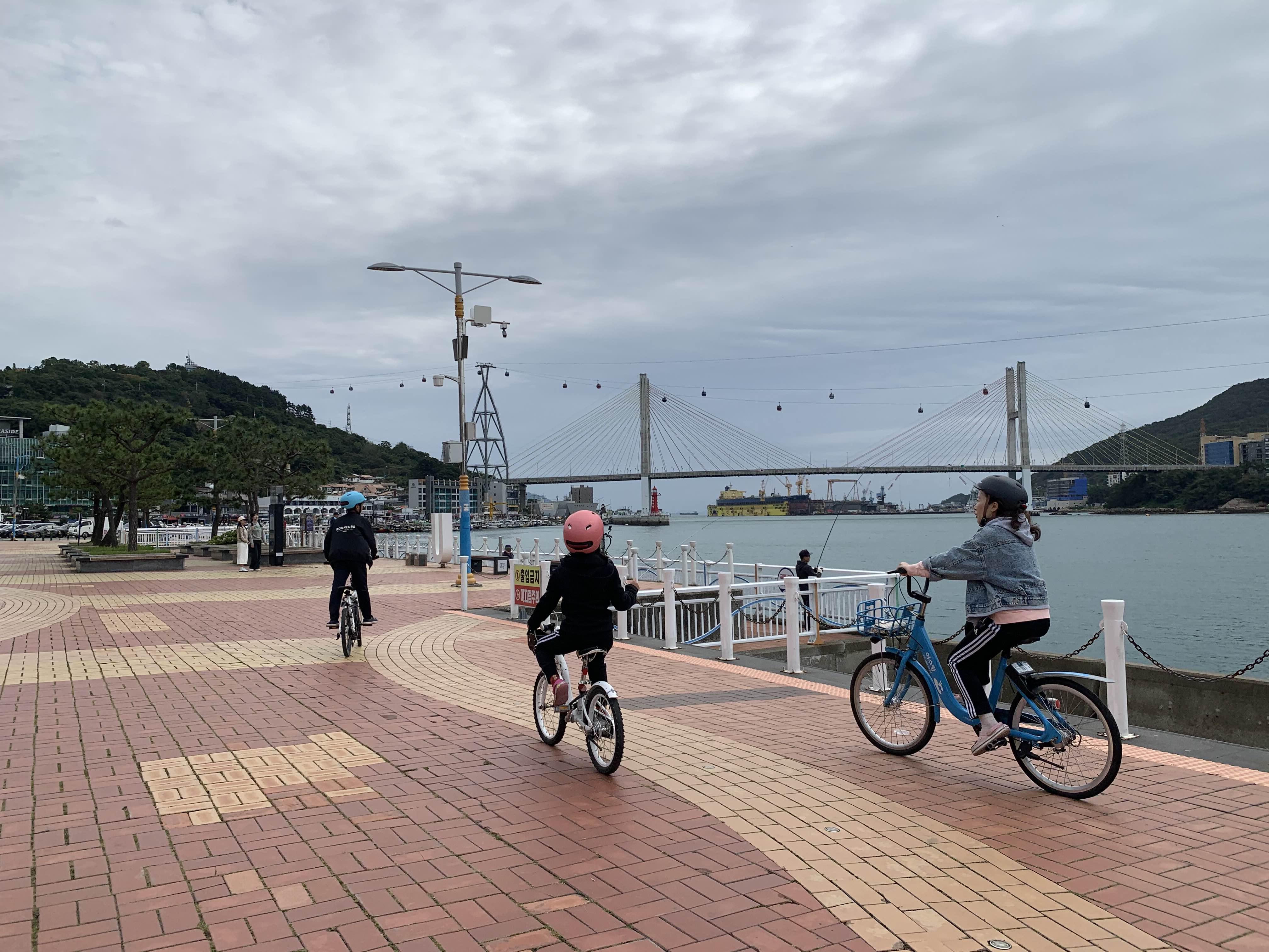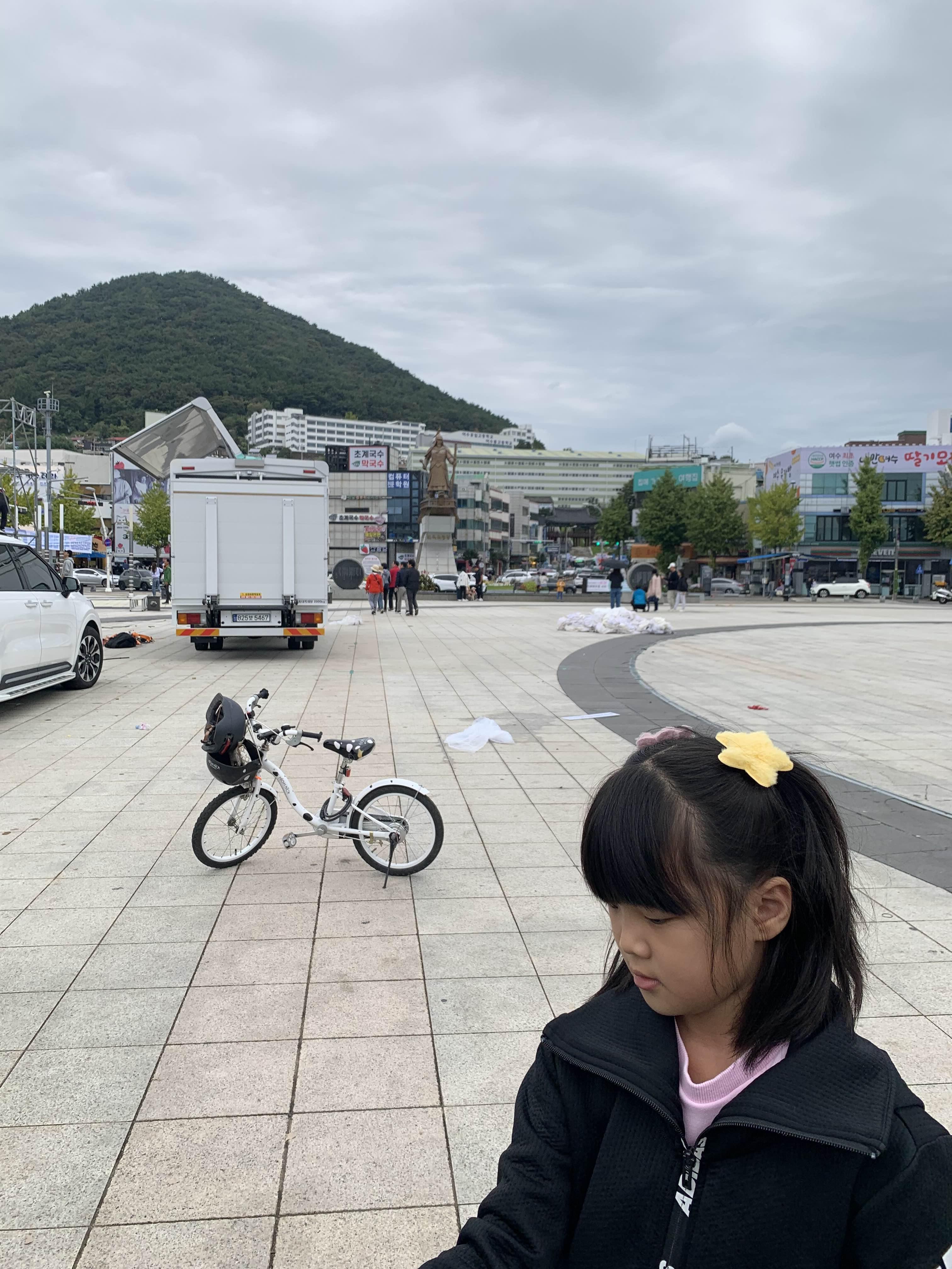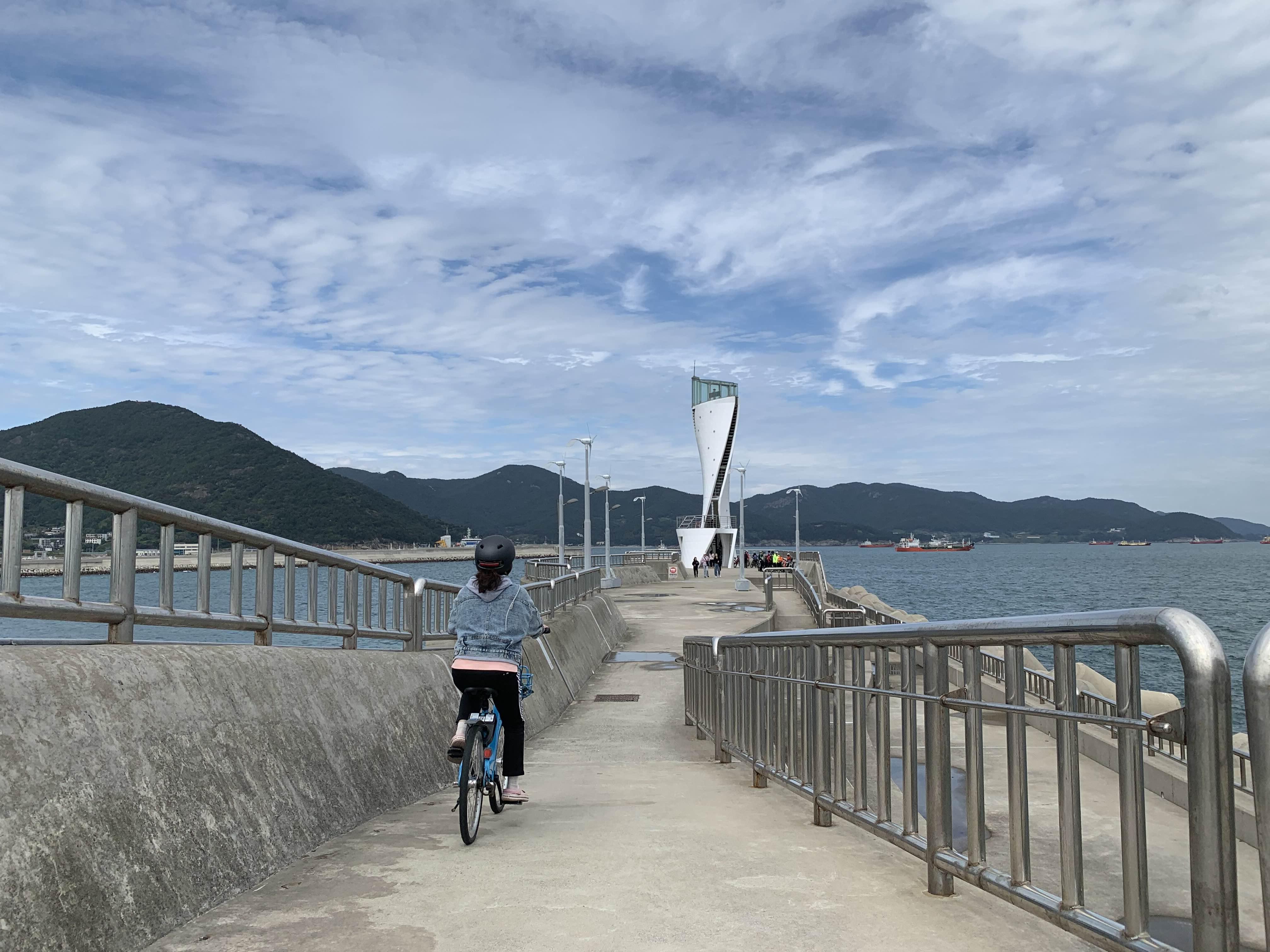 여수 공영자전거는 지정된 장소에서 대여/반출이 가능합니다. 게스트하우스 근처 이순신광장에서 성인 자전거를 대여하여 오동도로 출발하였습니다.