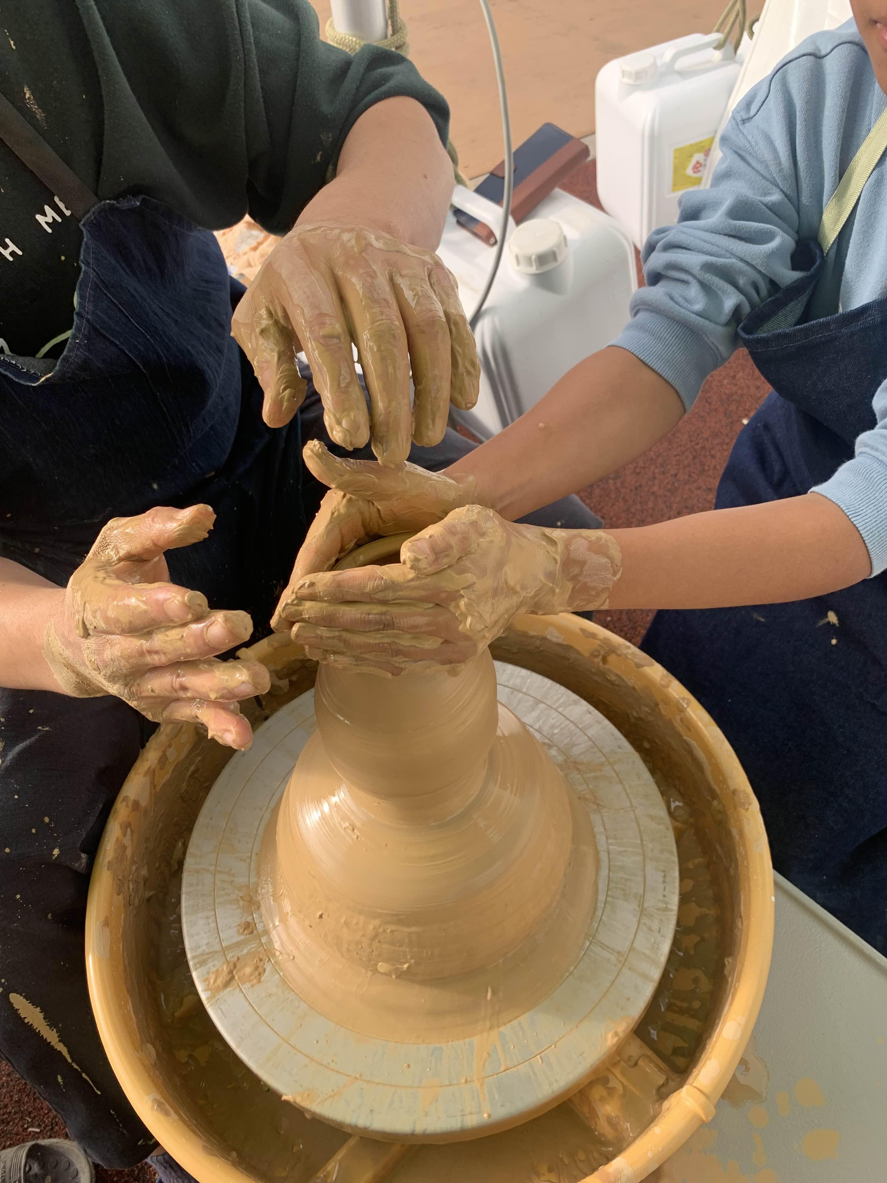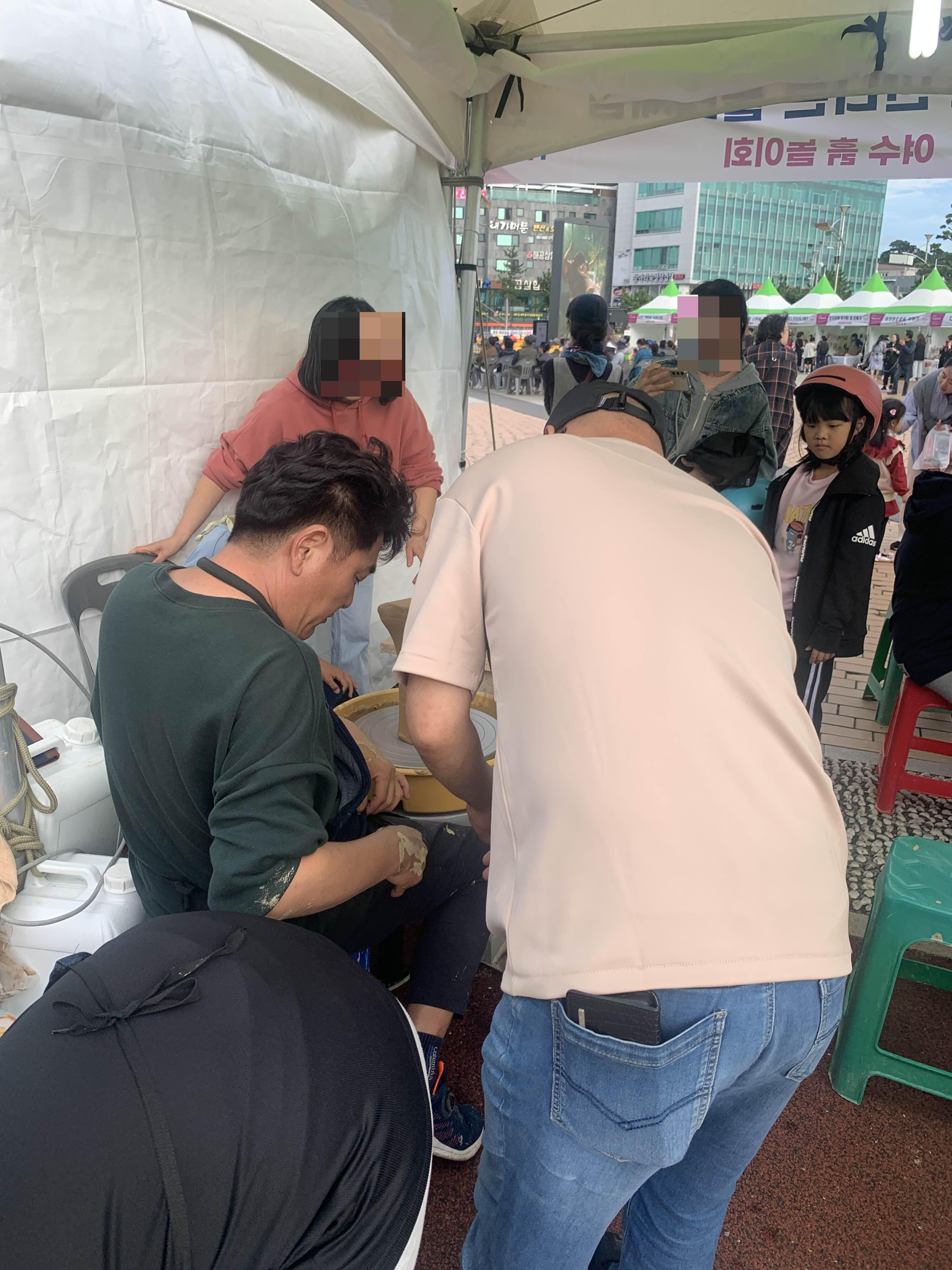 도예 선생님께서 이쁘게 만든 찰흙을 사포시 손을 대어서.... 만들기 사진 체험!ㅎㅎ