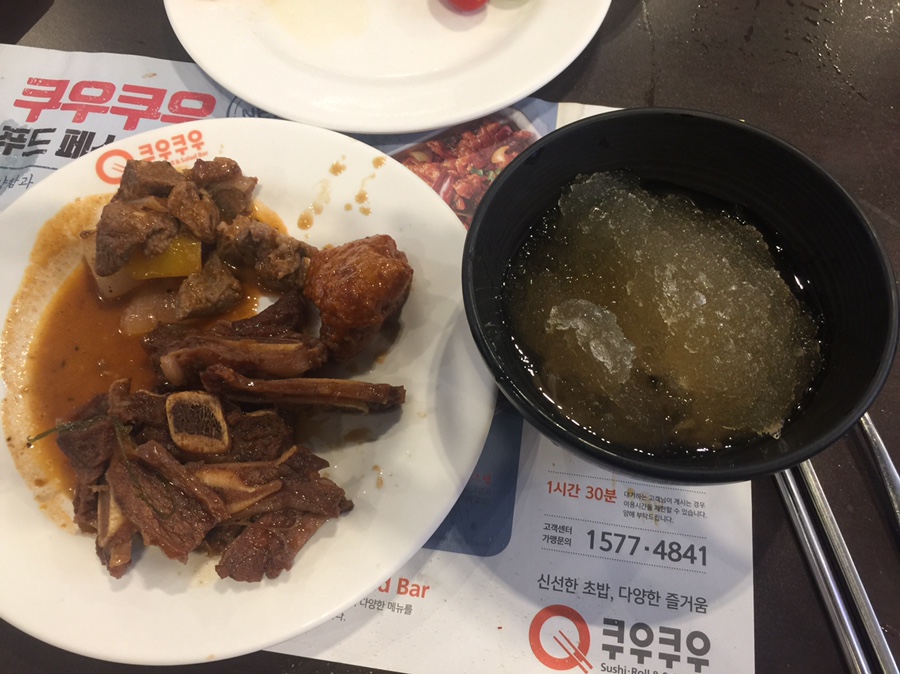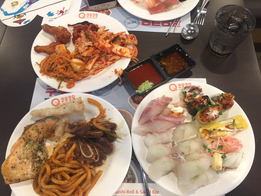 쿠우쿠우 첫 방문 시에는 초밥이 맛있어서 방문하게 되었는데... 초밥 맛은 좀 떨어지고, 샐러드바가 좀 맛있다는 느낌이 드는 뷔페입니다. 식당이 넓고 음식이 깔끔하게 마련되어 있어서... 가끔씩 가족 외식하기는 괜찮은 곳 같습니다.