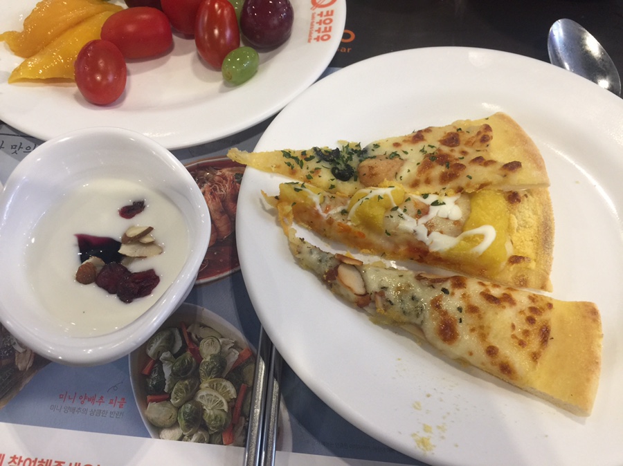 마지막으로 피자와 요커트 그리고 쿠우쿠우에서 가장 맛있게 먹은 LA갈비를 조금 더 가져왔습니다. 쿠우쿠우가 예전에는 초밥이나 롤이 맛있었는데.... 점점 샐러드가 맛있어지네요. 초밥이 맛없어져서 그런지... 아니면 샐러드바가 맛있어서 그런지는..... 암튼 초밥에는 잘 손이 안 가게 되네요. 이렇게 초밥보다 샐러드바를 먹을 바에는 샐러드바 전문 뷔페를 가야겠네요.
