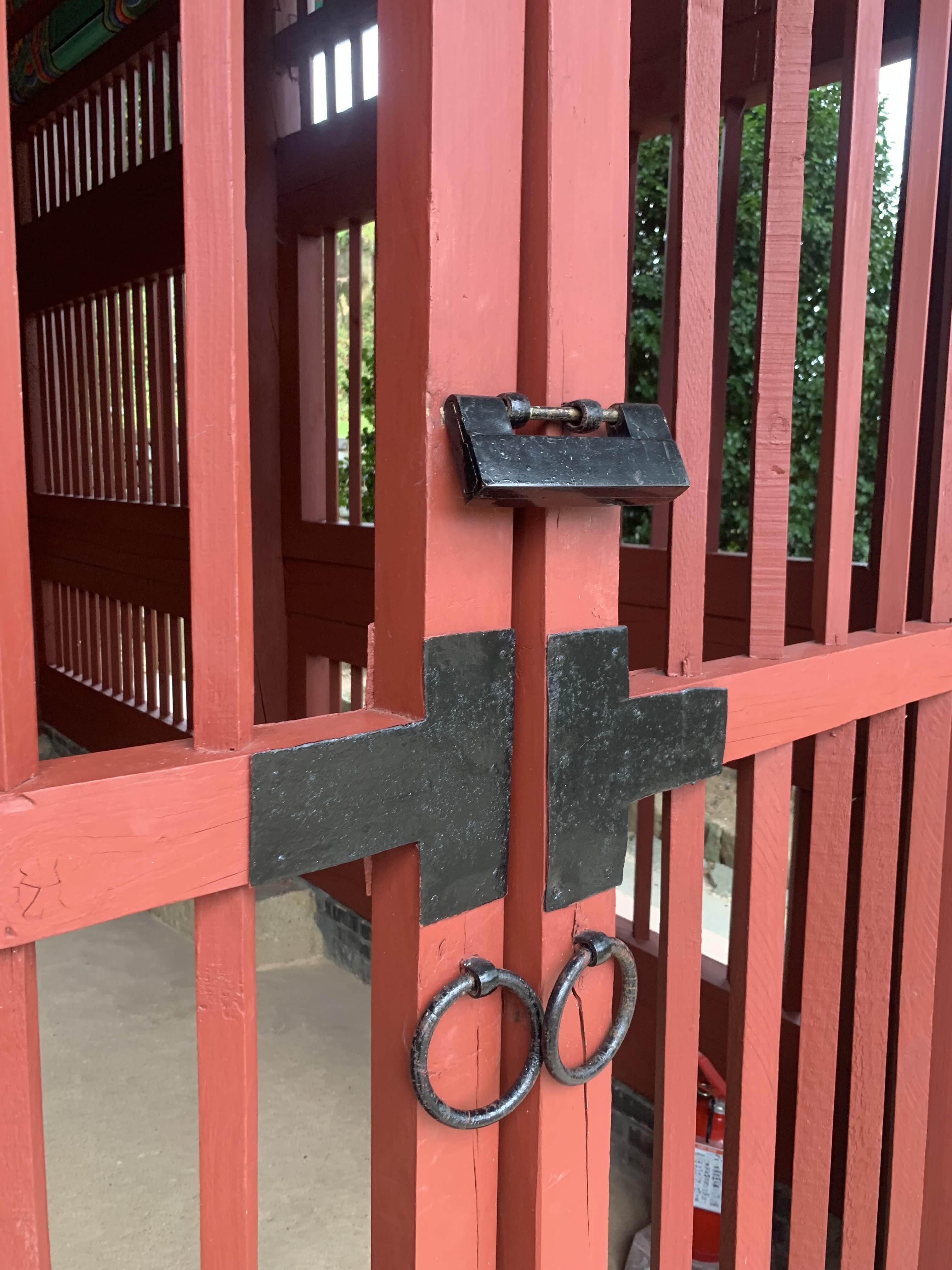 출입문의 자물쇠가 특이하다.