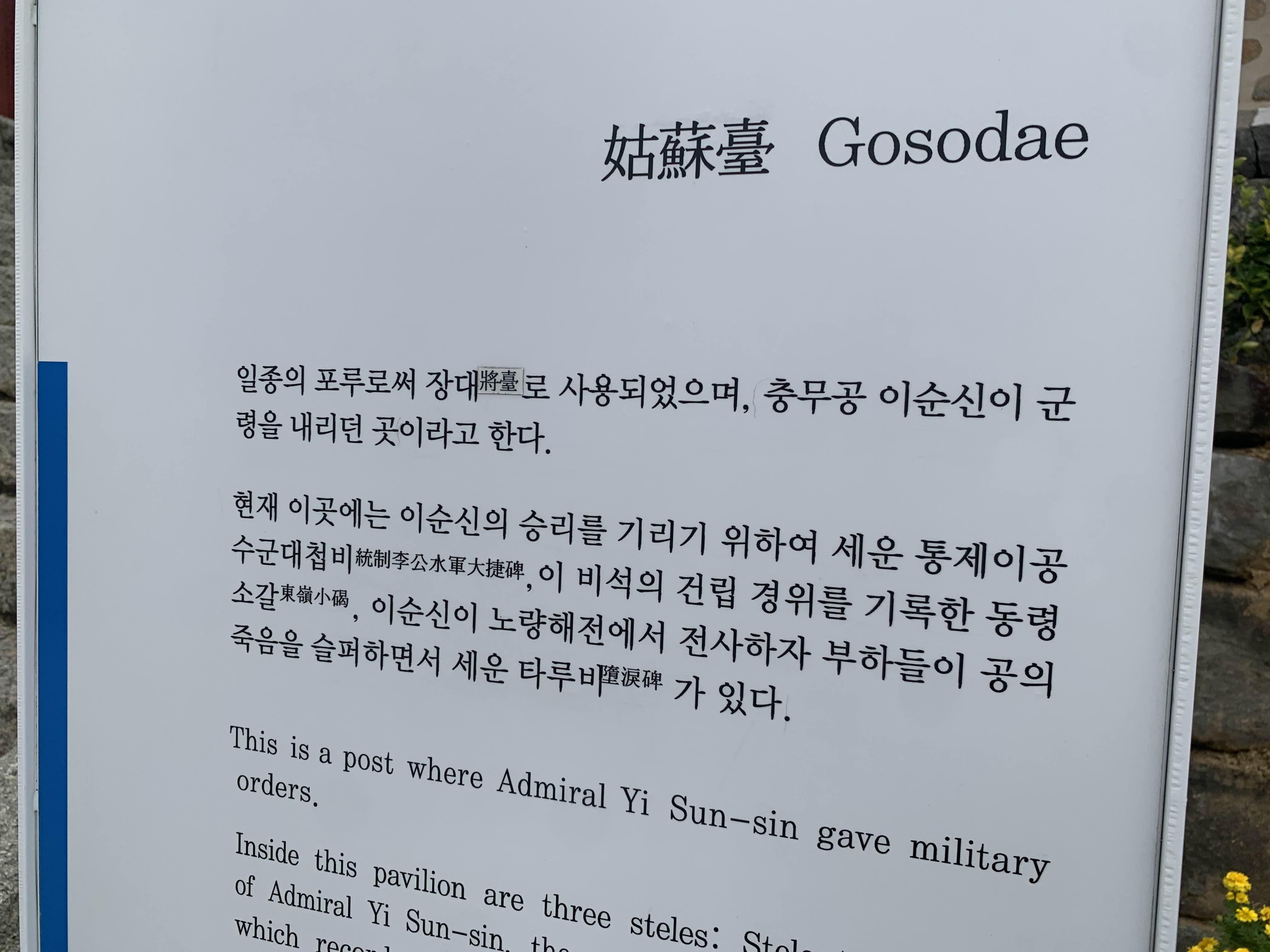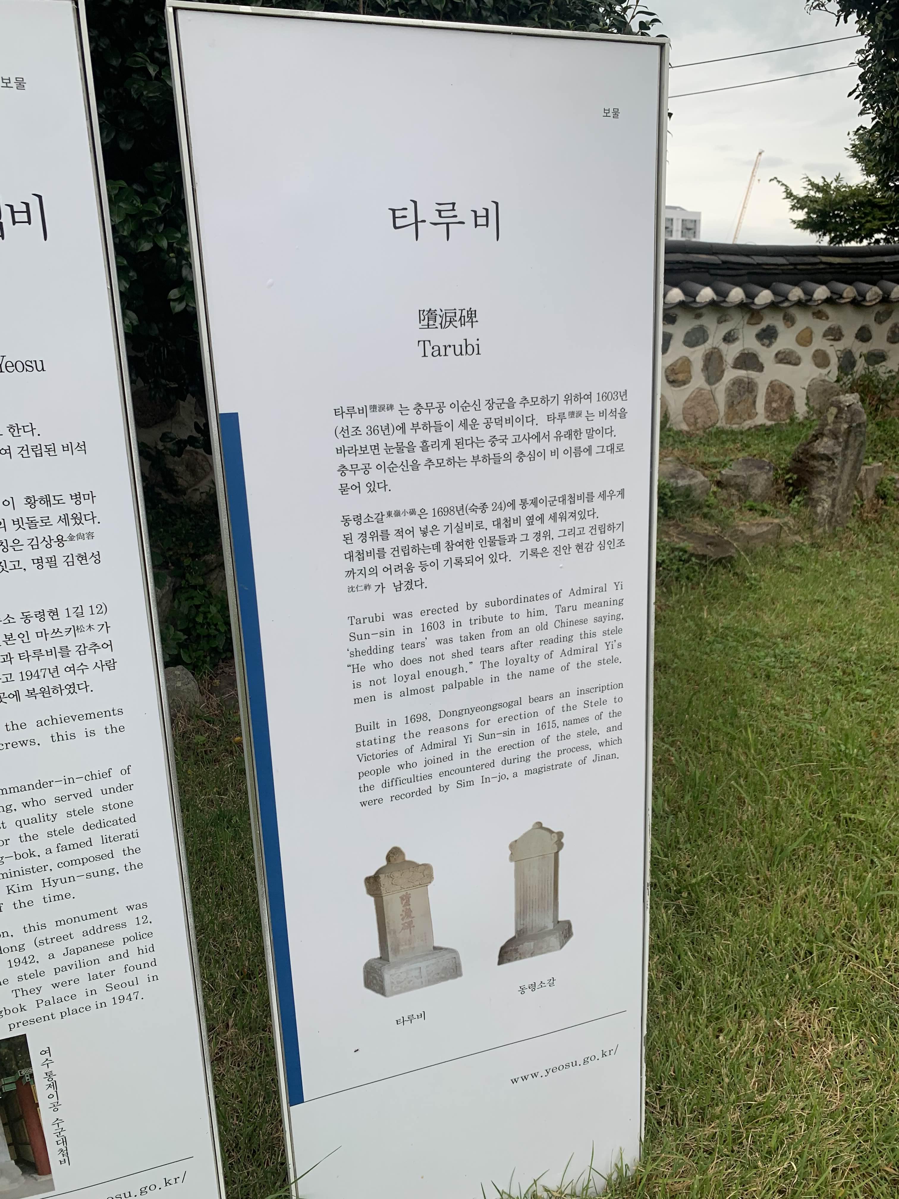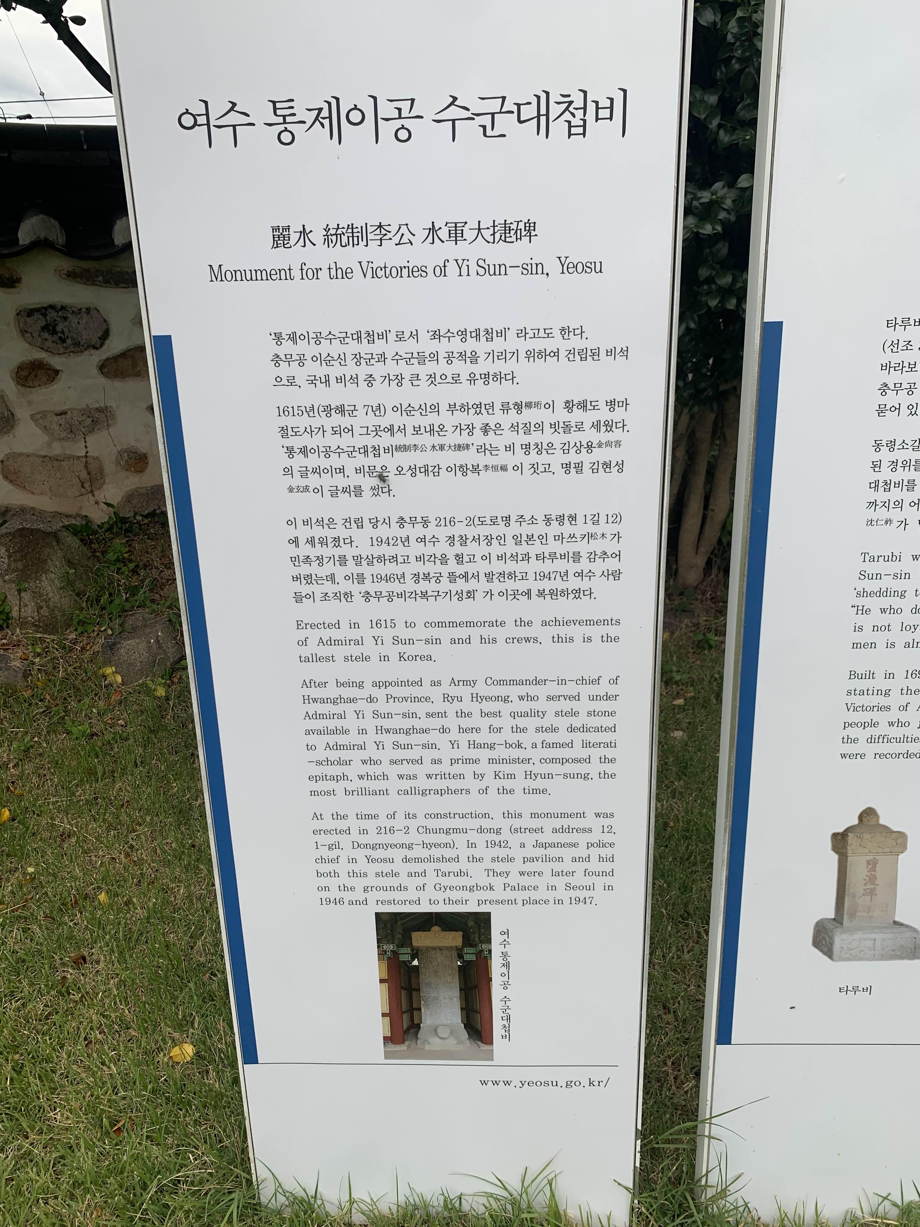 이순신 장군의 승리를 기원하는 비석에 대한 안내문!